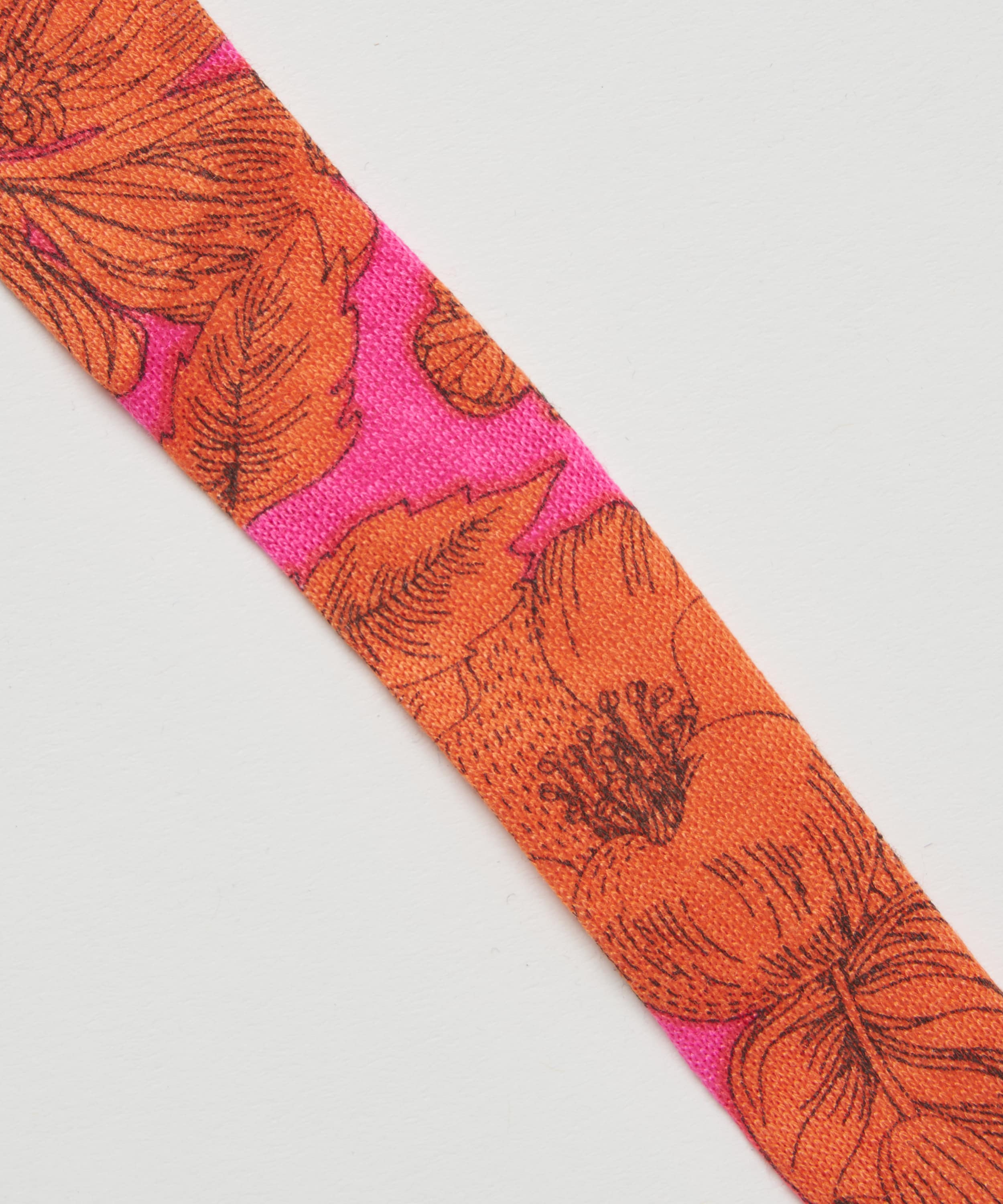 2007年、リバティ社デザインスタジオで紙にペンで描かれた精緻なボタニカルデザイン「ダンクレア」。この原画をもとに、2012年春夏のスイムコレクション向けとして縮小・再描画されたデザインです。様式化されたマーガレットやひまわり、繊細なカウパセリなどのモノクロームの花々が咲き誇る幻想的な庭園を描き、流れるように伸びる蔓や葉が全体を有機的につなぎ合わせています。コントラストの効いたカラーブロックの地色が構図を引き締め、花々の優雅な輪郭と緻密な線描の美しさを一層引き立てます。