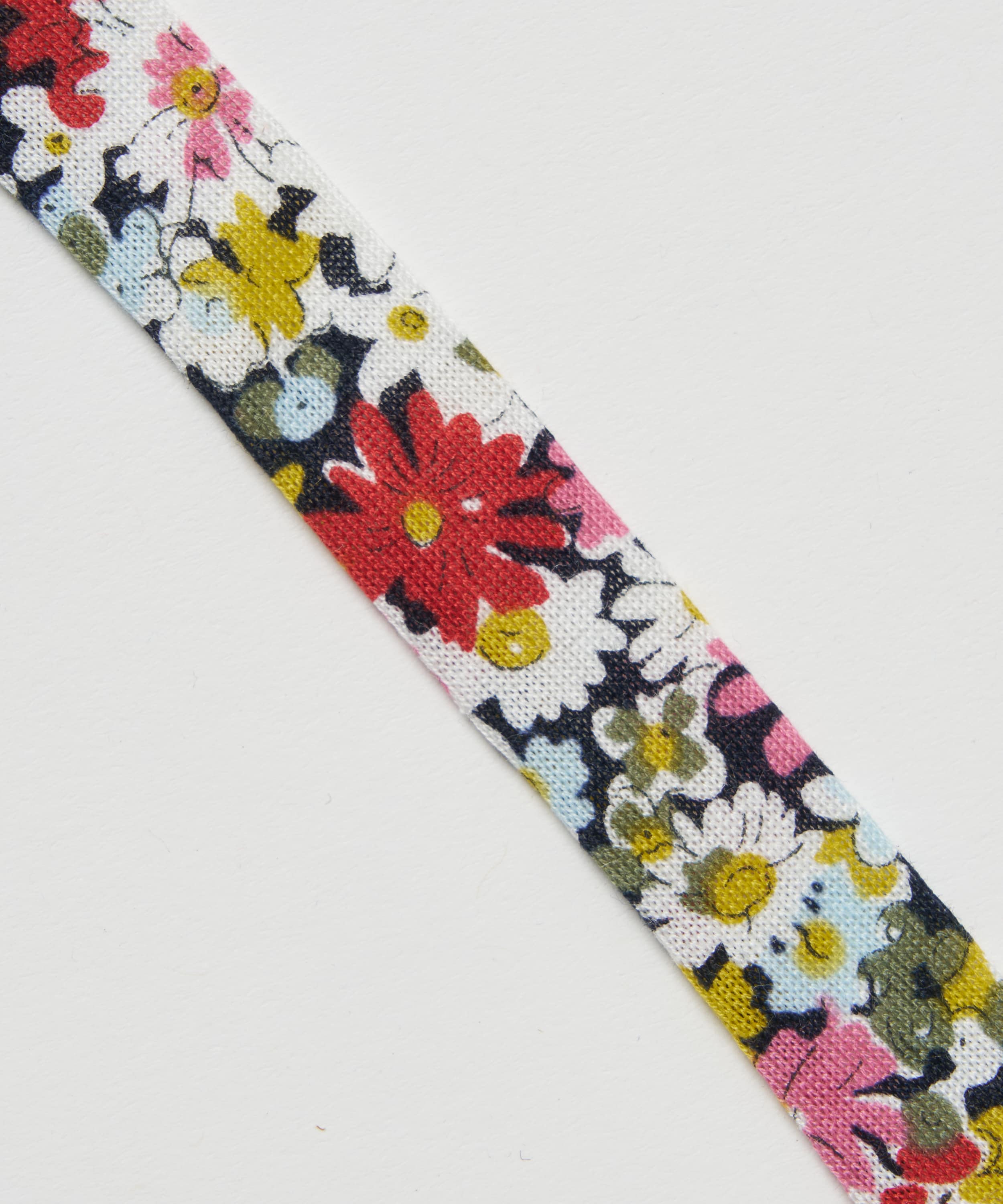 簡略化されたデイジーがびっしりと描かれた「リビー」は、1930年代に手描きされ、リバティのマートンプリント工場で印刷されていたデザインをベースにしています。とても細かい輪郭で描かれた全体にリピートされたパターンは、伝統的なリバティ・スタイルに敬意を表しています。