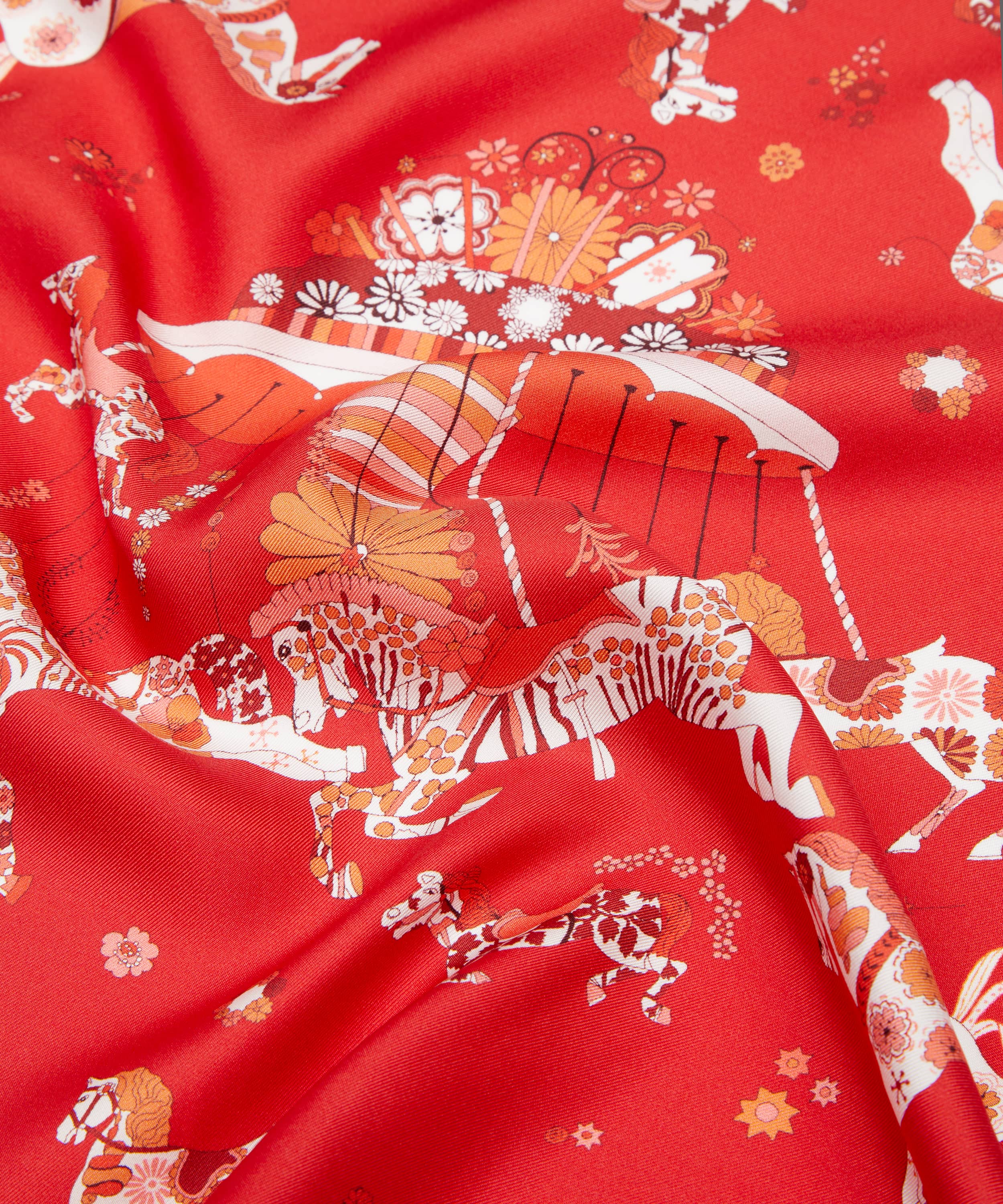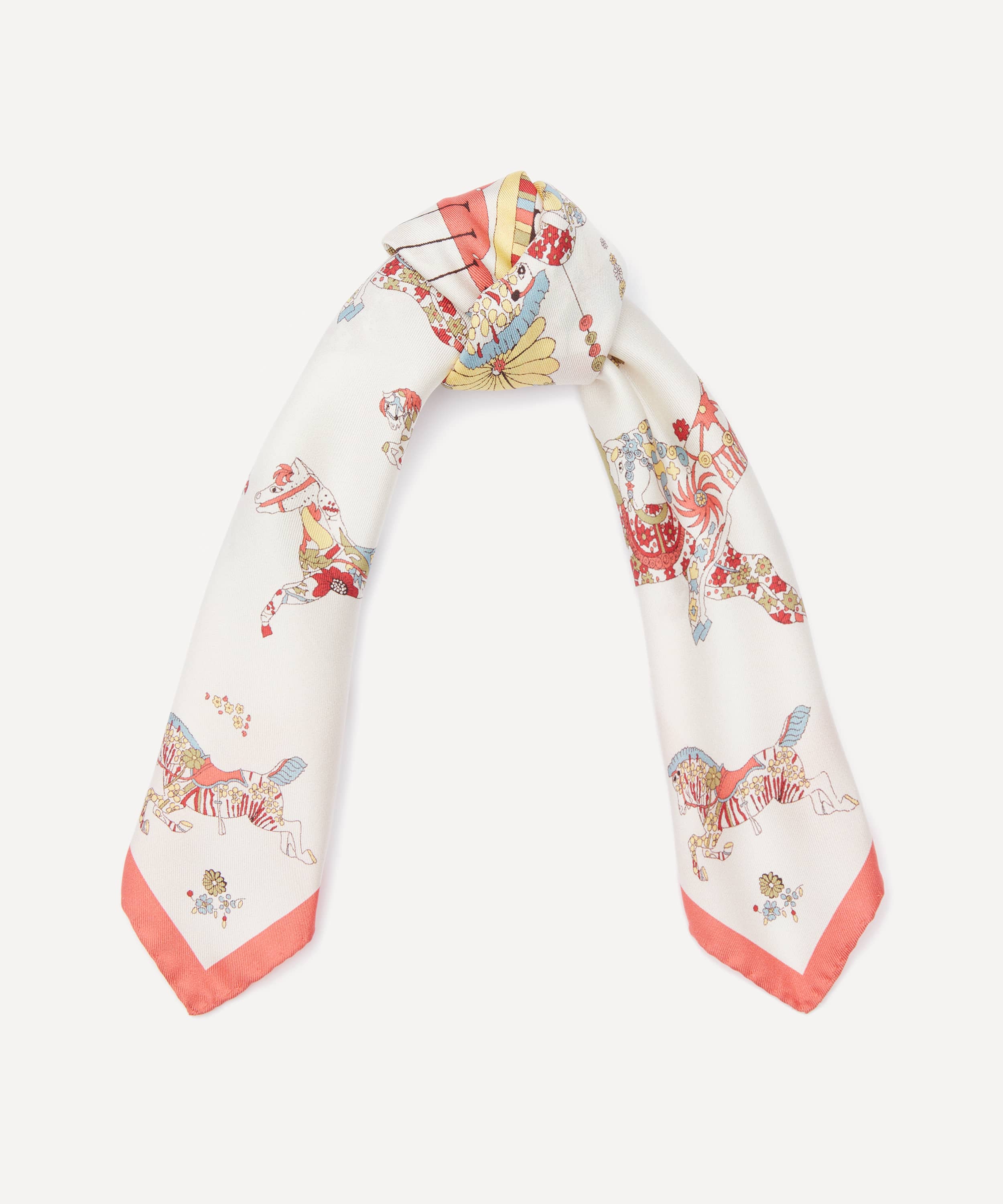 柔らかなシルクツイルで丁寧に織り上げられたこのスカーフには、アーカイブデザインをもとに日本チームが手がけたプリントを現代的に再解釈した「エモリー キャンキャン」柄を採用。中国の旧正月を祝う特別なデザインで、躍動感あふれる馬たちが美しいディテールで描かれ、その力強さと優美さを表現しています。鮮やかな色彩と生命力に満ちたこのタイムレスなアクセサリーは、スタイリングに軽やかな華を添えます。首元にコンパクトに巻いたり、バッグのハンドルに結んだり、ヘアアクセサリーとして取り入れたりと、自在にアレンジをお楽しみいただけます。