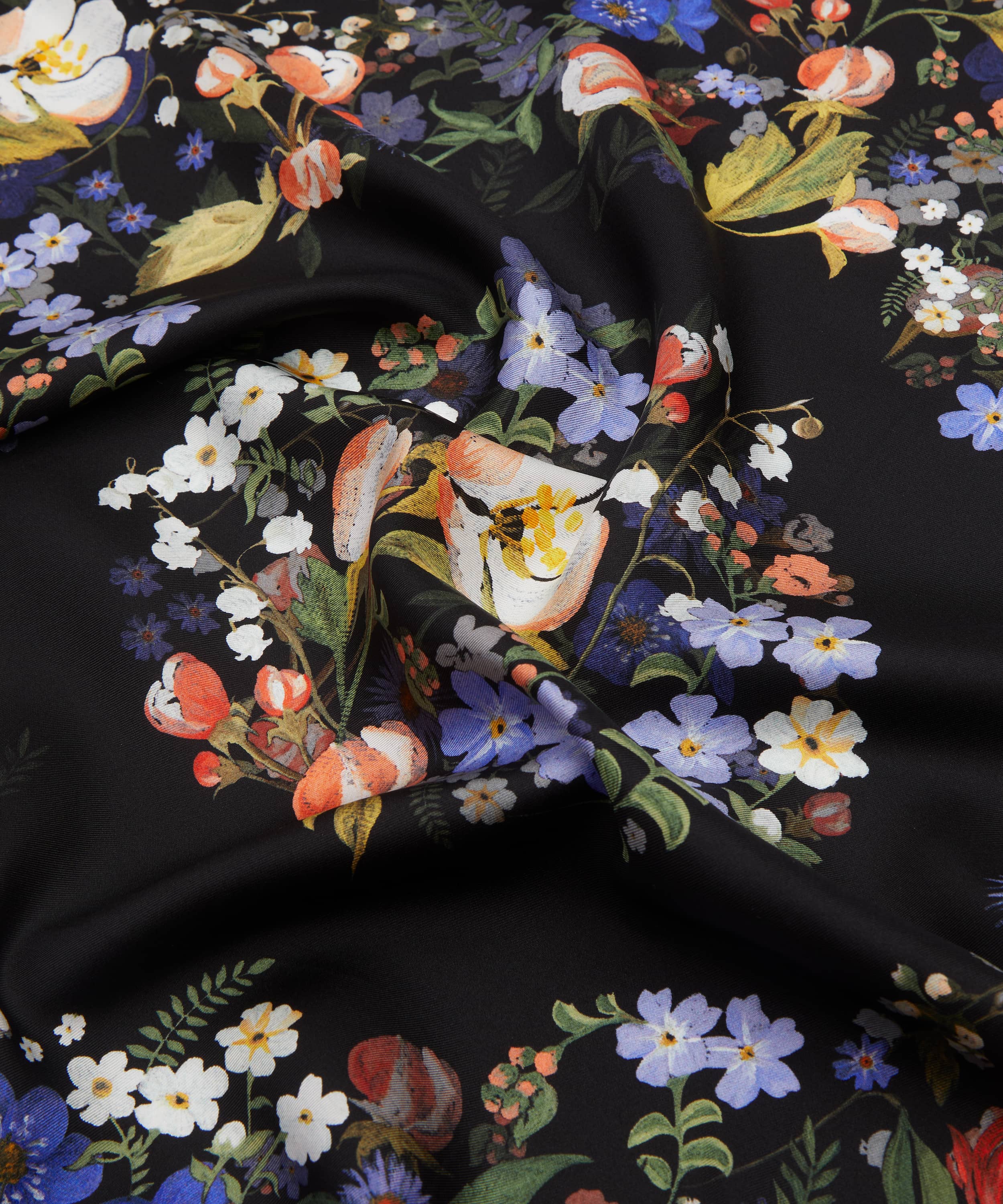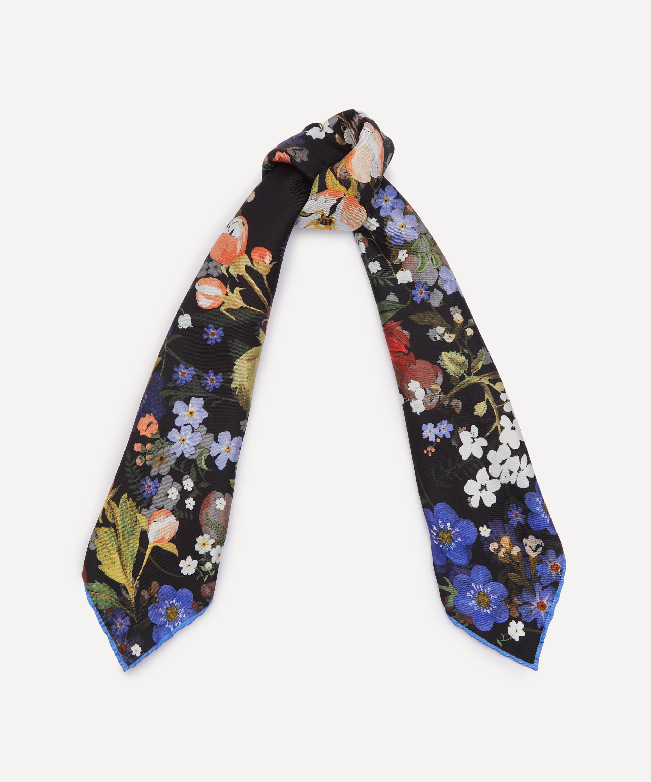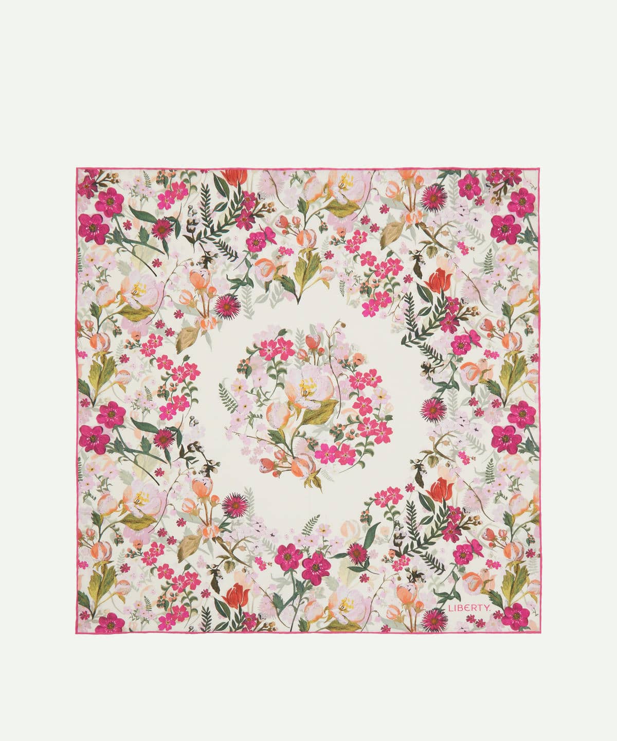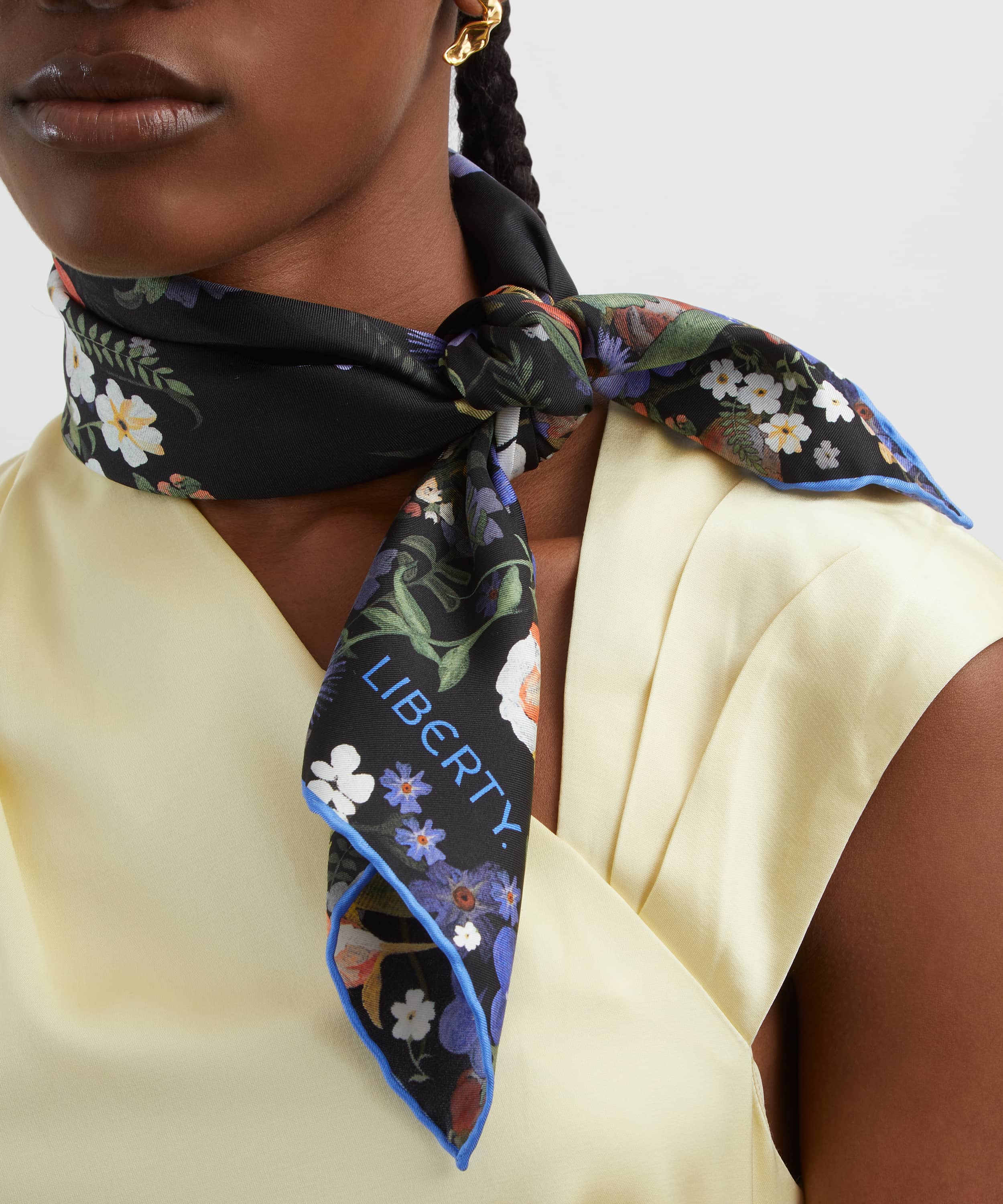 今シーズンの装いを華やかに彩る、「ハイジ シルクスカーフ」。リバティが誇る芸術性とクラフツマンシップ、そして受け継がれるデザインの伝統を讃える一枚です。