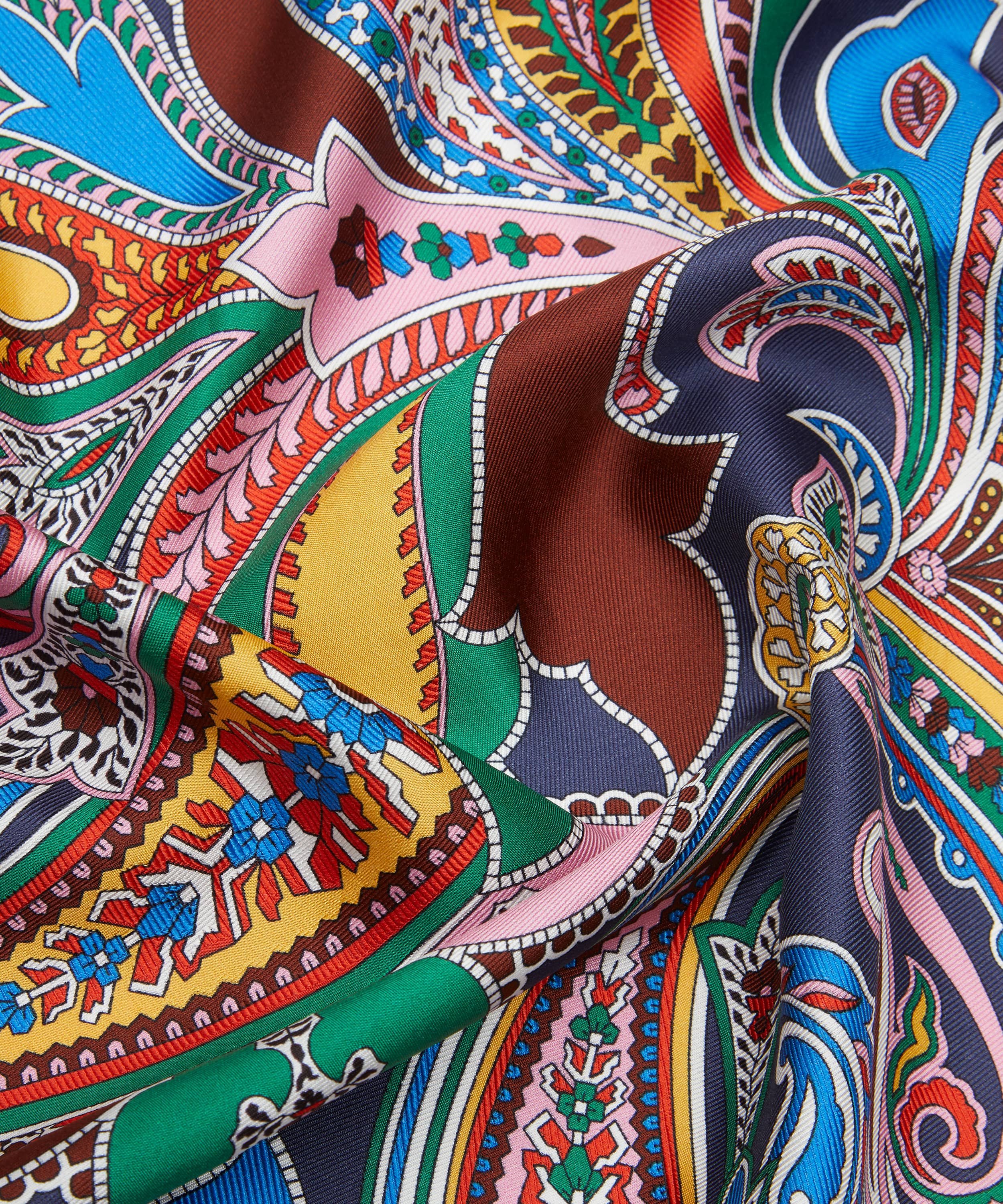 ジャカードスカーフ / シルクツイル / ペイズリー・ファンファーレ柄 / イタリア製(イタリアで織り・プリント)/ リバティスタジオでデザイン / ドライクリーニングのみ