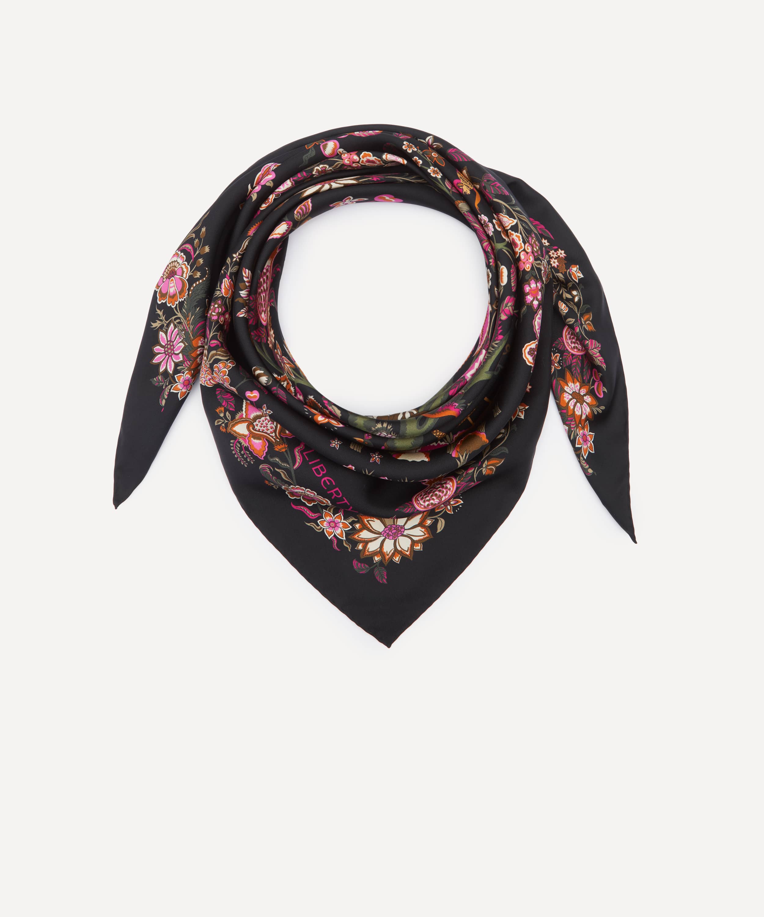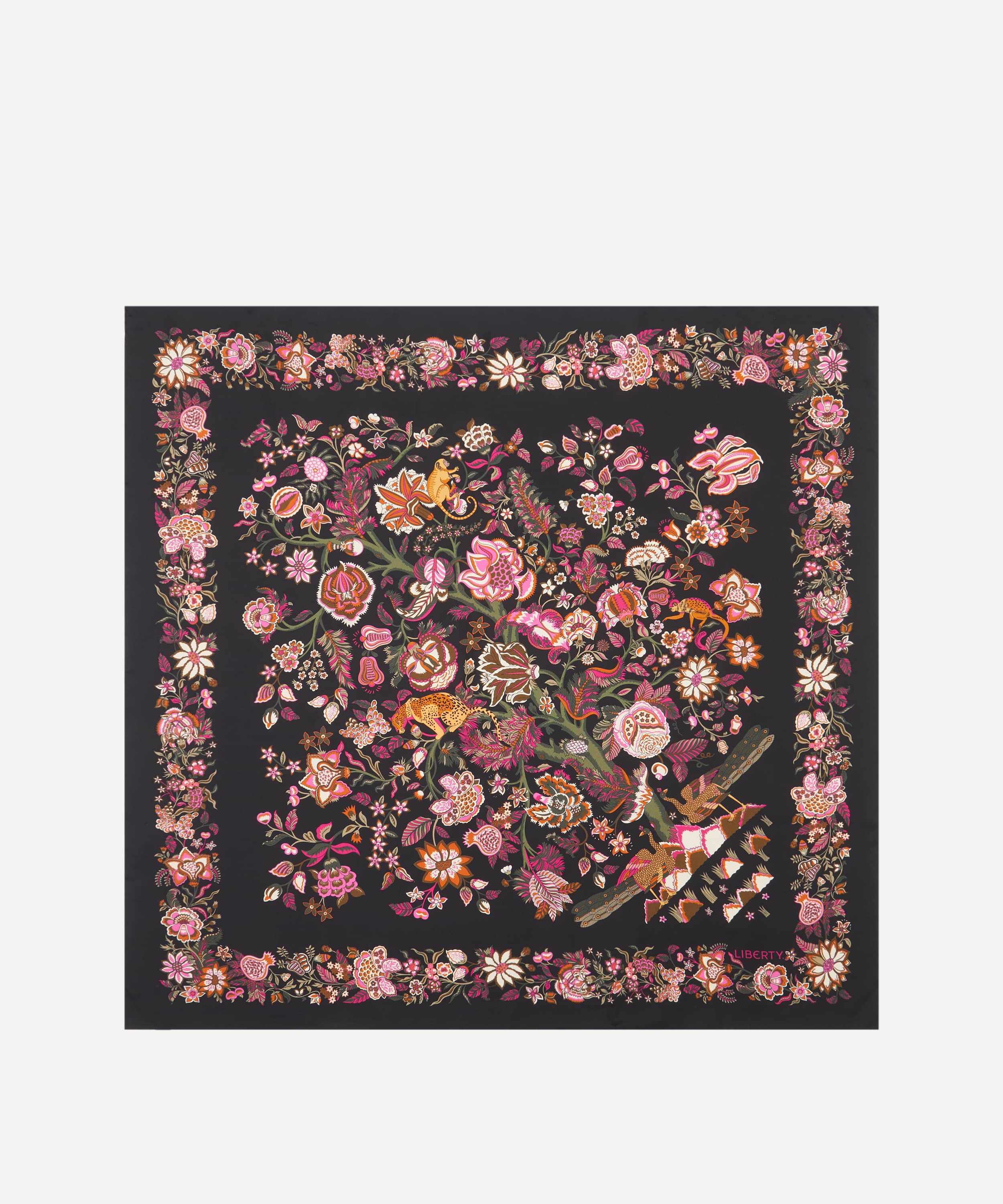 この季節の装いを鮮やかに彩る「トロピカル ツリー オブ ライフ シルクスカーフ」は、リバティが誇るアート性、職人技、そして永続するデザインレガシーを讃える一枚です。