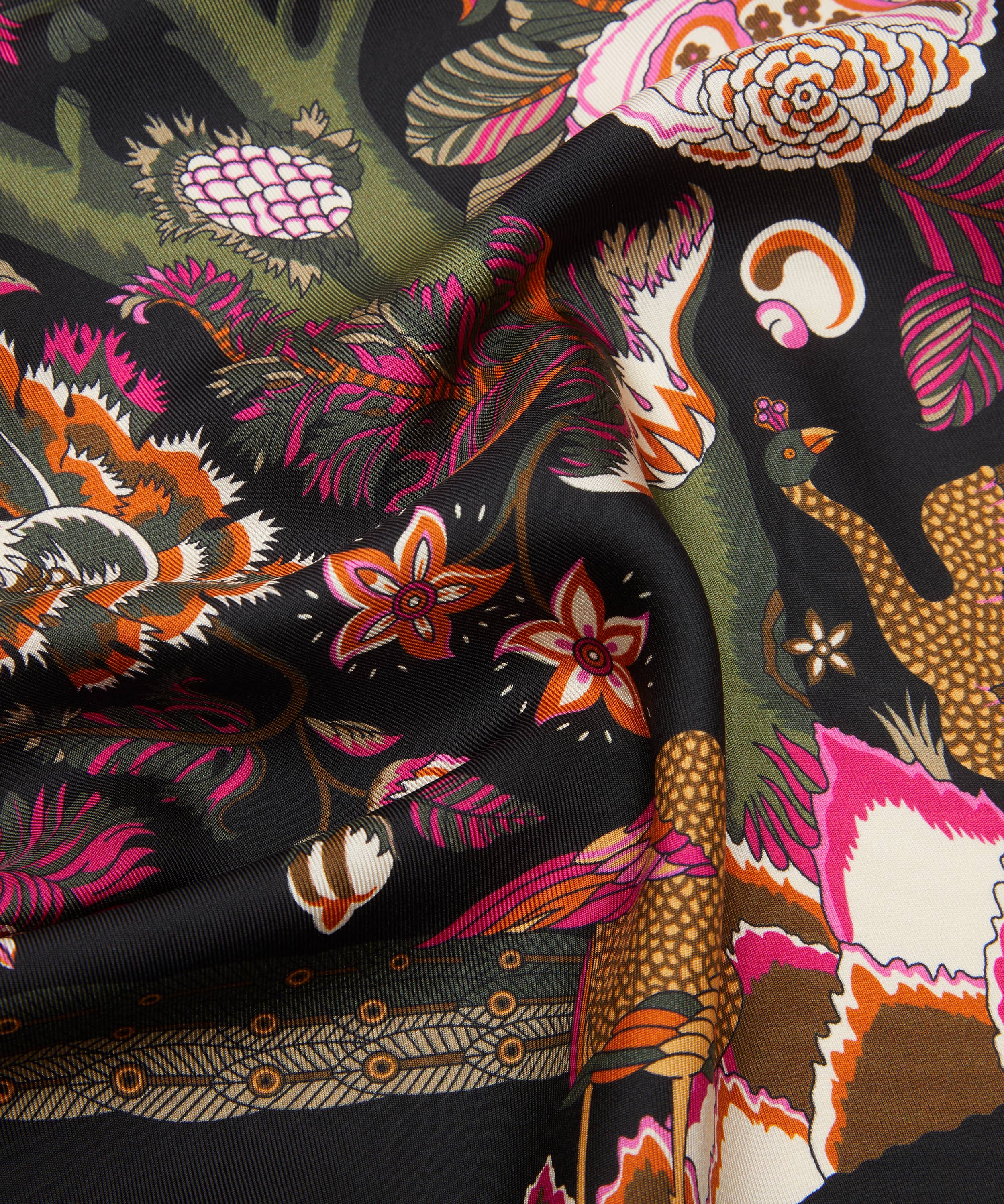 スカーフ / シルクツイル / トロピカル・ツリーオブライフ 柄 / イタリア製(イタリアで織り・プリント)/ リバティスタジオでデザイン / ドライクリーニングのみ