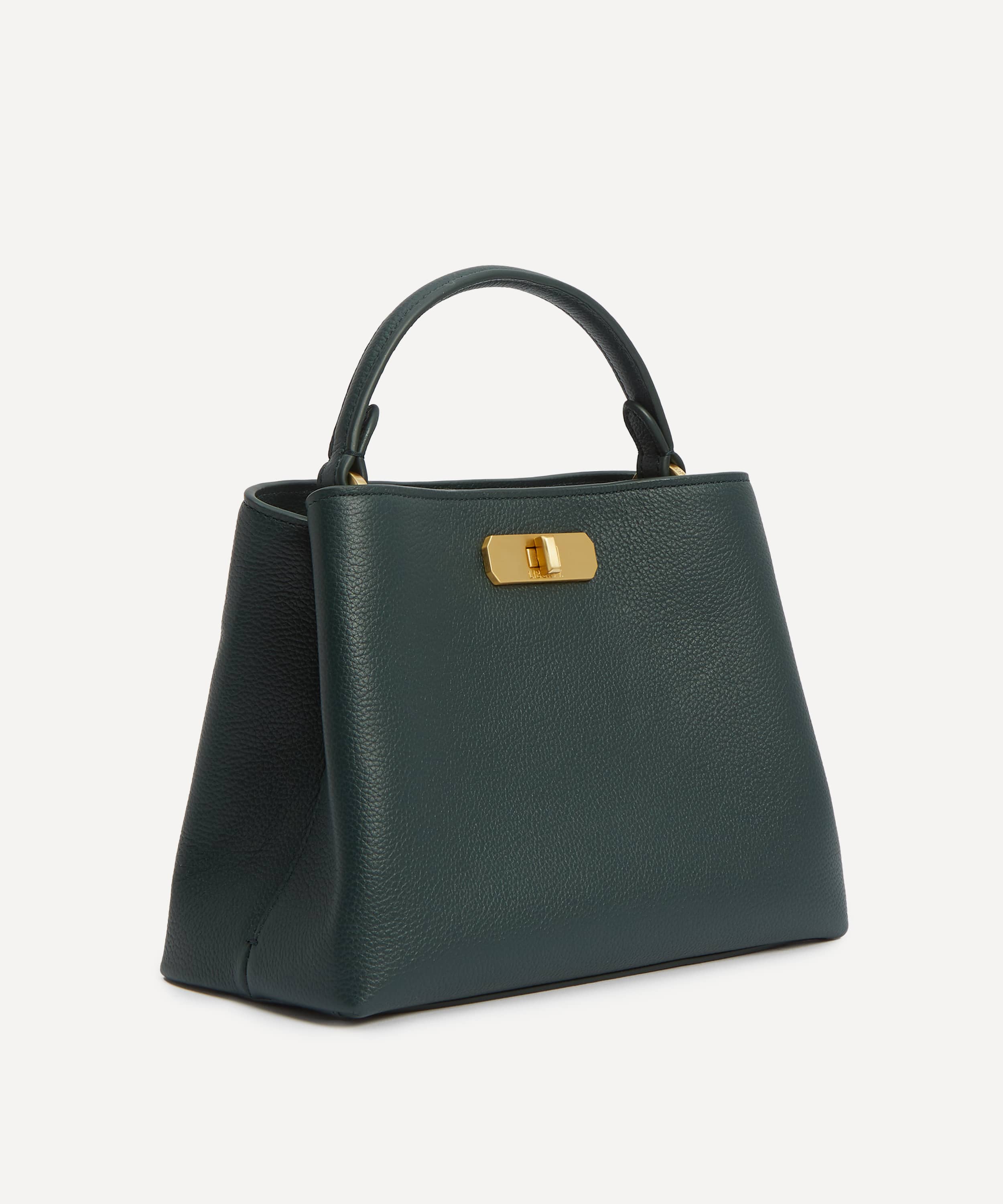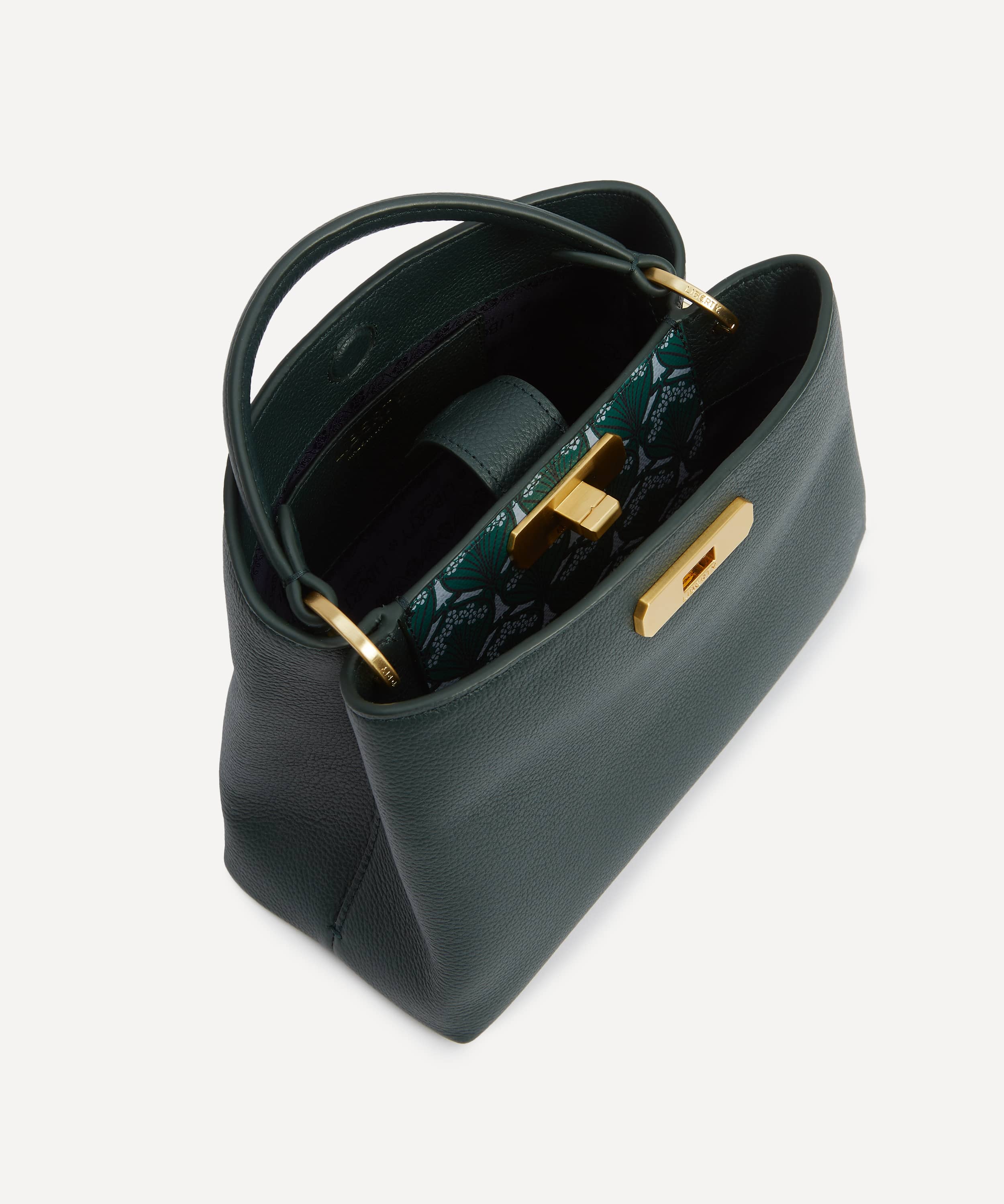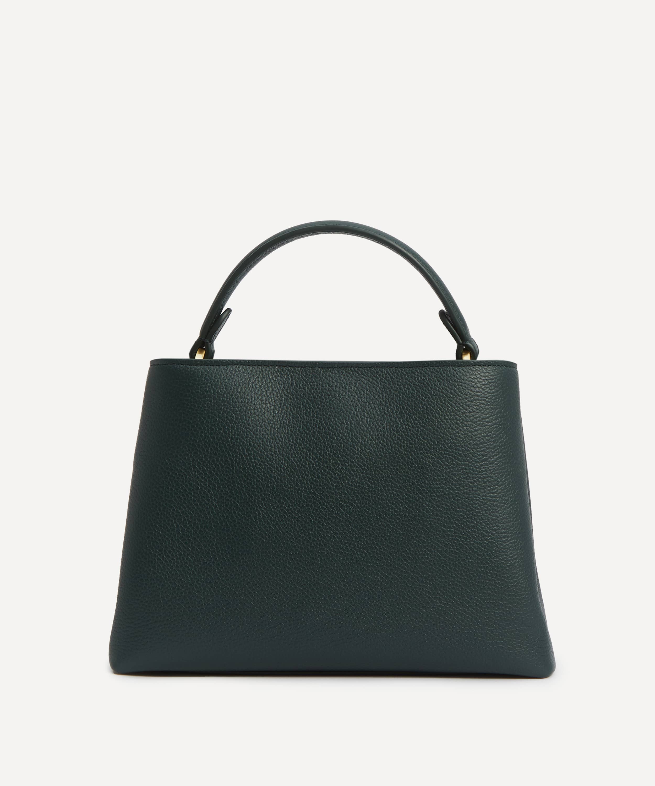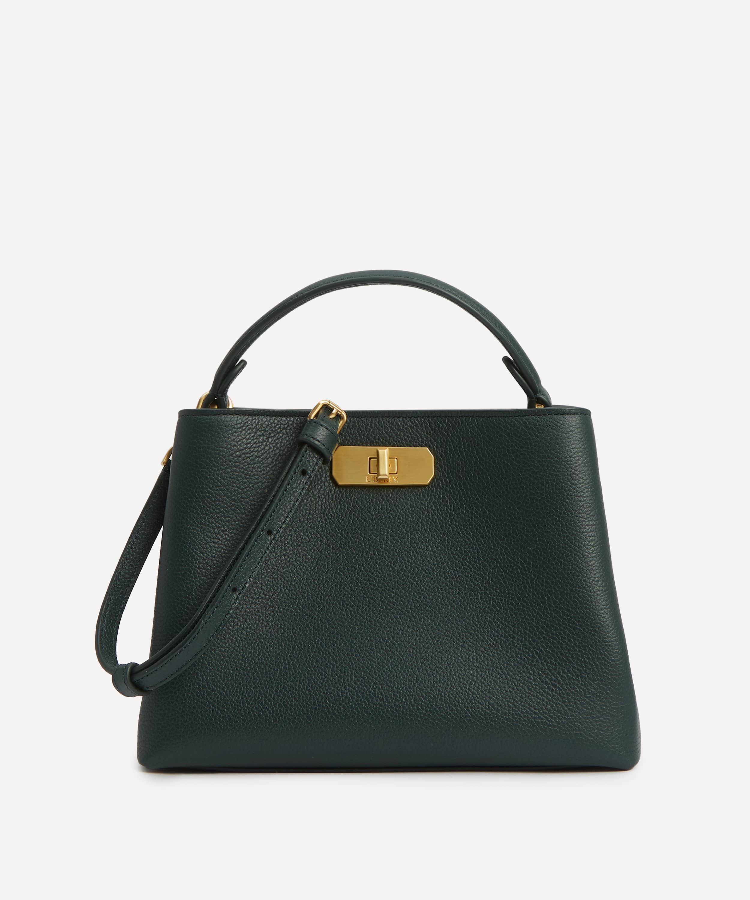 レザー製 / グリーンカラー / 内側にアイフィスキャンバス使用 / メインコンパートメント×2 / 中央マグネットクロージャー / フロントコンパートメントにターンロック付き/ 軽くパッドを施したトップハンドル / 長さ調節可能なショルダーストラップ / 内側カードスロット / リバティロゴ入りブラッシュドゴールド金具 / お手入れ方法:柔らかく乾いた布で優しく拭いてください。
