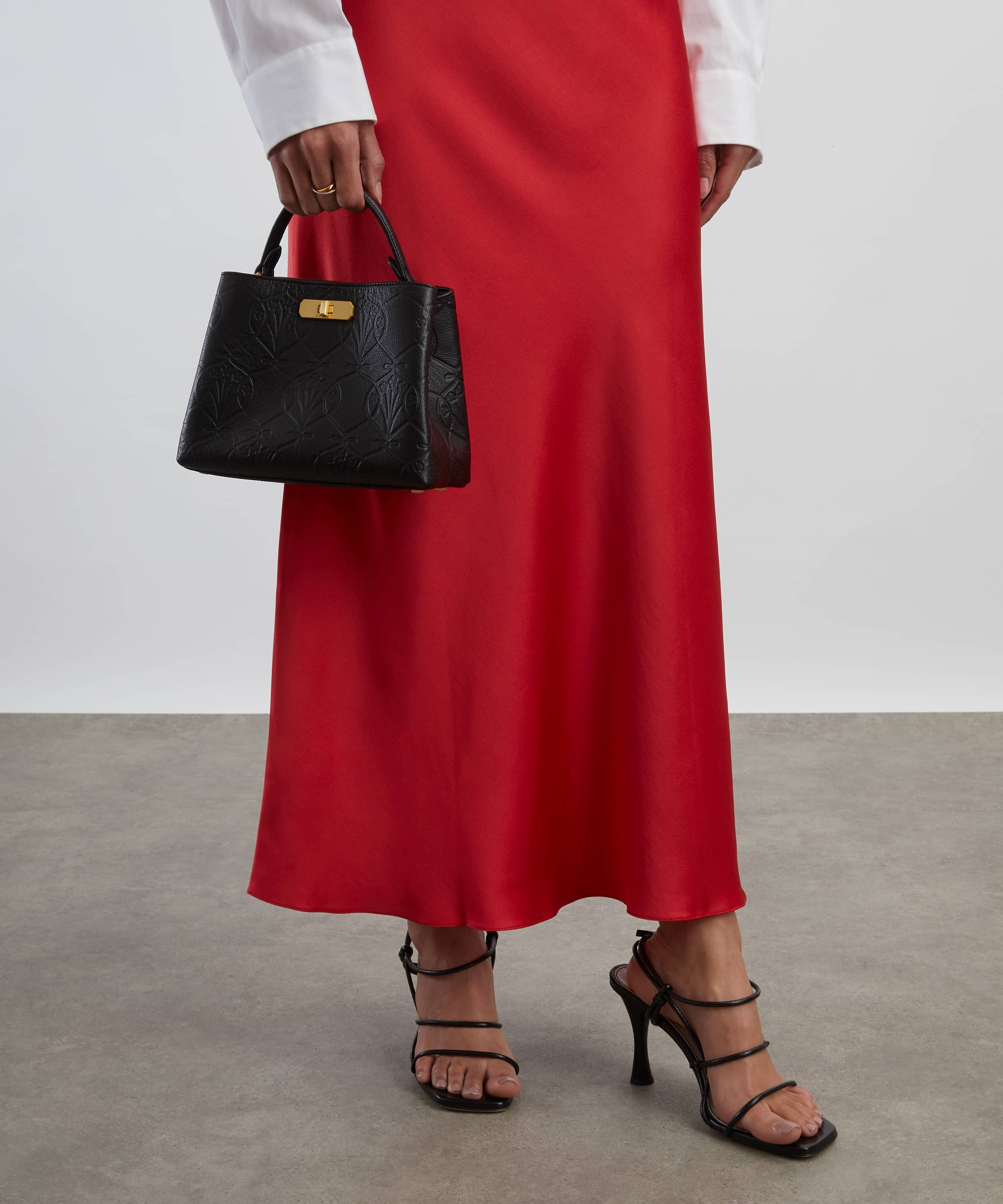 洗練された上品さを体現するリバティの「アイフィス エンボスド レザー ミニ トップハンドルバッグ」。ブランドの象徴であるアイフィスプリントをエンボス加工で施した、しなやかで耐久性に優れたレザーを使用しています。端正でクリーンな印象のボックスシルエットは、オフの日のスタイルにも、きちんと感のあるワークウェアにもマッチ。マグネットクロージャーとターンロック付きの2室構造で、リバティ・セントラル・アトリウムから着想を得たデザインが際立ちます。ショルダーストラップは長さ調整が可能で、ハンド、ショルダー、クロスボディの3通りにアレンジ可能。シーズンを越えて愛用できる、タイムレスでラグジュアリーな逸品です。