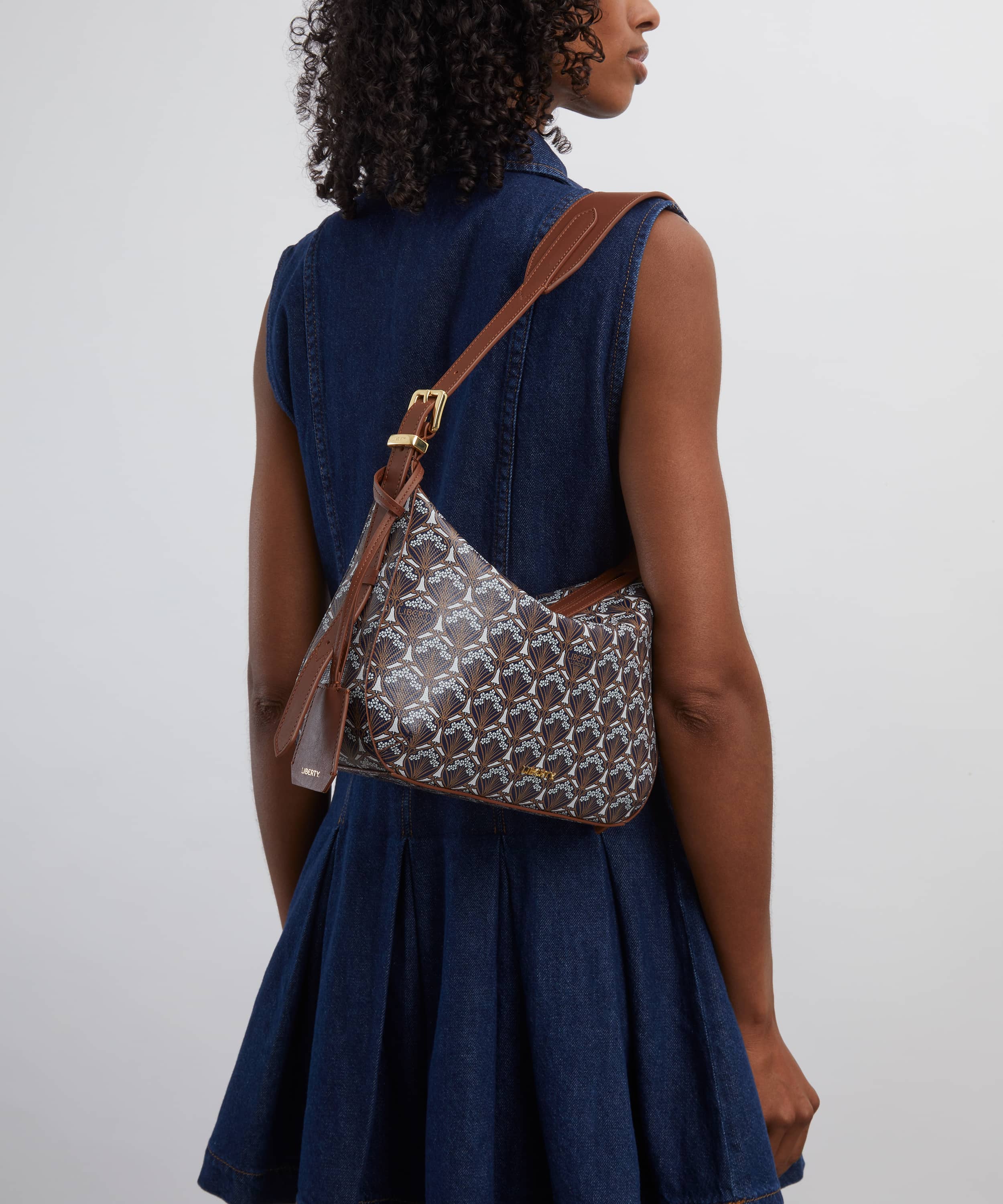 イタリアでスクリーンプリントされたキャンバス地を使用し、やわらかく構築的なシルエットに仕上げています。ダブルジップクロージャー付きで、貴重品を収納できる内側スリップポケットなど、実用性にも優れています。リバティロゴ入りの金具や、取り外し可能なラゲッジタグなど、細部にまでこだわりが感じられます。軽くパッドを入れたアジャスタブルストラップは、肩掛けしても快適な使い心地です。デイタイムからイブニングシーンまで幅広く活躍し、シーズンを超えて愛用できるラグジュアリーバッグです。ハンドルを手に持ったり、腕にかけたり、ショルダーとしてもお使いいただけます。