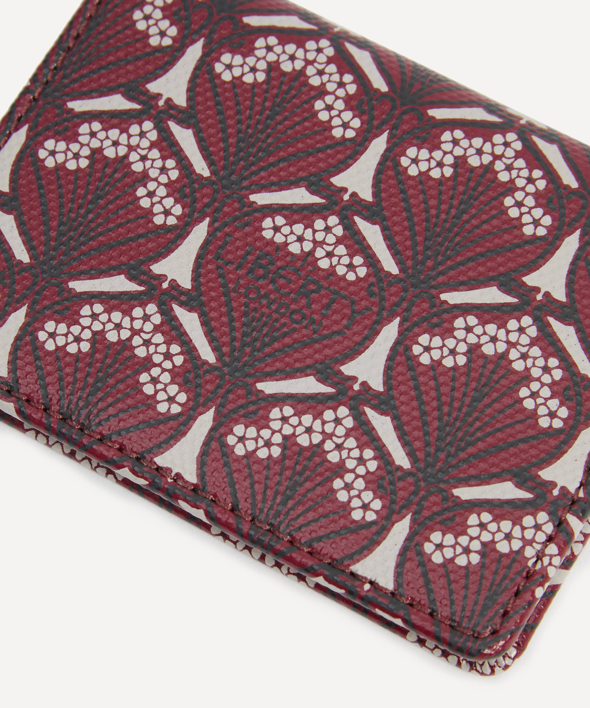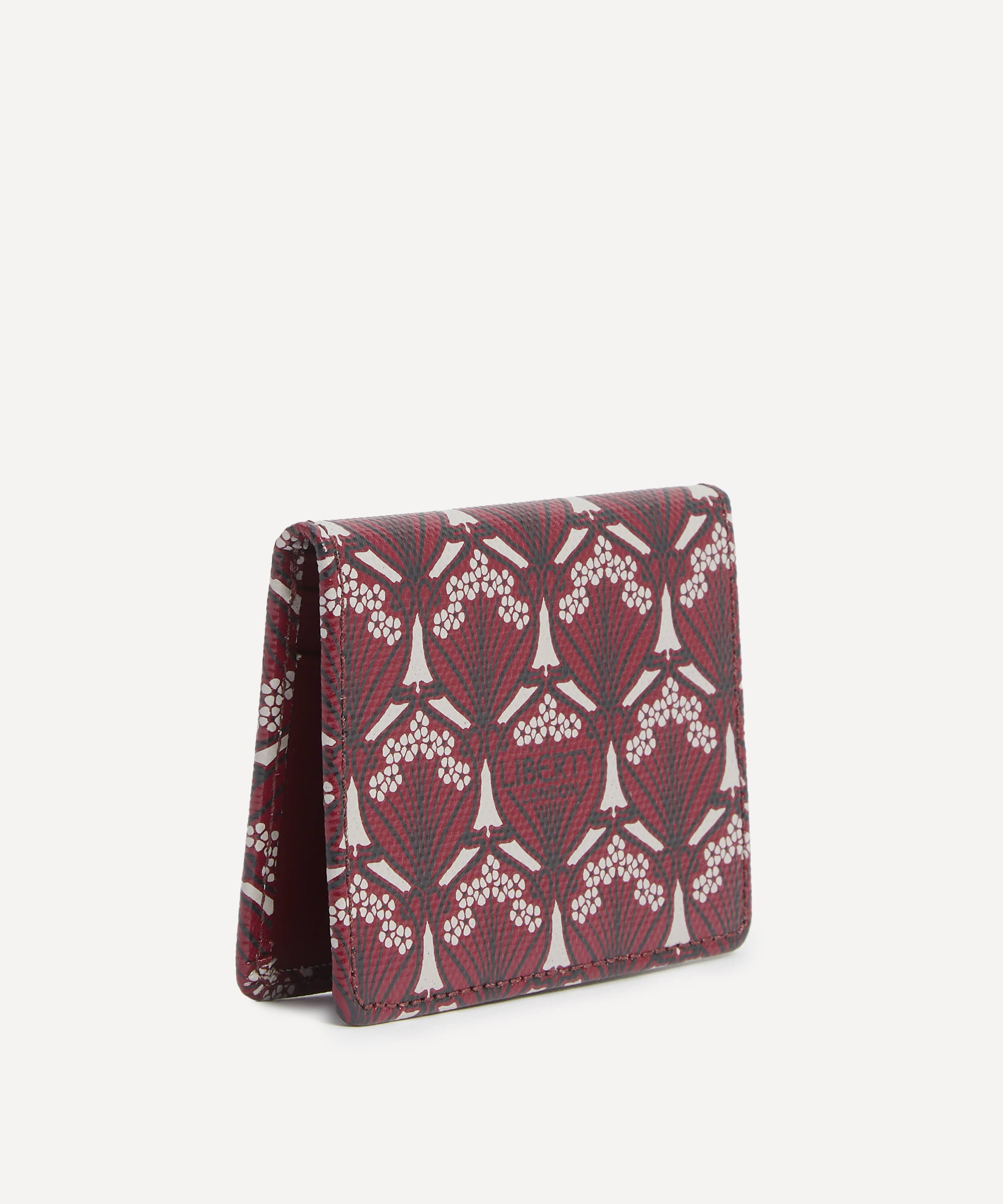 カードホルダー / コットンリネンキャンバス / アイフィスプリント(バーガンディ) / フラップ式開閉 / カードスロット×3 / クリアIDウィンドウ / イタリアにてスクリーンプリント / リバティ・ロンドンスタジオ デザイン / お手入れ方法:やわらかい乾いた布で軽く拭いてください