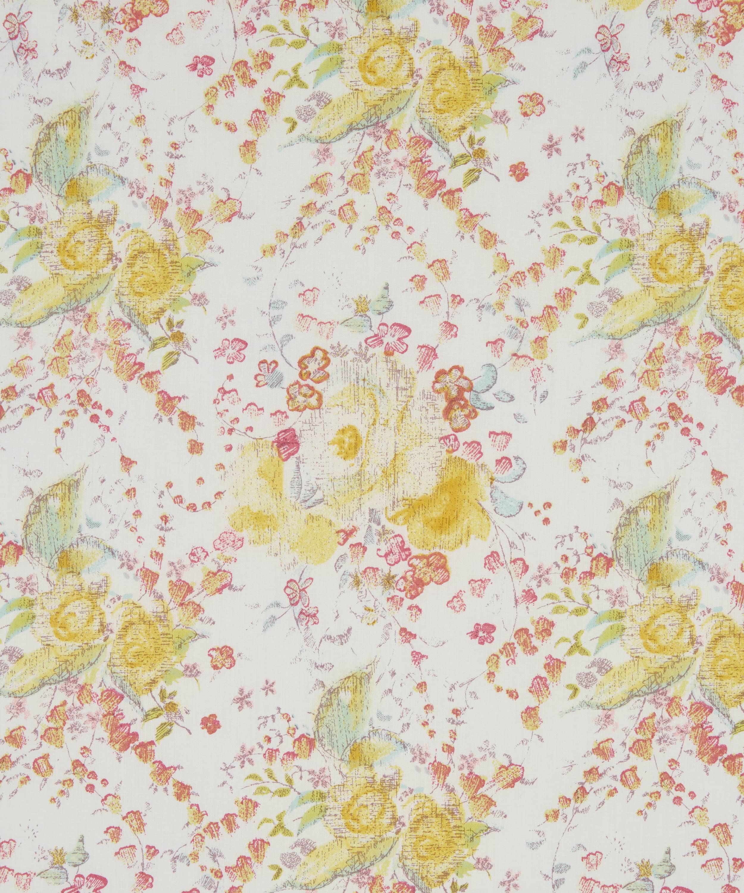グレンコット・ハウスにある刺繍の数々をヒントにしたこのデザインは、ミックス・メディアを使って創られました。最終的に出来上がったのは、1800年代初めに見られたようなヴィンテージ風の花柄です。