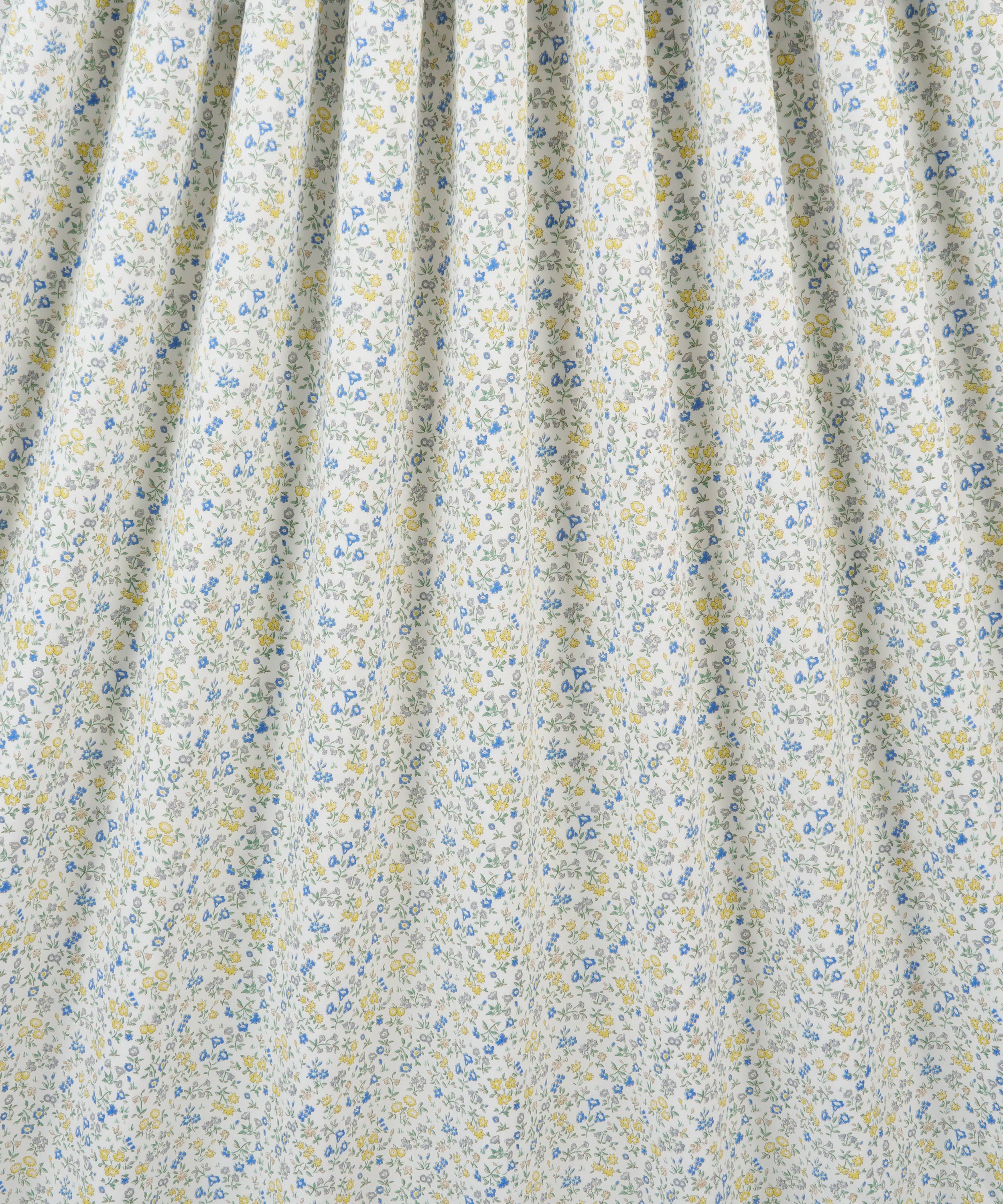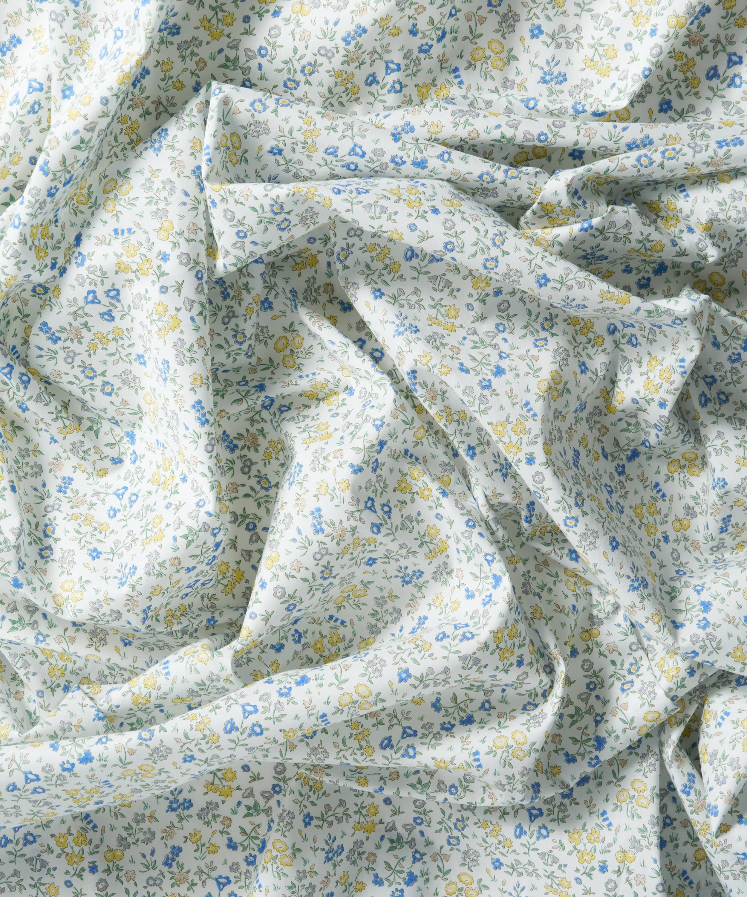 1936年に遡るリバティのアーカイブブックの中で見出された「メドゥ・スウィート」は、ブランドの本質ともいえるスタイルを体現した、魅力あふれるフローラルプリントです。春の小さな花々が一面に散りばめられ、デイジーやブルーベル、ほころび始めた蕾が、繊細な草の房に寄り添うように描かれています。どこか懐かしさを感じさせる情景が、穏やかで詩的なタペストリーのように広がります。