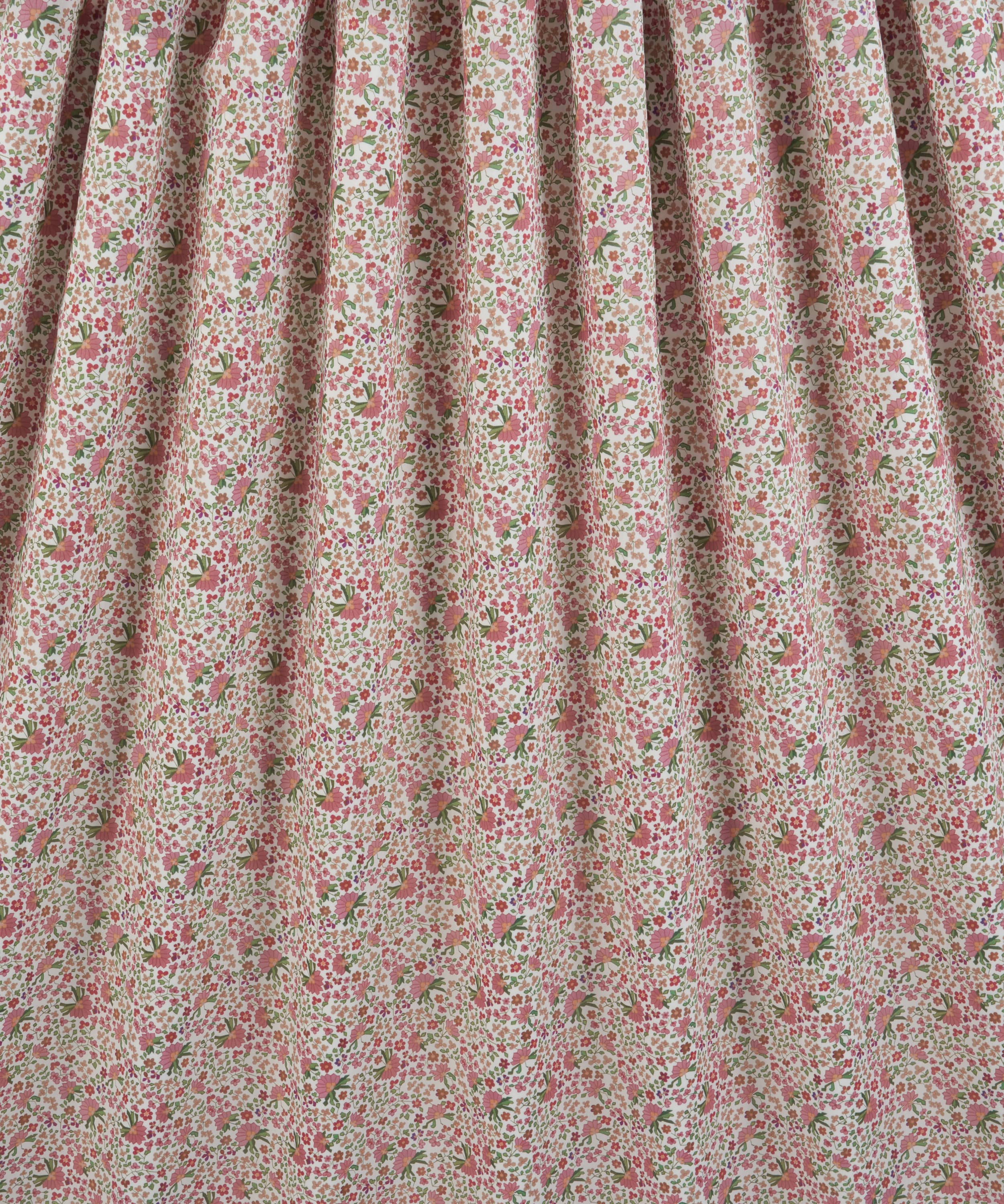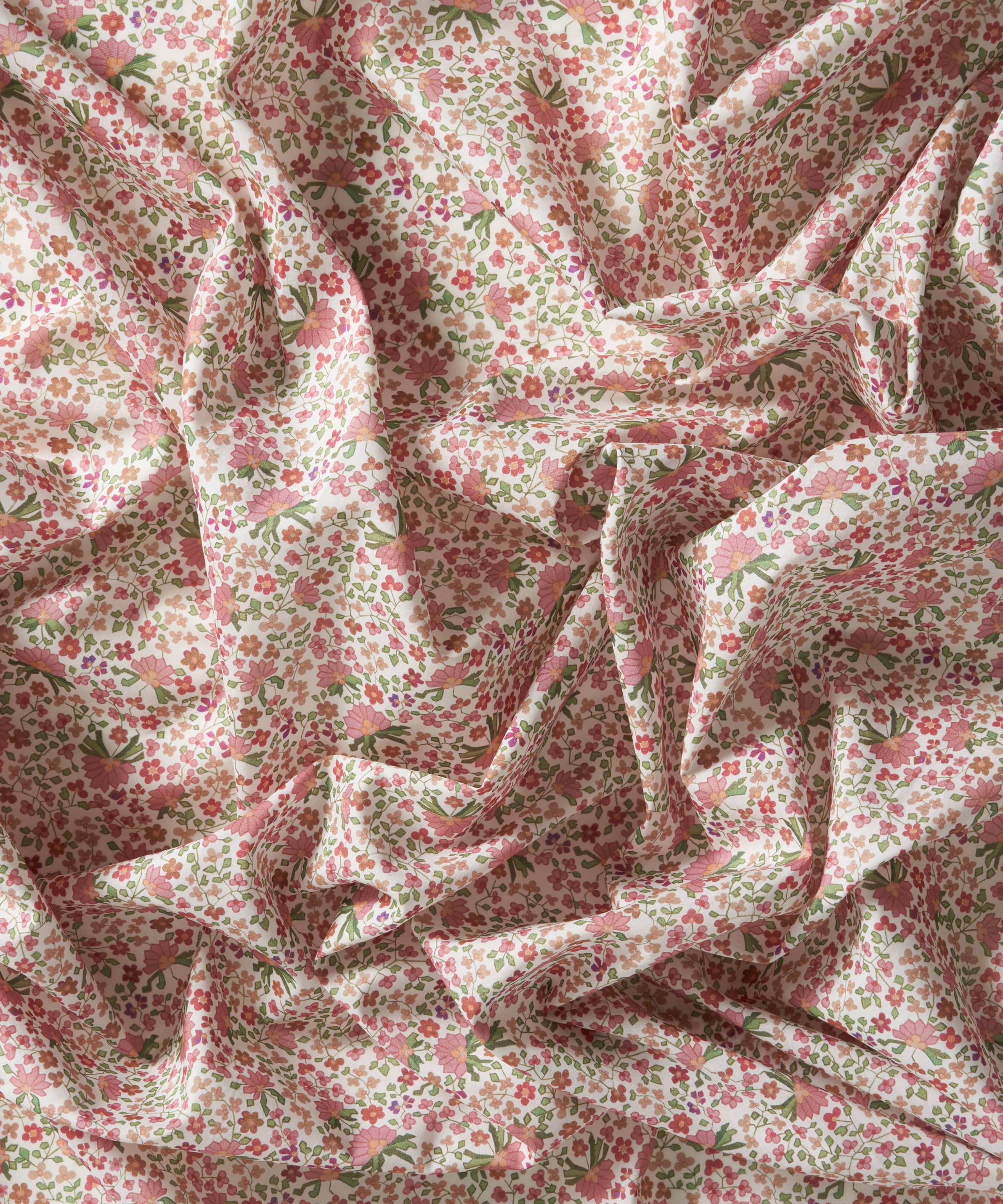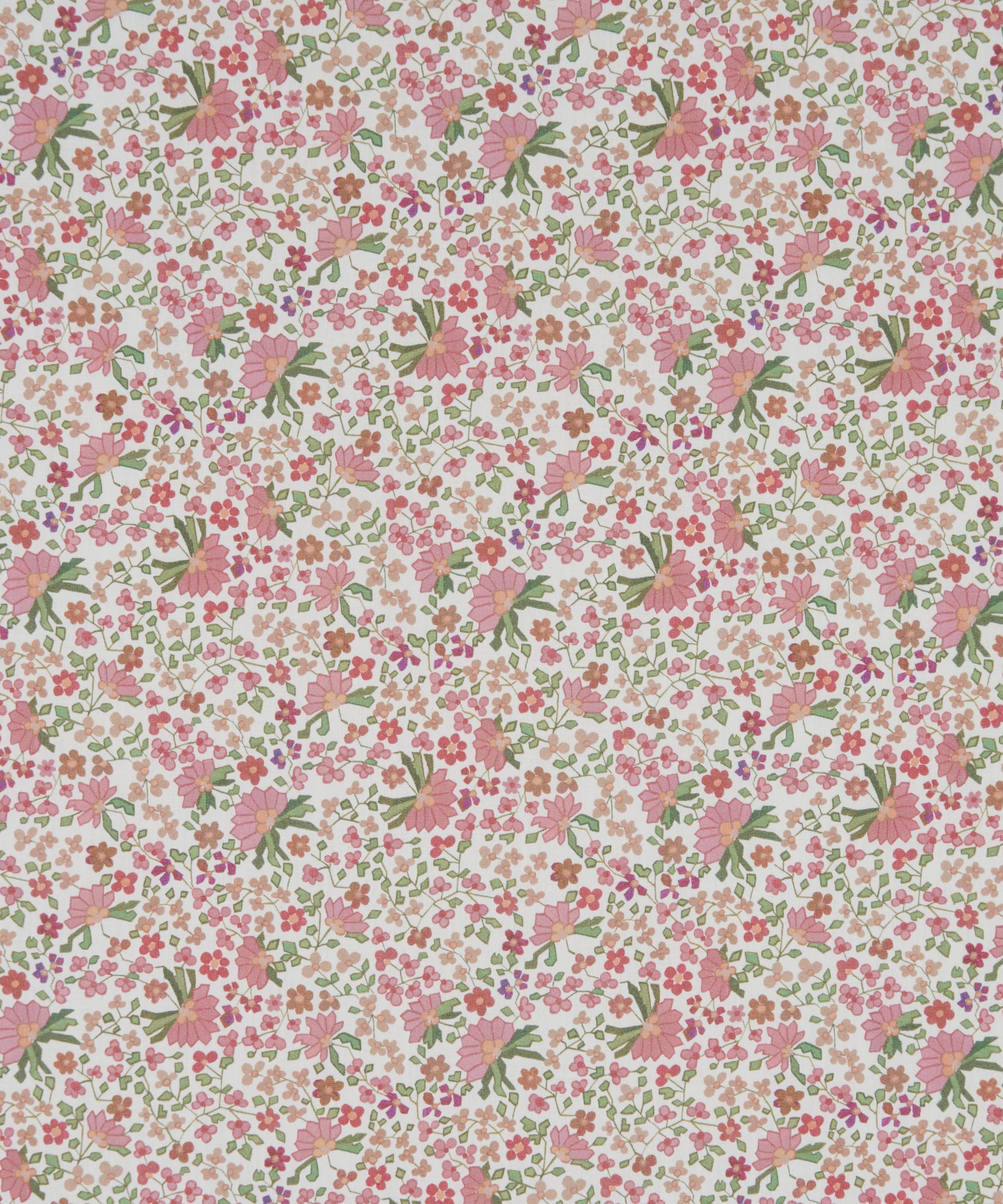 1900年代のリバティ・スカーフのデザインを基に、伝統的なモチーフを新鮮で現代的に表現した「ペイズリー・ポージー」。オリジナルでは大柄のペイズリーが特徴でしたが、この新しいバージョンは繊細な背景の花々に焦点を当てています。幾何学的な小花が多方向に入り乱れ、布地の上で絡み合うようなパターンとなりました。