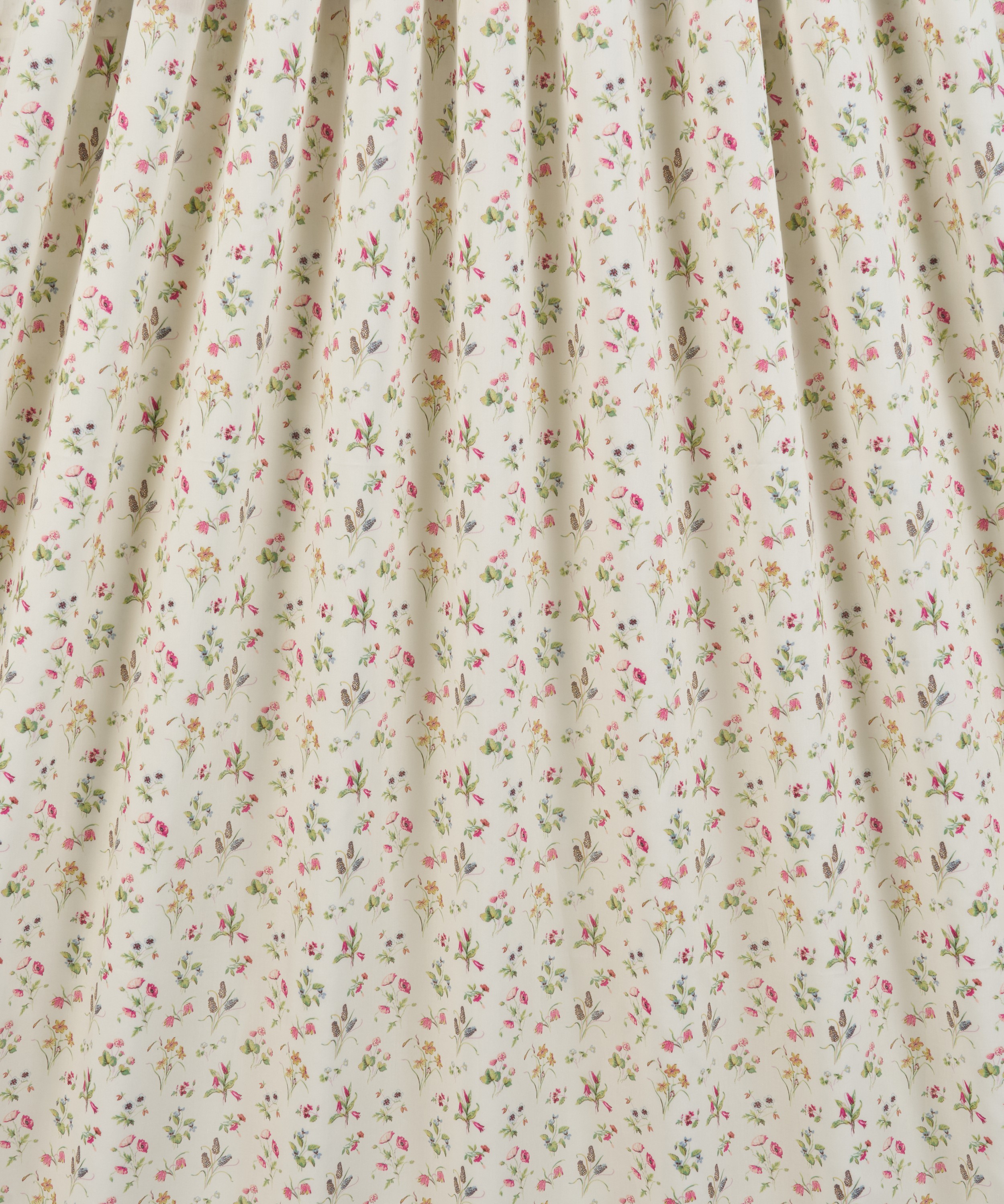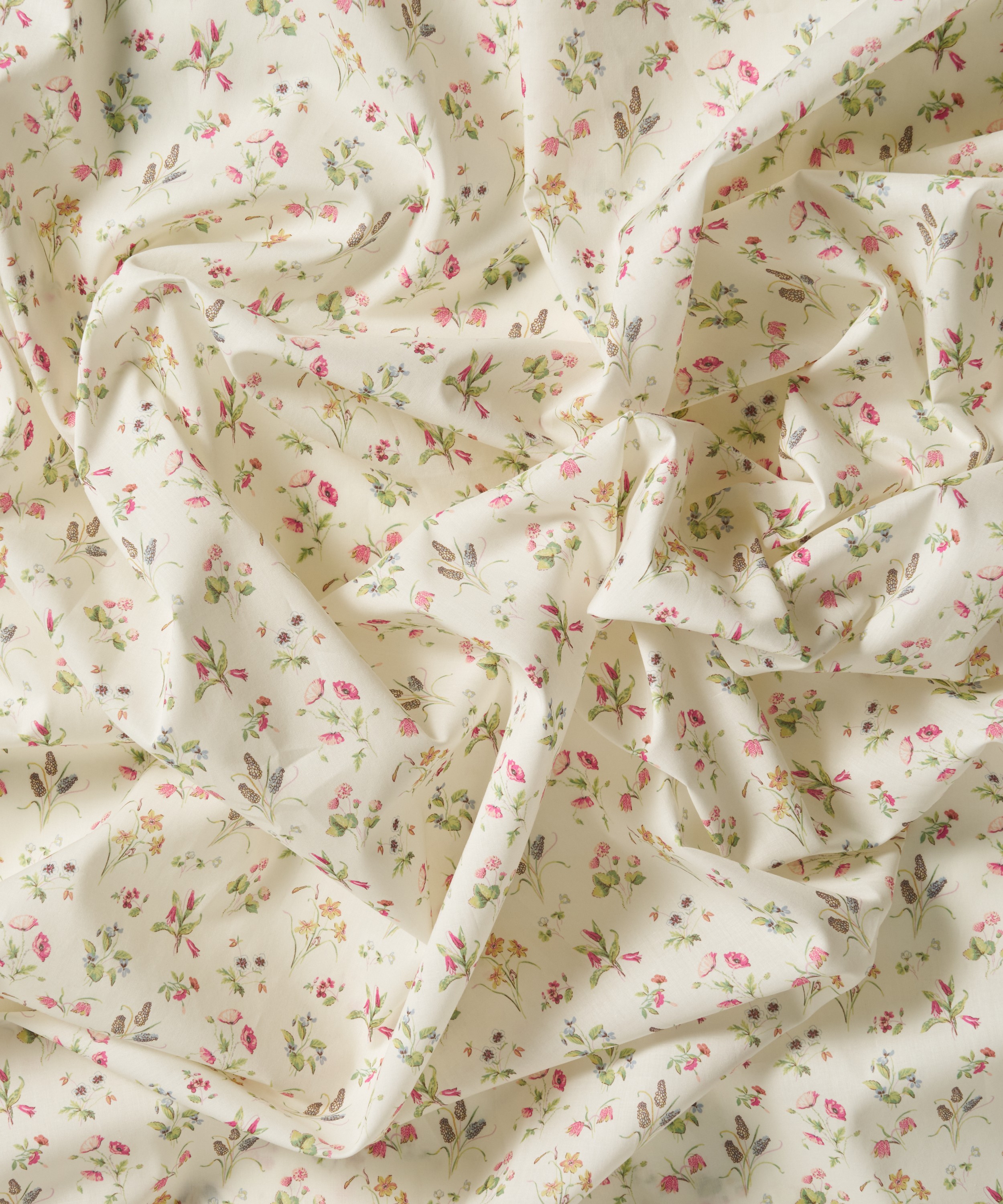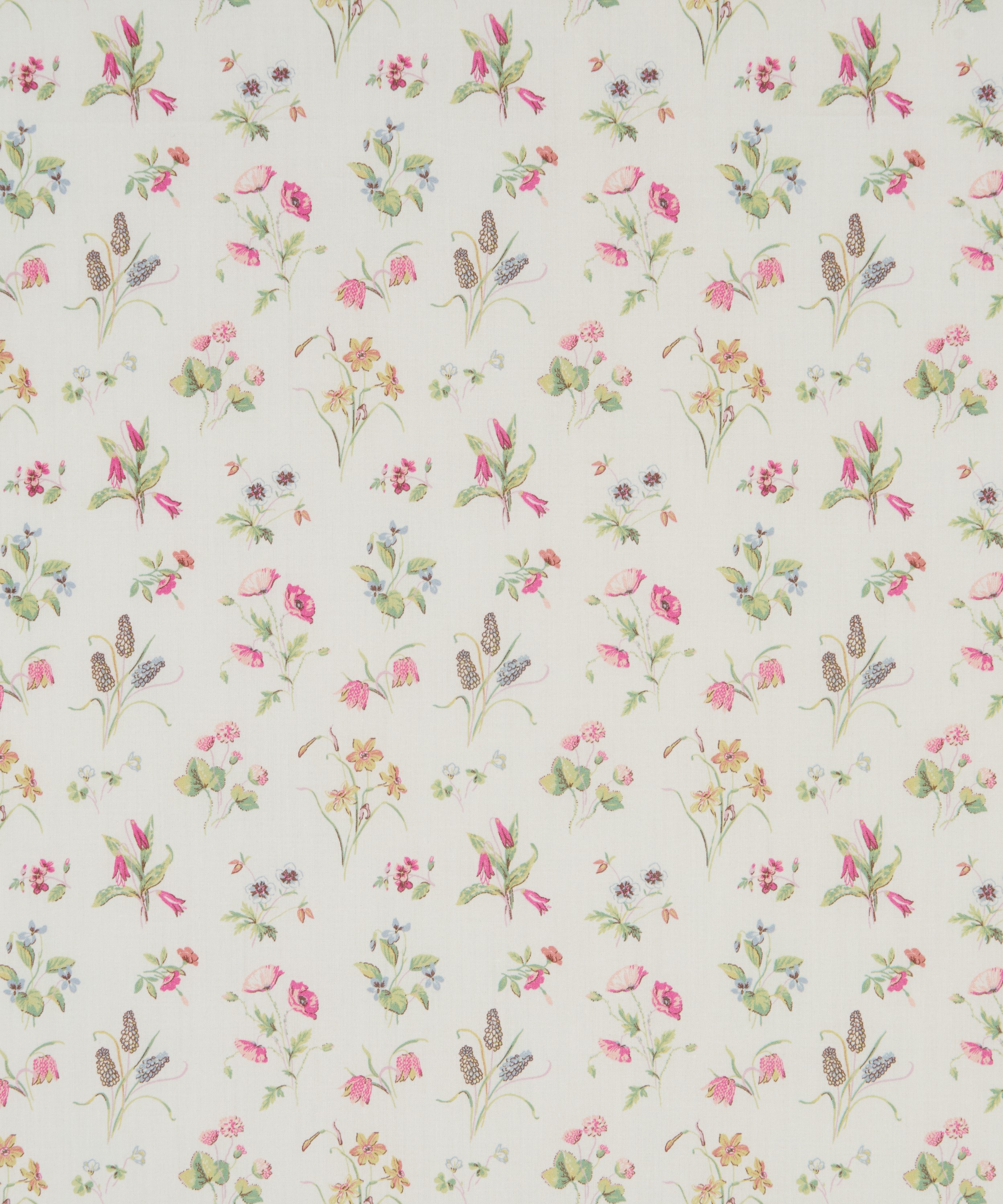 リバティのアーカイブに残るハンドペイントのアートワークに着想を得たデザインです。フリティラリアやポピー、ツリガネソウ、スイセン、ヒヤシンスといった季節の可憐な花々が軽やかに散りばめられ、春の草原のやわらかな空気感を表現しています。繊細なディテールで描かれた優美な小花は、色調の微妙な変化を映し出し、それぞれの花のやわらかな陰影を際立たせています。