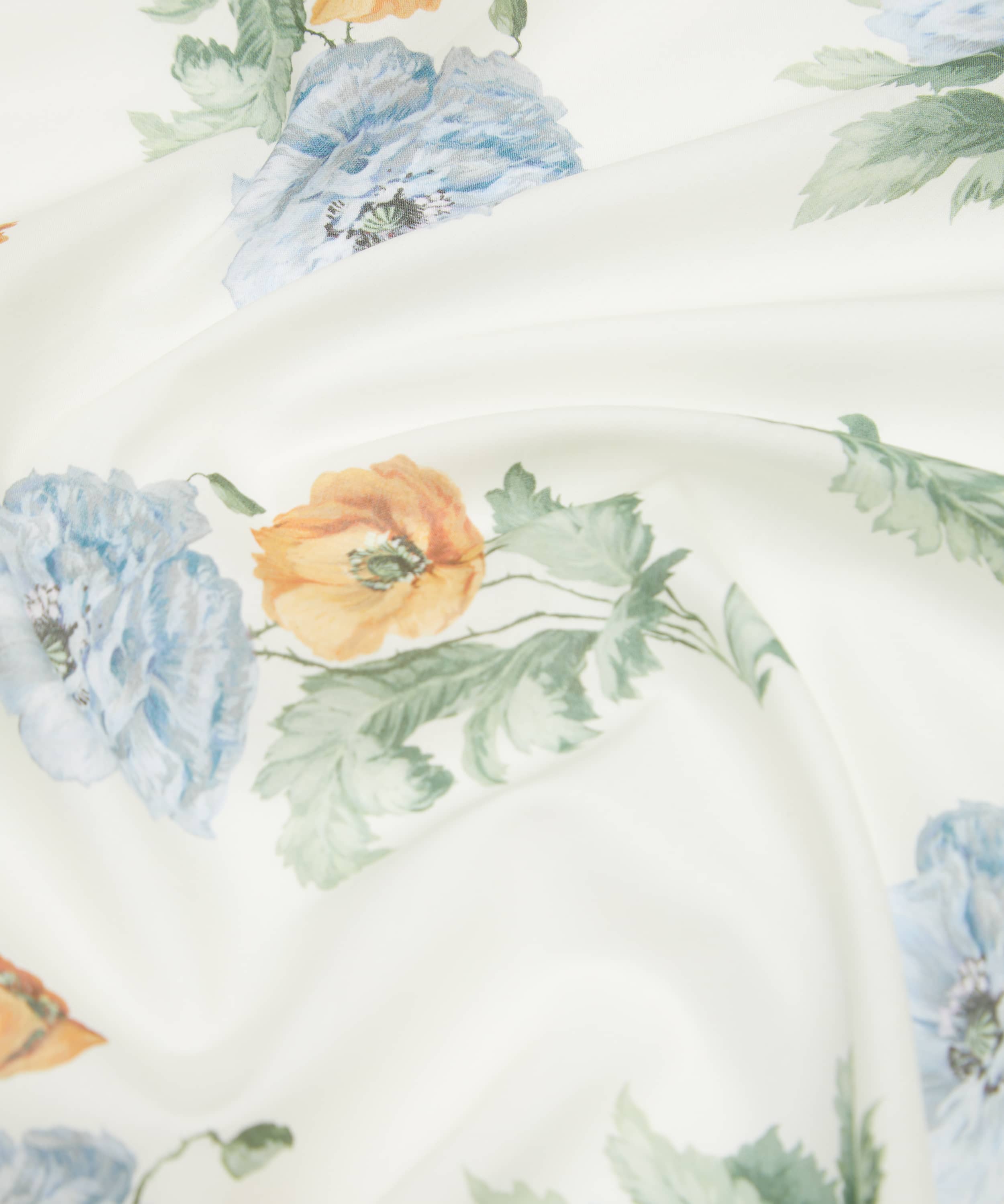 リバティのアーカイブに保管されている魅力的なアートワークにインスパイアを受けたこの絵画風なデザインは、優雅な摂政時代のポピーとシャクヤクの花束が描かれています。摂政時代のロマンチックで洗練された美学を反映したスタイルで巧みに表現され、細部にわたる精緻な花びらと豊かな葉が特徴的です。