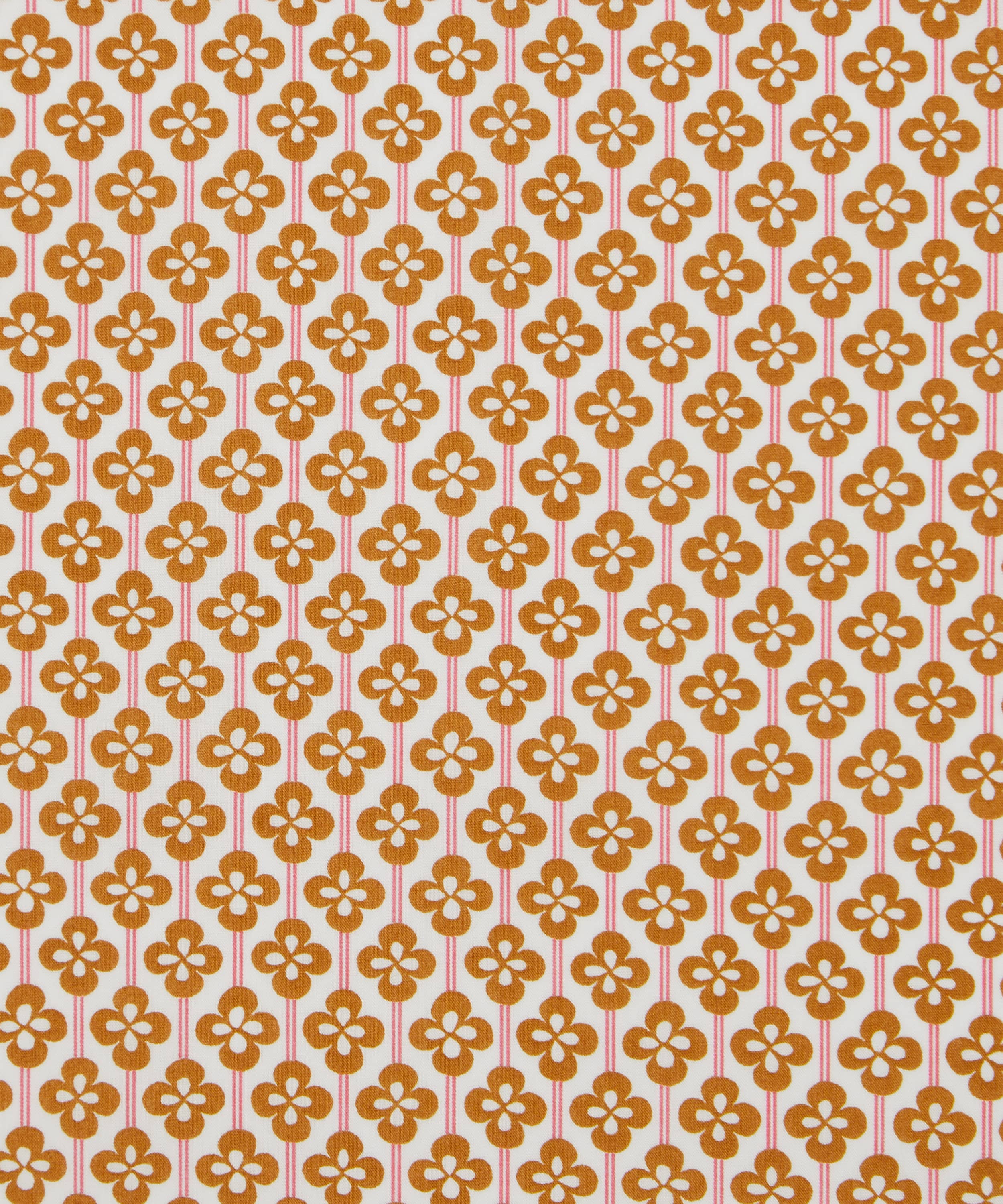 著名な摂政時代のダンディ、ボウ・ブラムルを讃えてデザインされた「クローバー・フィールズ」は、摂政時代のサテン・ダマスク模様を彷彿とさせる精緻な幾何学的な花柄です。シンプルでありながら洗練されたこのデザインは、ストライプの背景に交互に並ぶ小さな様式化された花びらが特徴です。