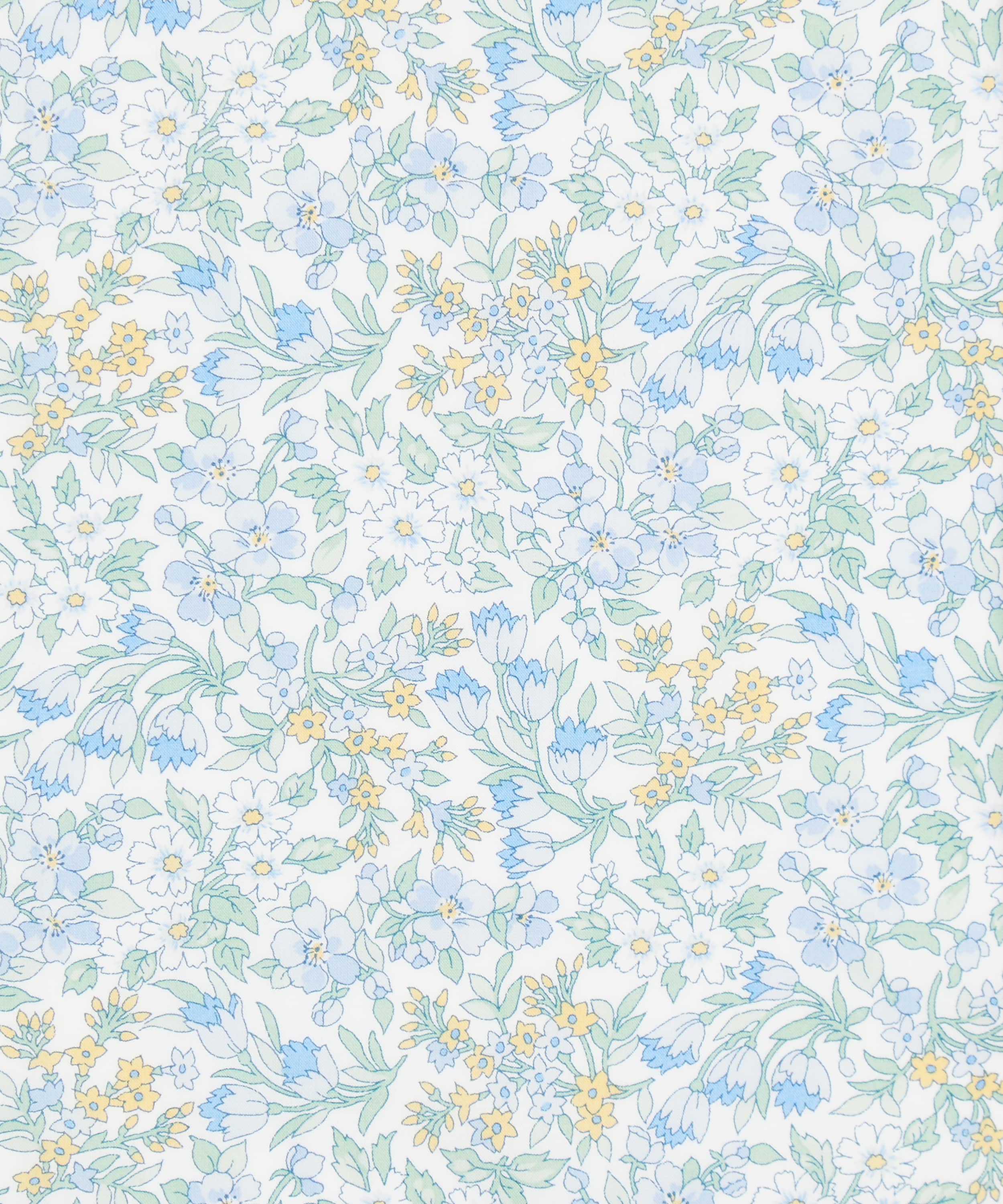 1989年に手描きされたリバティのアーカイブ作品からインスパイアされた「ナザニン」は、繊細な花束が特徴です。デイジー、バラ、スズランなどの草原の花々が織りなすタペストリーを形成し、ロマンティックでリージェンシー風の植物たちが楽しく舞い踊る様子を表現しています。