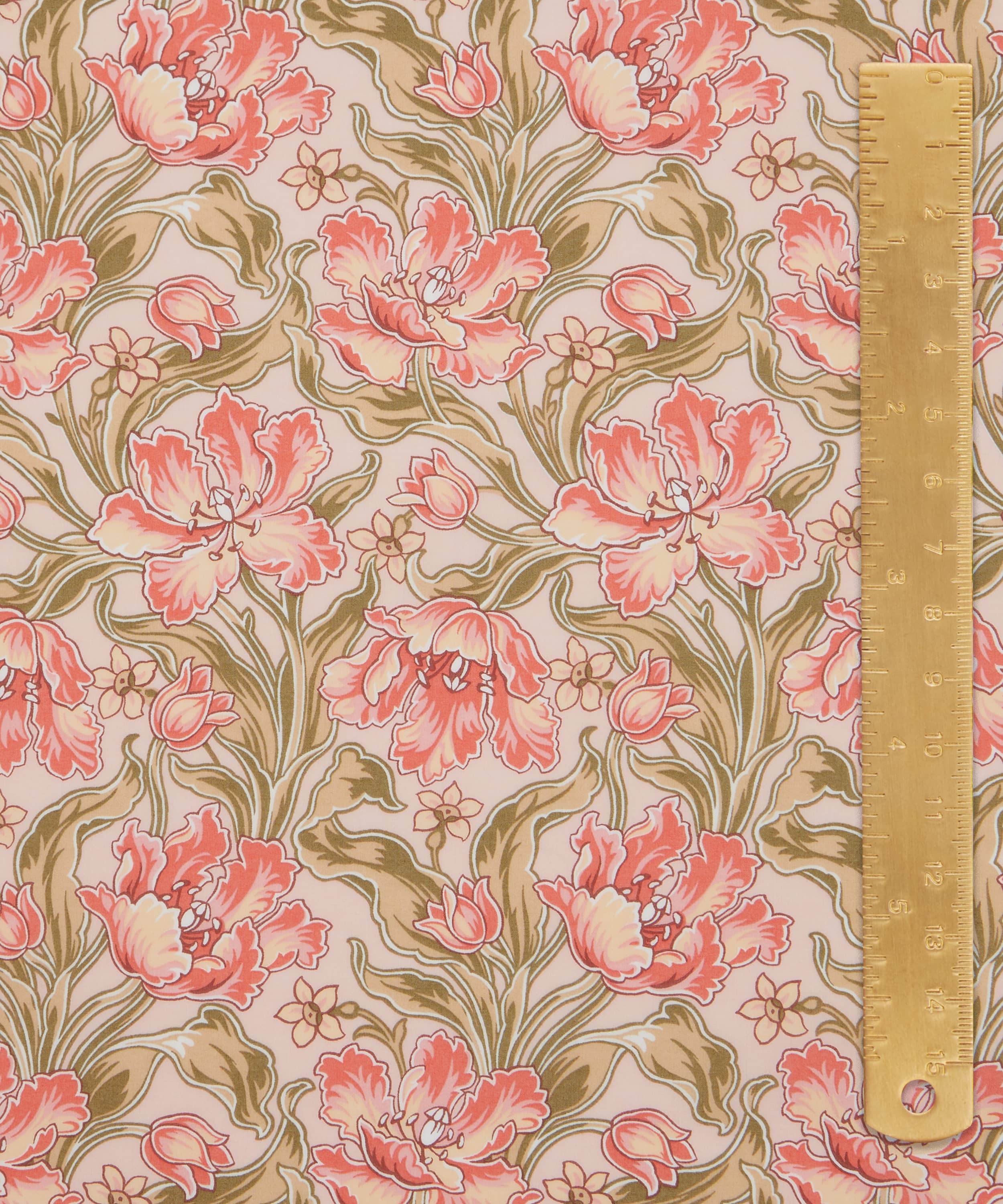 リバティ・アーカイブから発見された手描き作品を元にした「アーカイブ・チューリップス」は、リージェンシー・スタイルのチューリップが優雅に並ぶ印象的な植物デザインです。鮮やかな波状のラインで縁取られ、対照的な影で色付けされたこの構図は、豊かな背景色によってさらに引き立てられています。