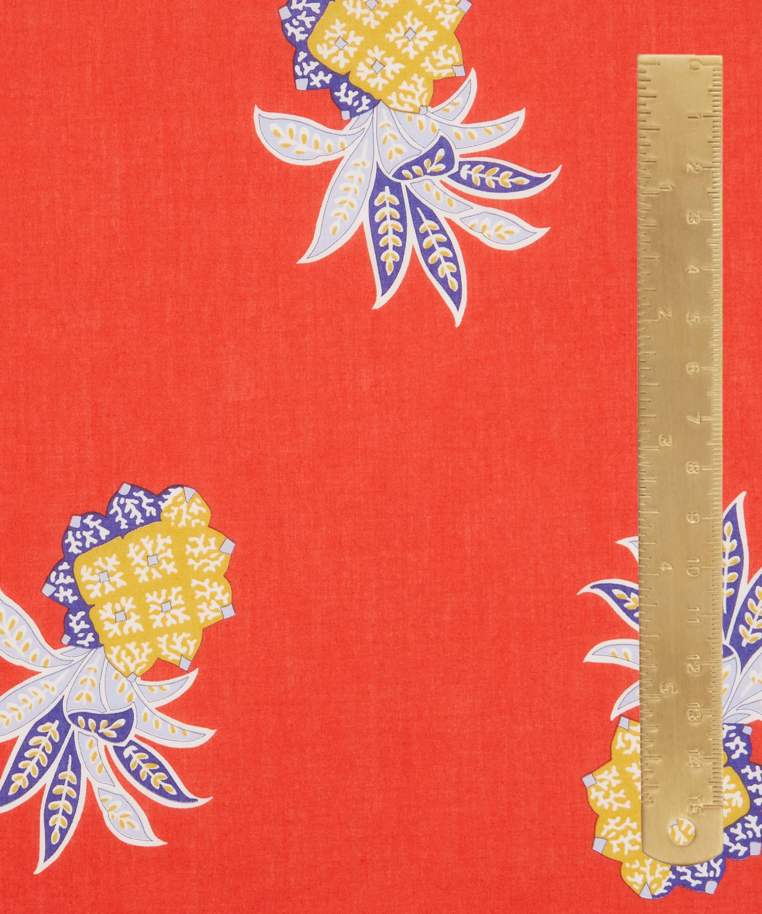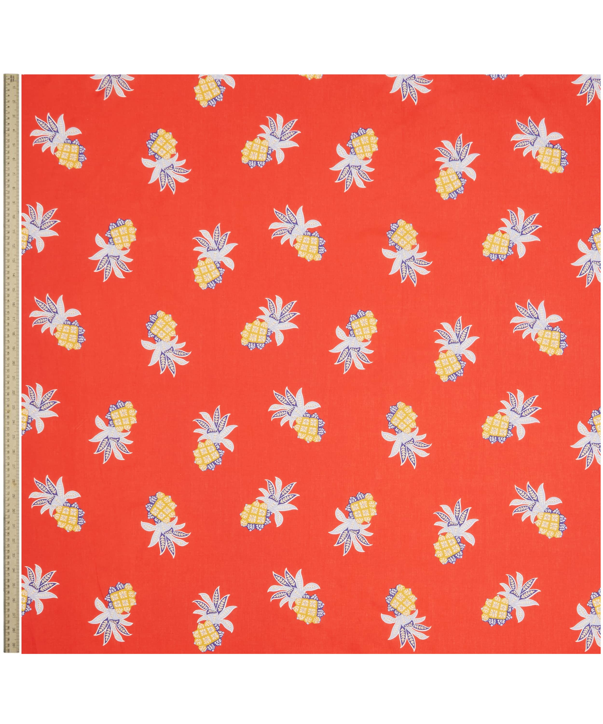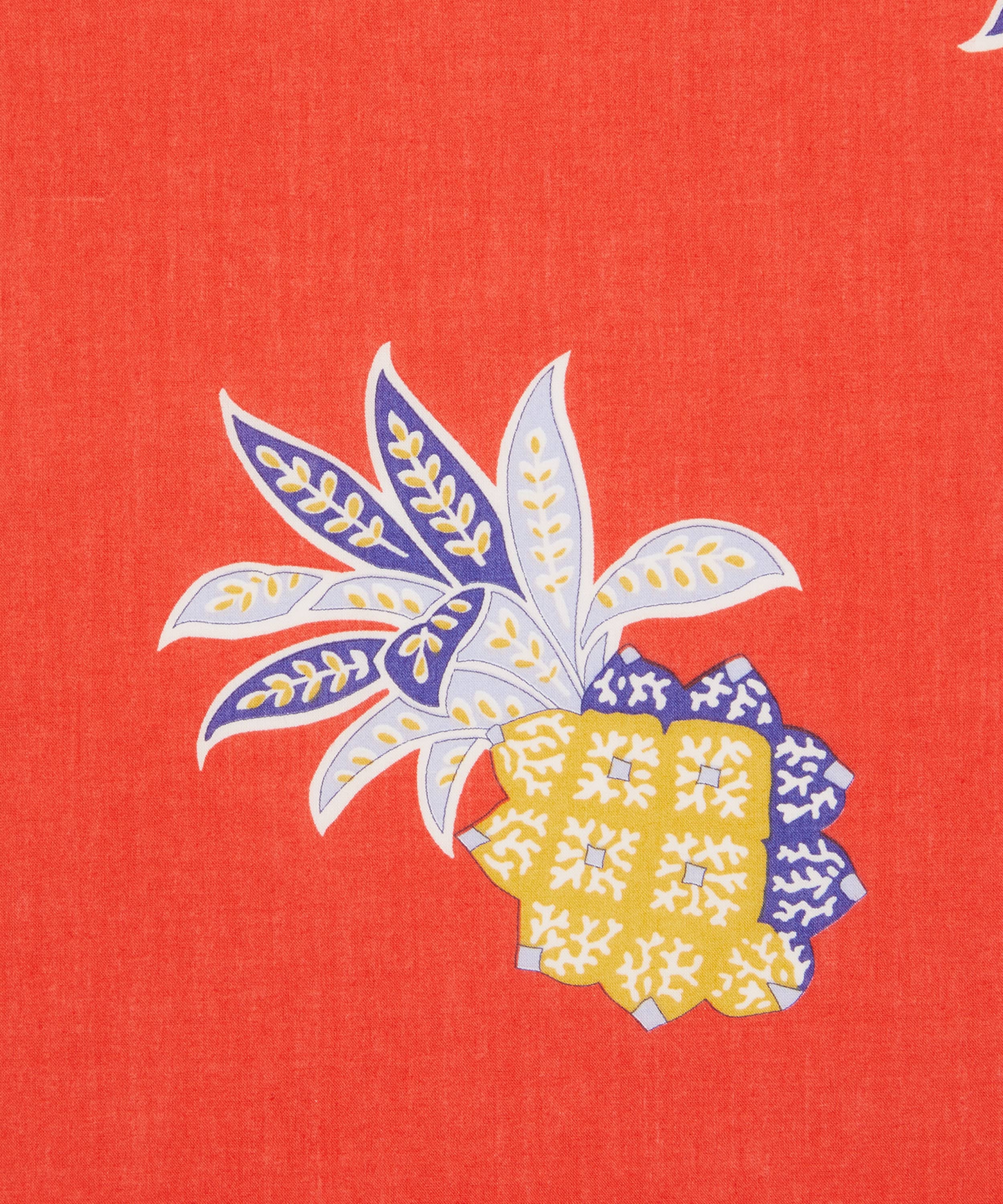鮮やかでジューシーな色合いとクラシックなモチーフを組み合わせ、アーカイブデザインに新鮮で現代的なひねりを加えたデザインです。再描画され、全体に繰り返し配置されたパターンでは、パイナップルの細部まで様式化された要素で表現され、とげのある葉やテクスチャーのある表面の幾何学的な形状が強調されています。