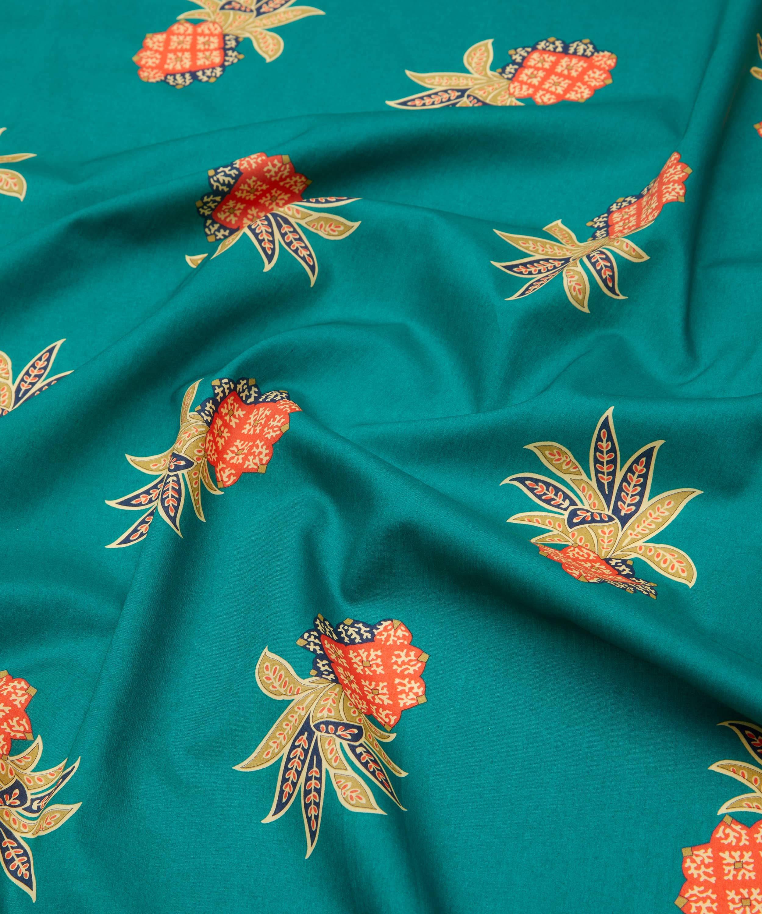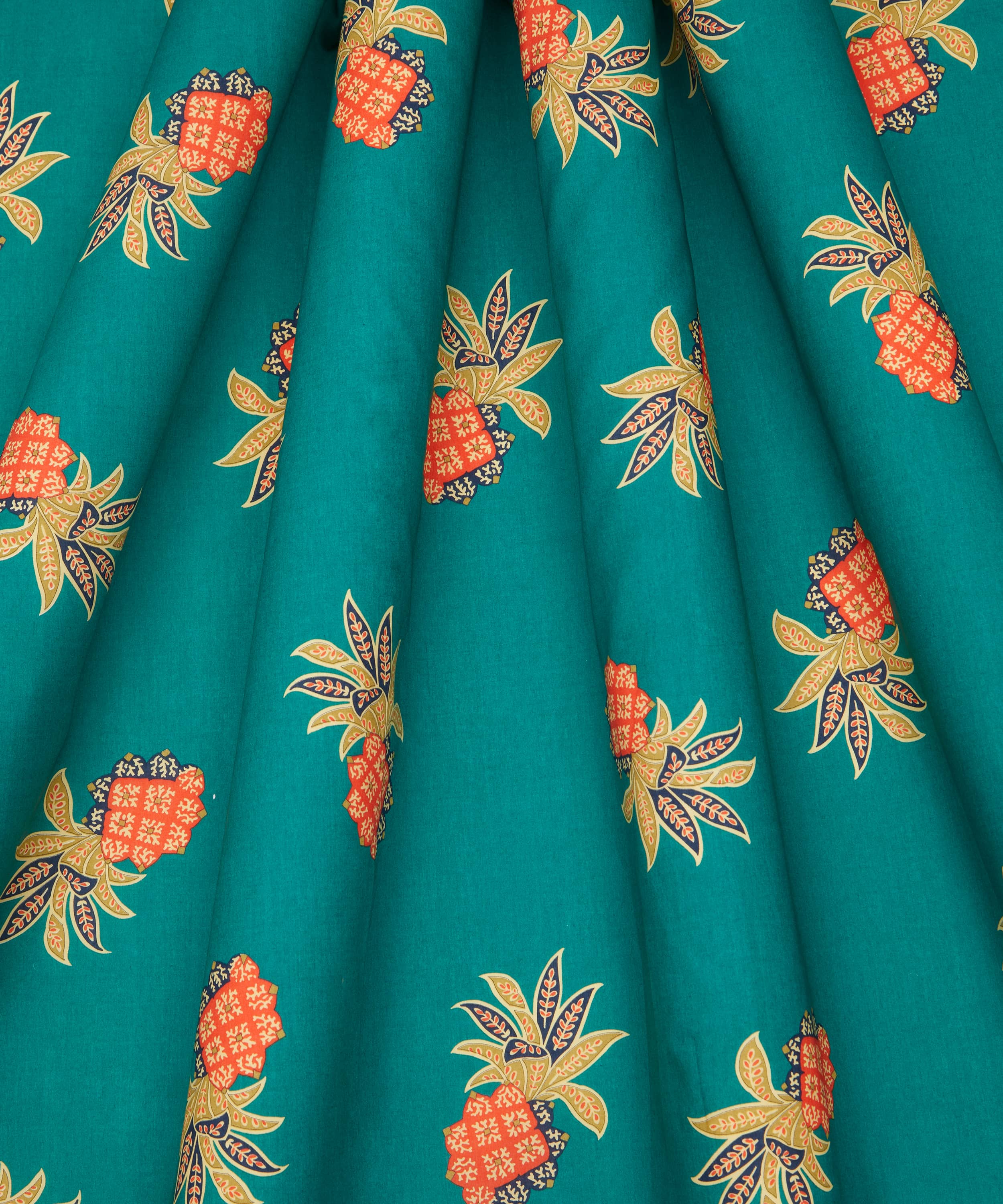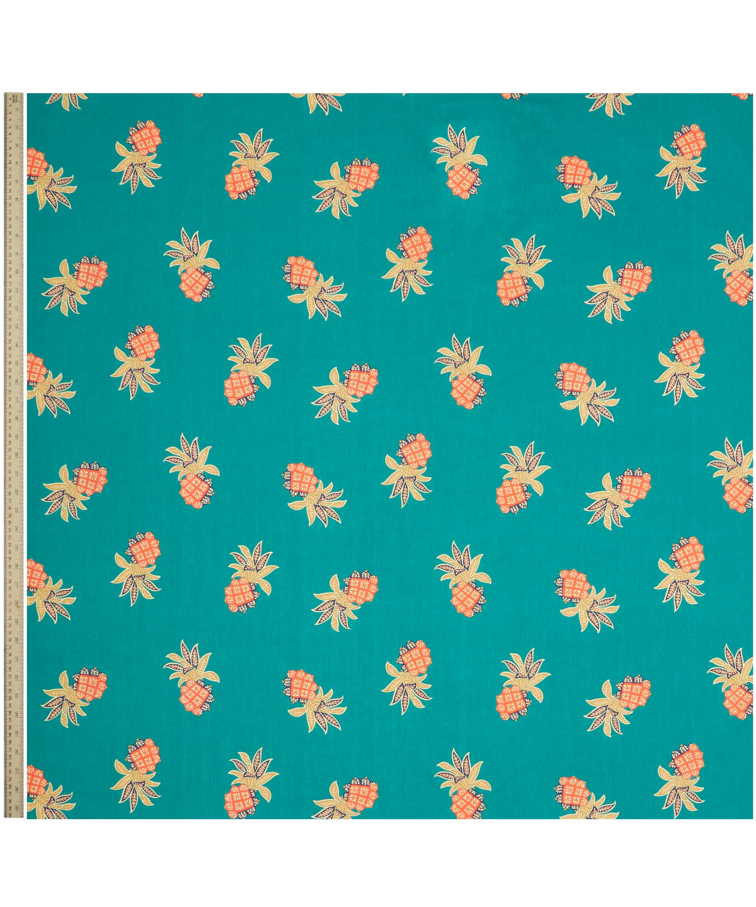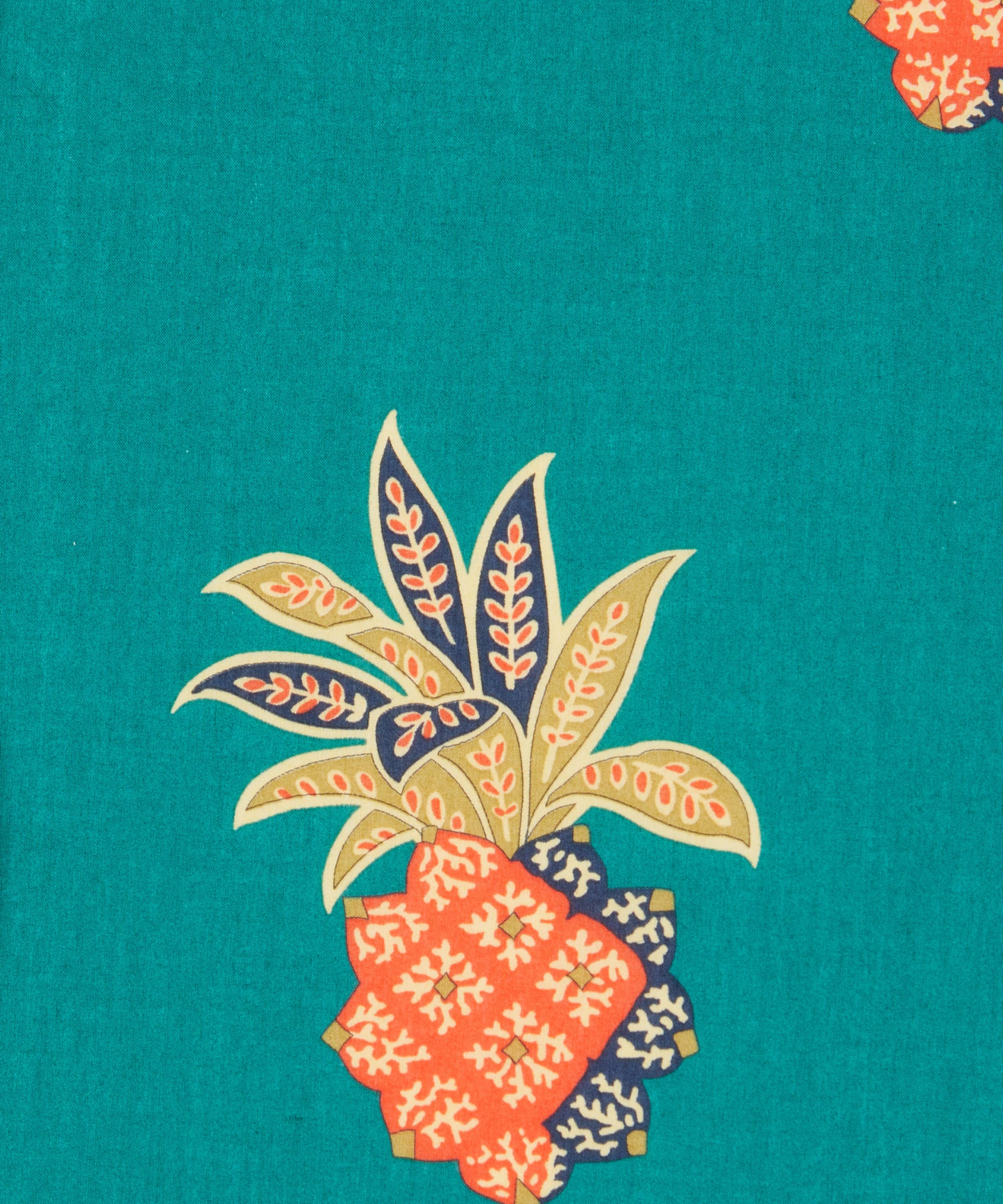 鮮やかでジューシーな色合いとクラシックなモチーフを組み合わせ、アーカイブデザインに新鮮で現代的なひねりを加えたデザインです。再描画され、全体に繰り返し配置されたパターンでは、パイナップルの細部まで様式化された要素で表現され、とげのある葉やテクスチャーのある表面の幾何学的な形状が強調されています。