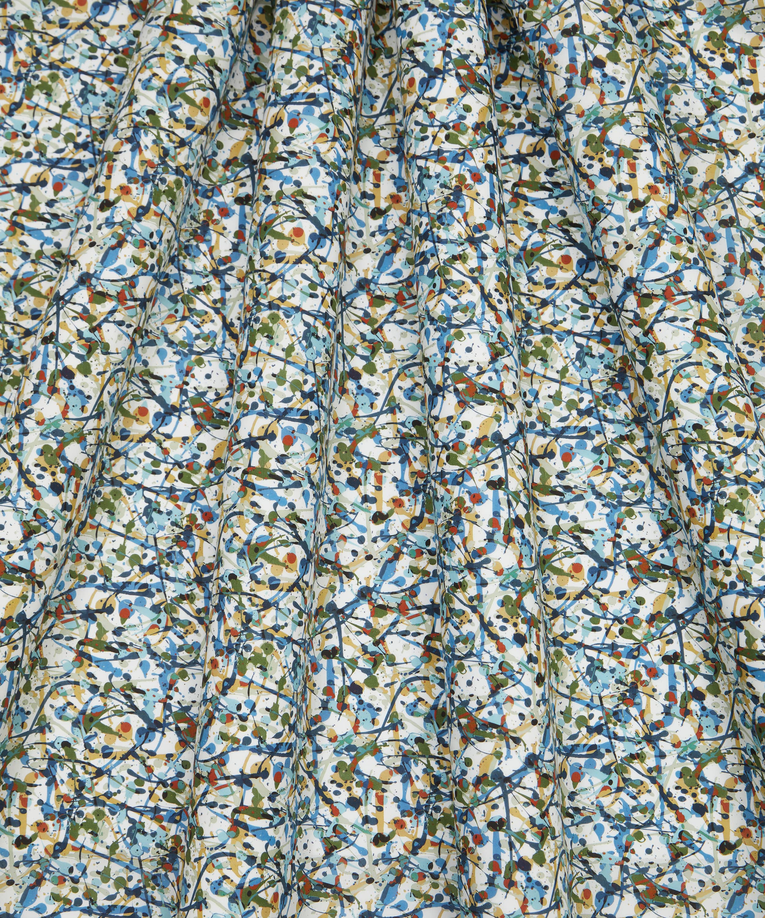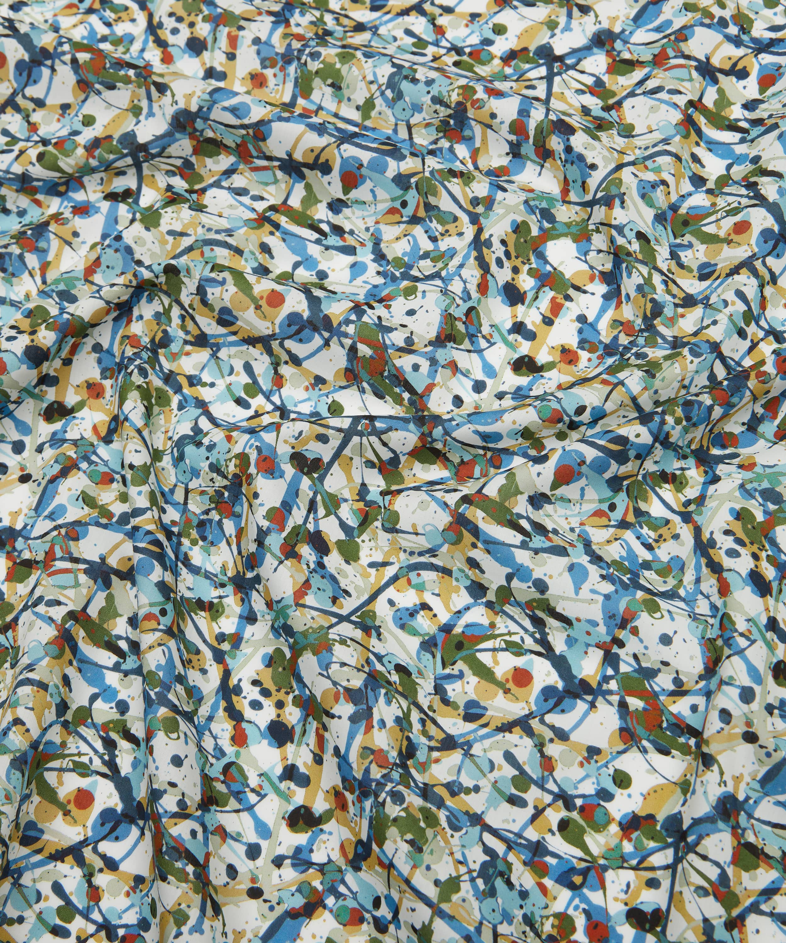 現代のクリエイティブたちのリズムと90年代のクラブシーンにインスパイアされたこのデザインは、アンダーグラウンドのダンスパーティーの壁を飾ったエネルギッシュなペイントの飛び散りを探求しています。非常にジェスチャー豊かで強烈に表現力豊かなこの抽象的なパターンは、リバティデザインスタジオで手描きされ、ほとんど催眠的な即興性と混沌を感じさせます。