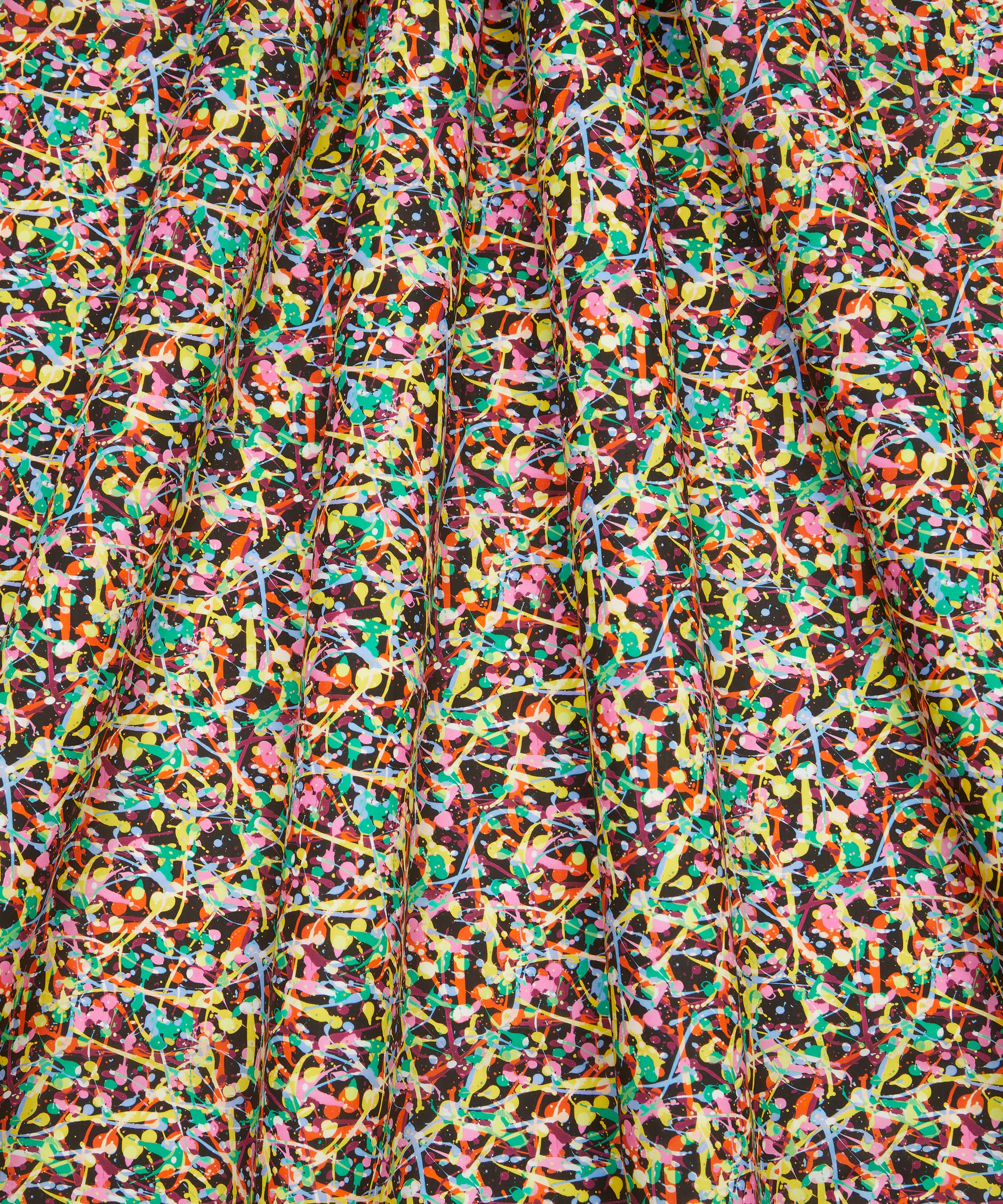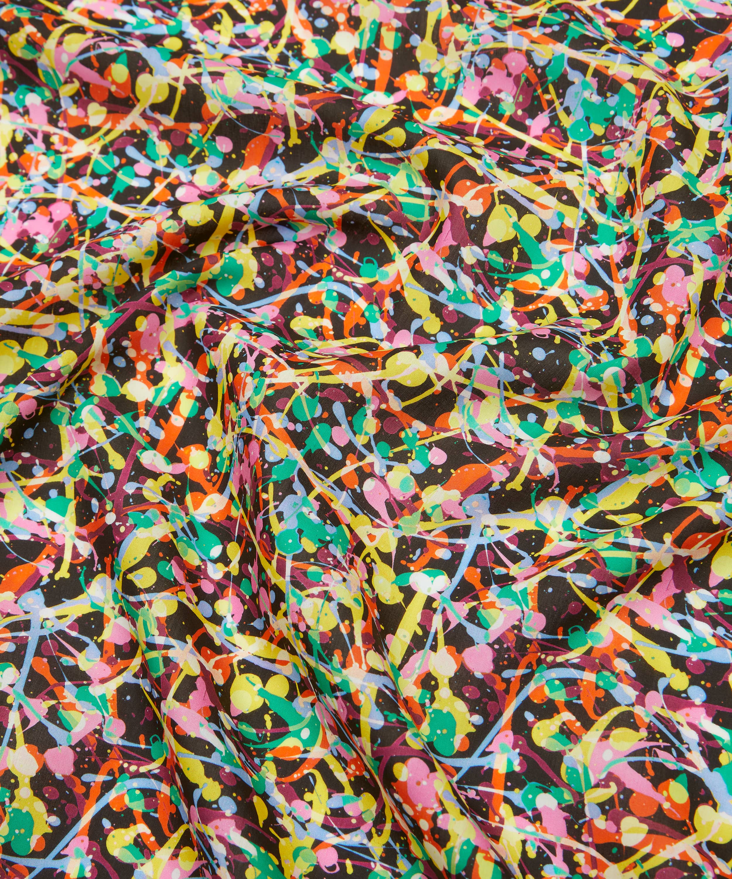 現代のクリエイティブたちのリズムと90年代のクラブシーンにインスパイアされたこのデザインは、アンダーグラウンドのダンスパーティーの壁を飾ったエネルギッシュなペイントの飛び散りを探求しています。非常にジェスチャー豊かで強烈に表現力豊かなこの抽象的なパターンは、リバティデザインスタジオで手描きされ、ほとんど催眠的な即興性と混沌を感じさせます。