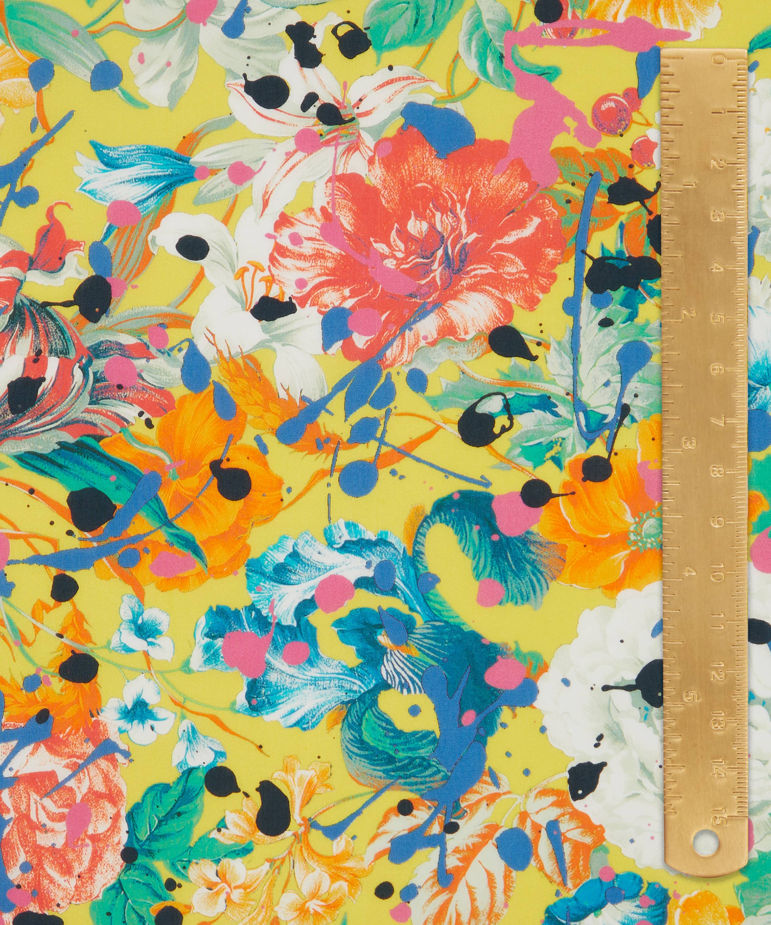 反骨精神を表現したこのデザインは、リバティデザインチームがオリジナルの手描きスカーフを再構築し、強烈な印象を与えるパターンへと変貌させました。伝統的な花柄の上に大胆でダイナミックなペイントの飛び散りが施された「パンク・ポゥジー」は秩序と混沌の境界を曖昧にし、リバティの豊かな歴史と反抗的な現代的エッジを融合させています。
