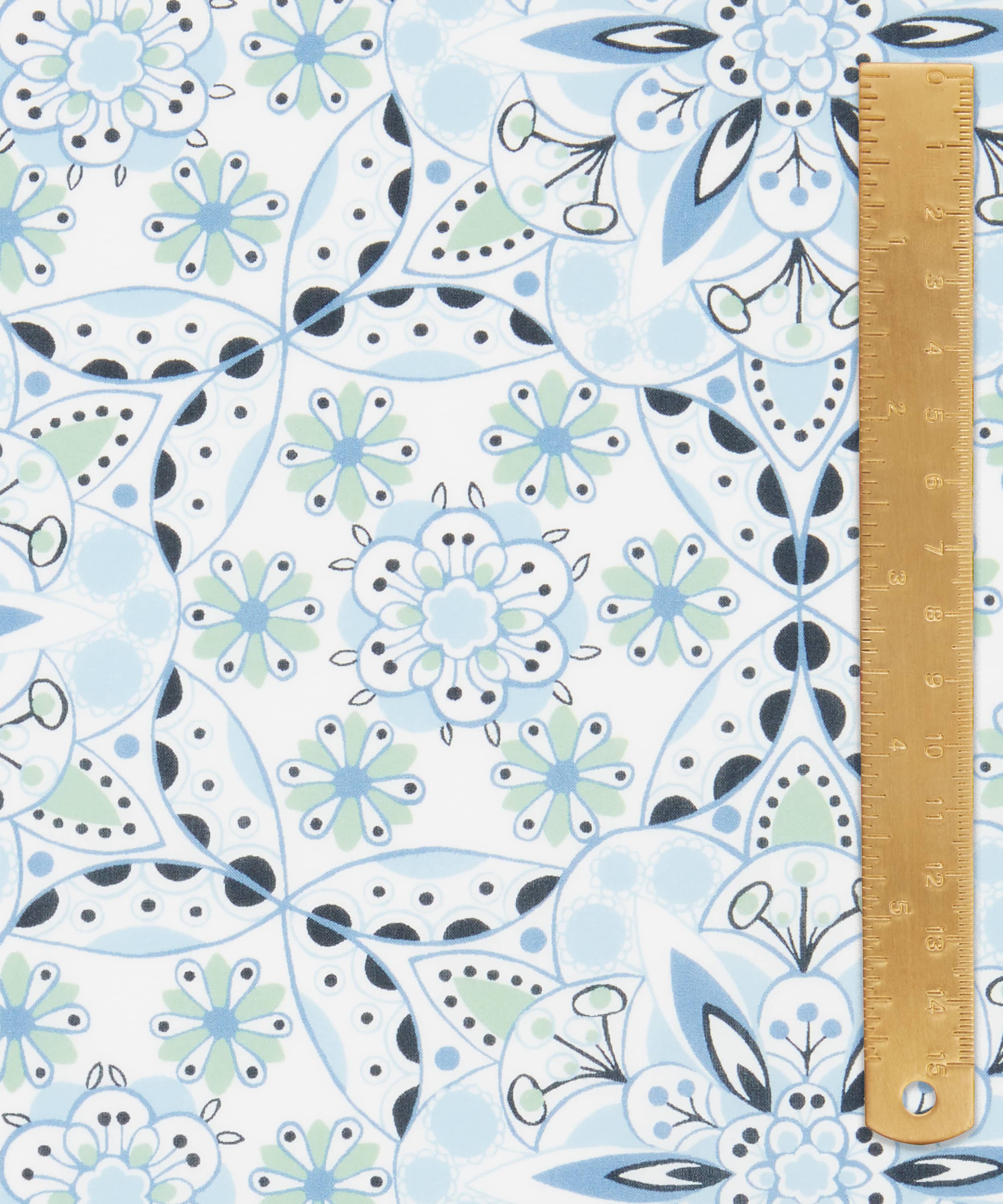 1965年のリバティアーカイブ生地を基にした洗練された花柄のデザインは、柔らかく懐かしい視点を通して1960年代の華やかな時代の精神を体現しています。大きなグラフィックフラワーがバランスよく配置され、穏やかな静けさとともに、楽観的でまるで万華鏡のようなエネルギーを放っています。