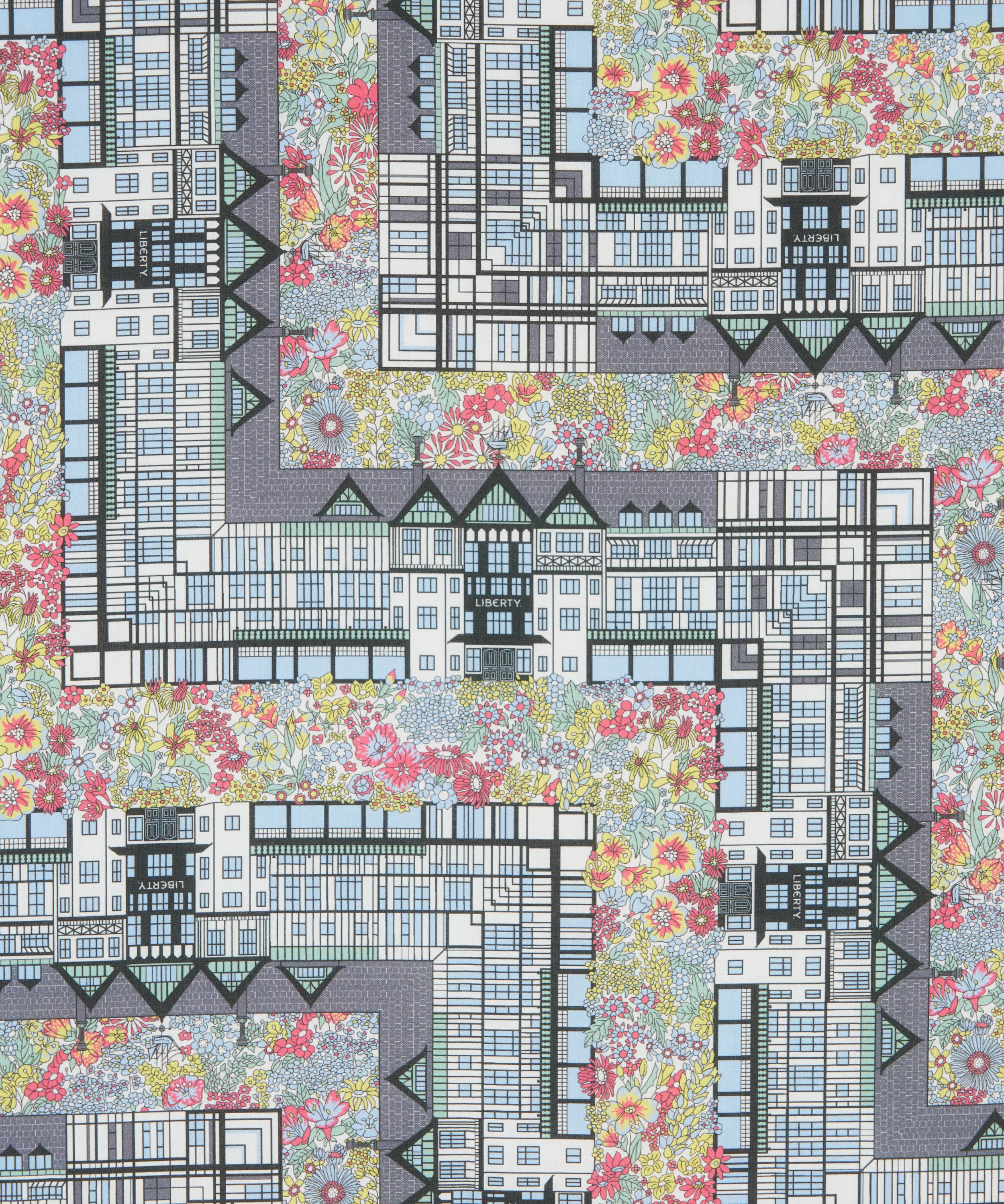 リバティを象徴するロンドンのフラッグシップストアへのオマージュとして描かれた、フローラルモチーフと建築的な幾何学要素を組み合わせたデザインの「チューダー・ベル」。リバティの大きな木製扉をくぐった瞬間の高揚感を表現し、通り沿いには、名高いリバティのフラワーショップに敬意を表して再構築された「マーガレット・アニー」が配されています。