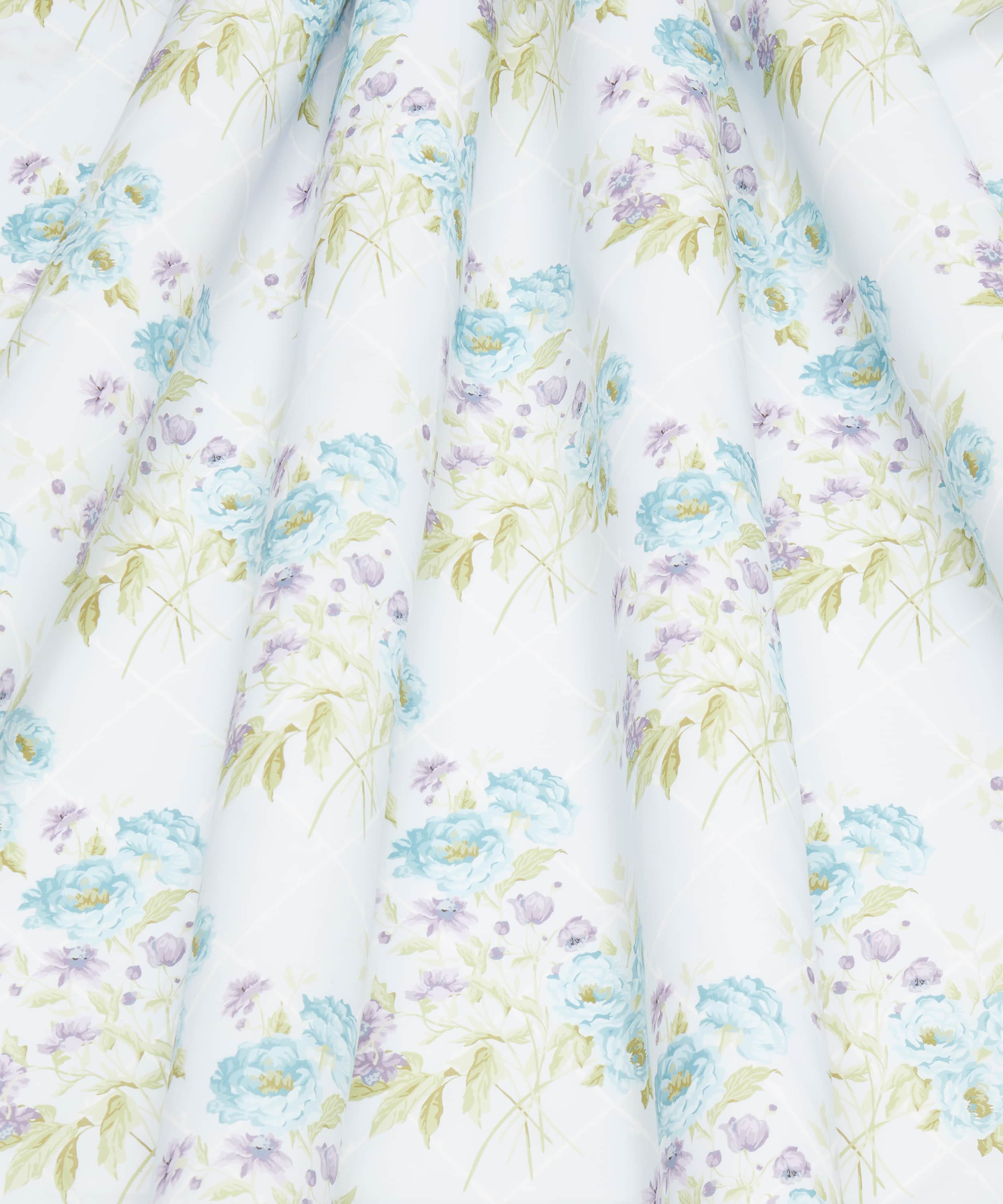 1980年代のリバティのインテリア用プリントに着想を得て誕生した「ブレナム・ガーデン」。リバティのスタジオにて丹念にハンドペイントされ、時代にインスパイアされた庭園の洗練された優雅さを描き出しています。格式あるカントリーハウスと、芳香に満ちたテラスガーデンを思わせる構成の中で、満開に咲き誇るローズ、マルグリット、ポピーの豊かなブーケが表現されています。繊細なリーフのトレリス(格子模様)が全体をやさしく巡り、幾何学的な要素とリージェンシー様式のフローラルモチーフが静かに溶け合うことで、丁寧に手入れされた庭園ならではの気品と奥行きを生み出しています。