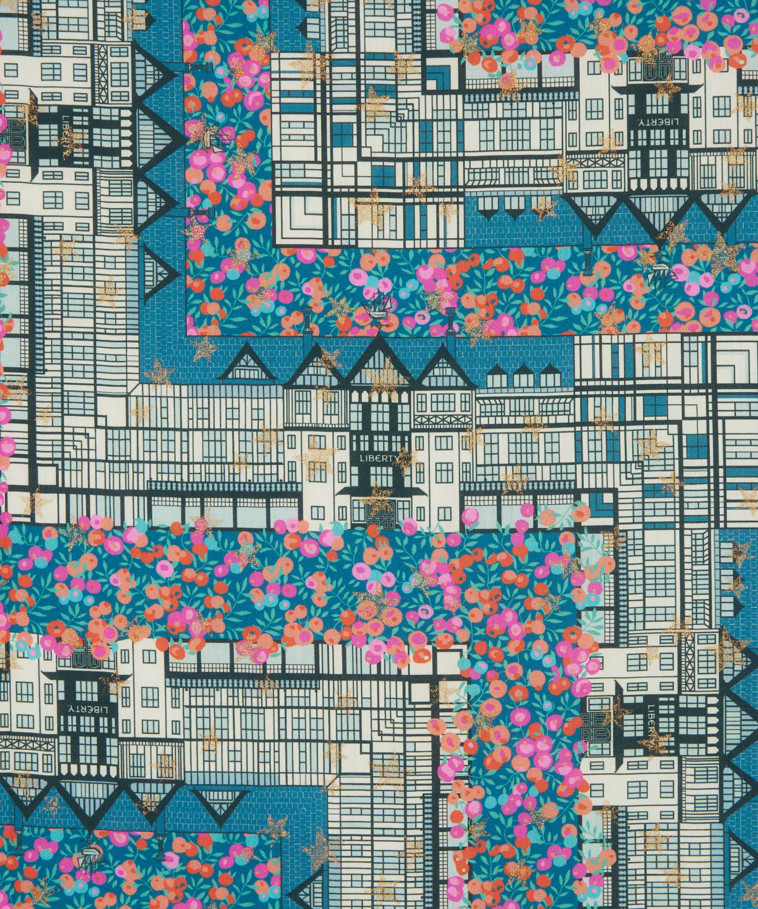 リバティ本店とその象徴するすべてへのラブレターのようなデザインでの「チューダー・ベリー」。「チューダー・ベル」と「ウィルトシャー・ベリー」を独自に組み合わせ、ひねりを加えたひと柄。きらめく星々を映し出すように仕上げられており、ホリデーシーズンにリージェント・ストリートの木製の扉をくぐるときのわくわくした気持ちを呼び起こします。