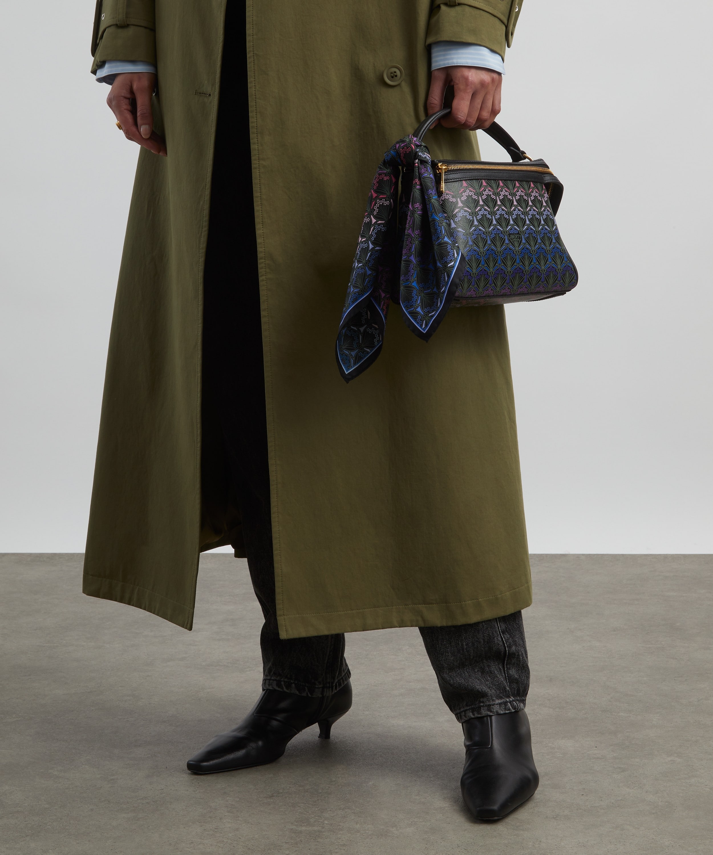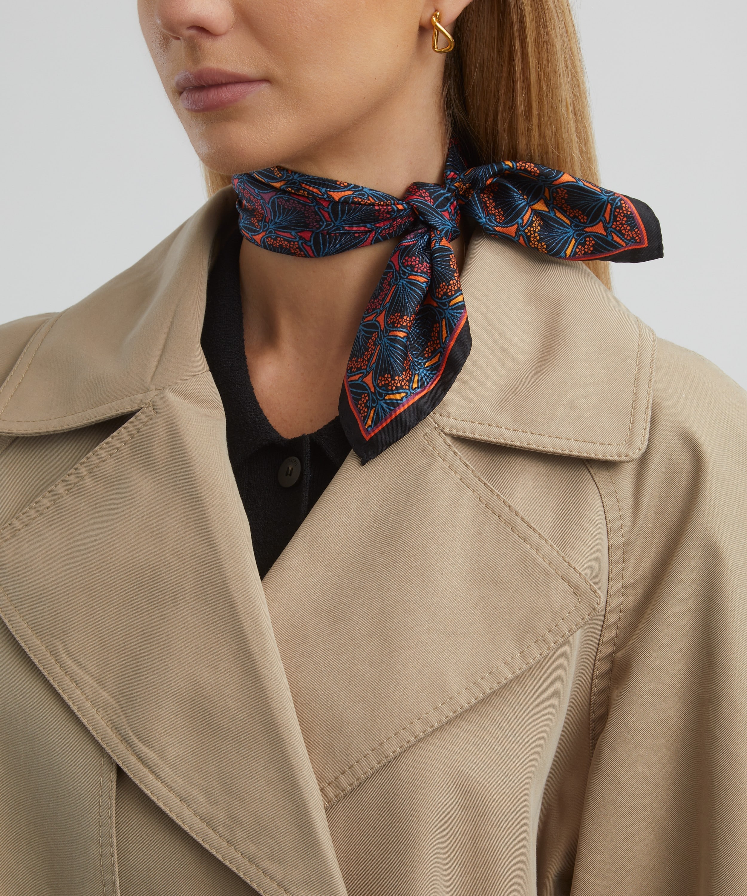 イタリア・コモで丁寧にプリントされたシルクツイルは、なめらかな質感が魅力。首元に巻いたり、バッグに添えたりと、幅広いスタイリングに取り入れやすく、装いに洗練された彩りを添えます。