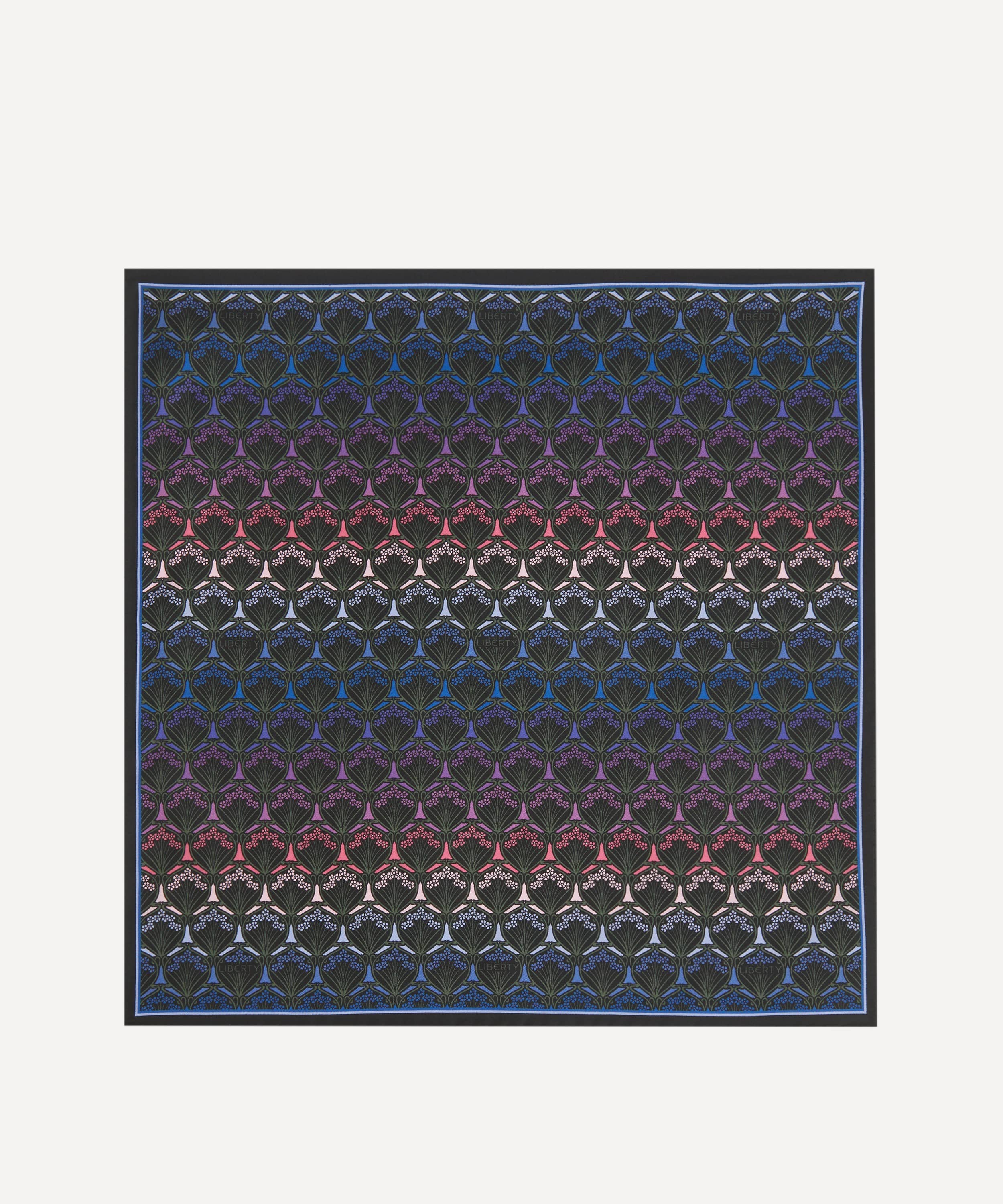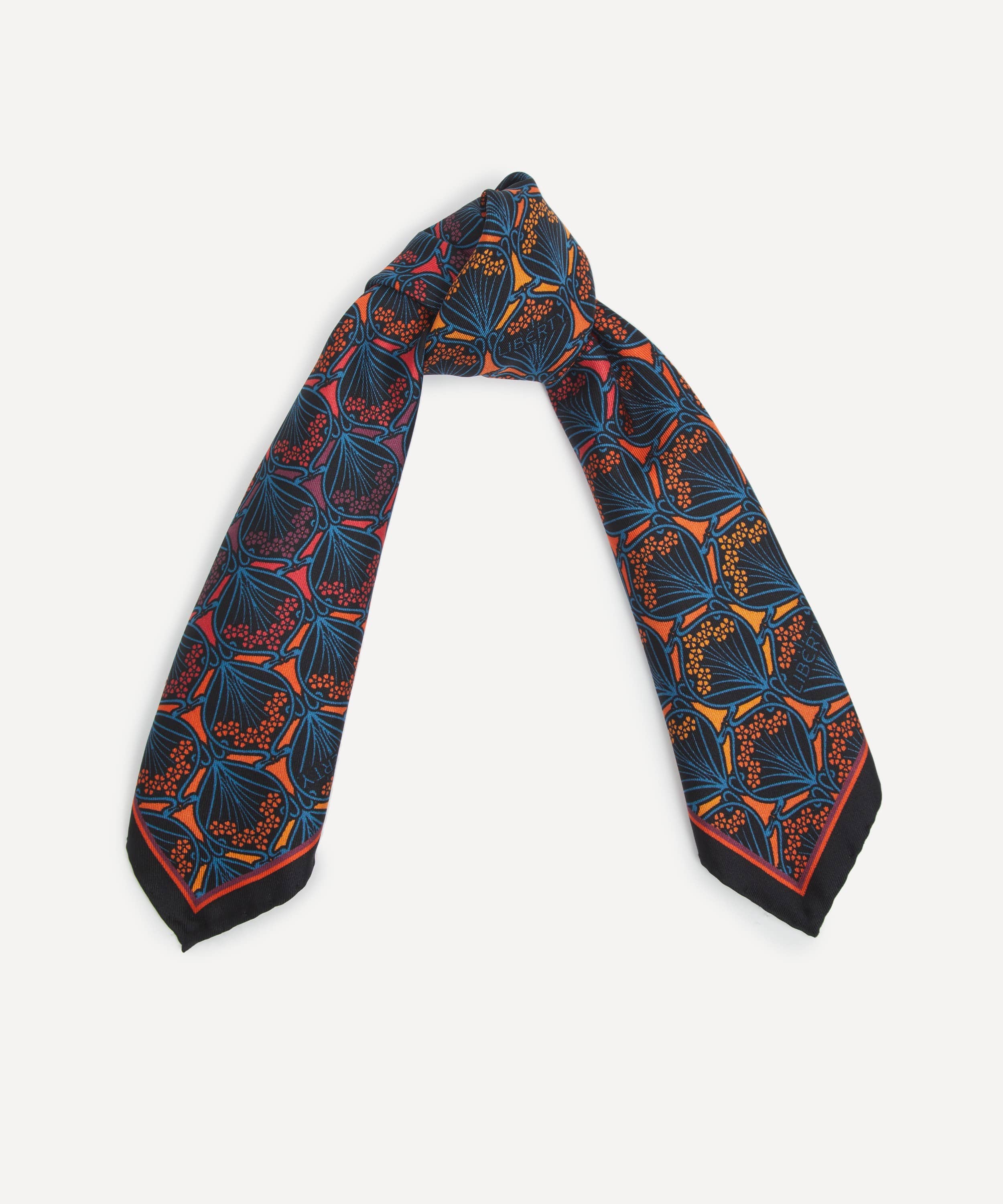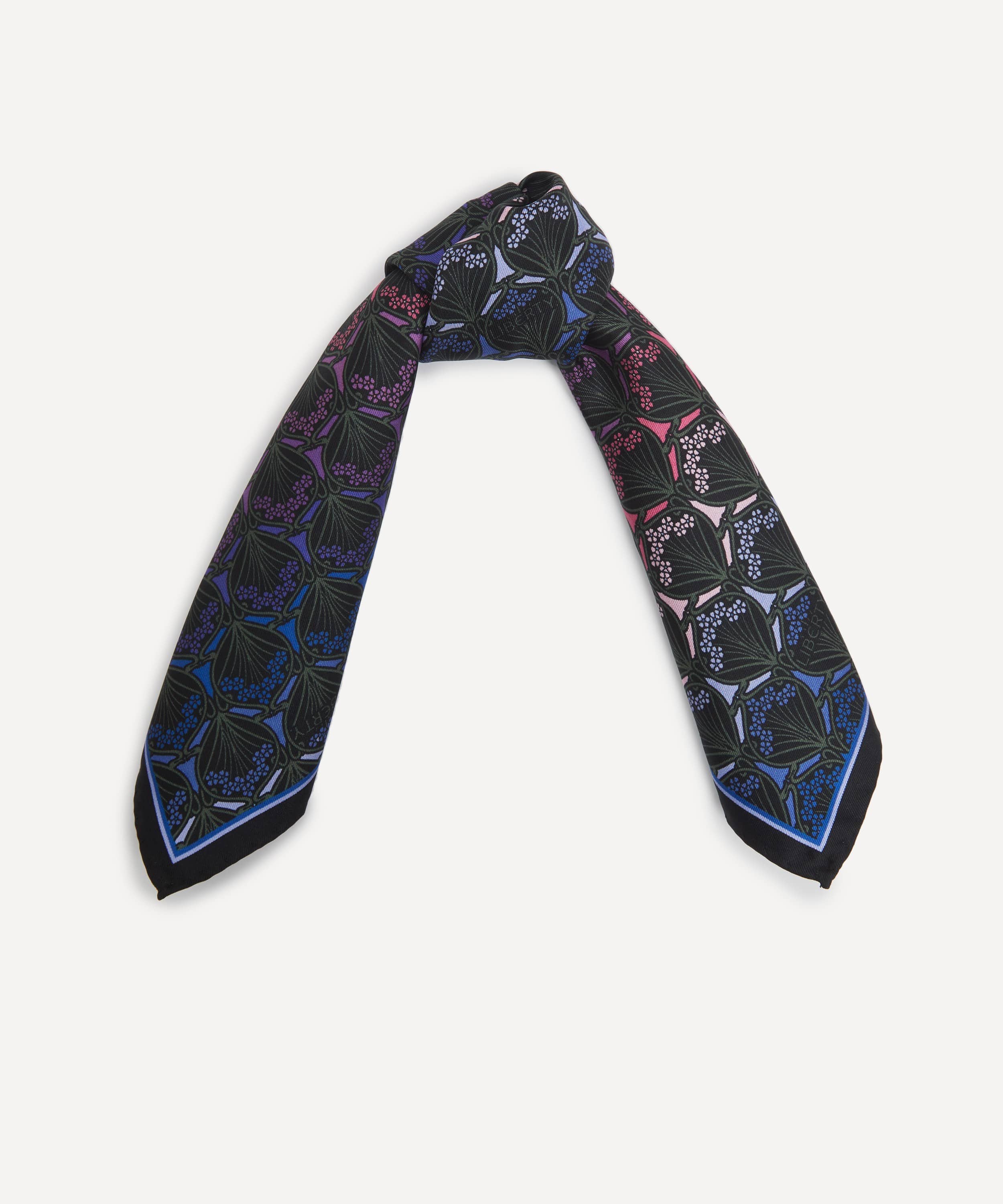 シルクツイルスカーフ / アイフィス プリント / ダスク カラーウェイ / ロール仕上げのエッジ / イタリア・コモにてプリント / コーナーにリバティロゴ / リバティのインハウスデザインスタジオにて設計