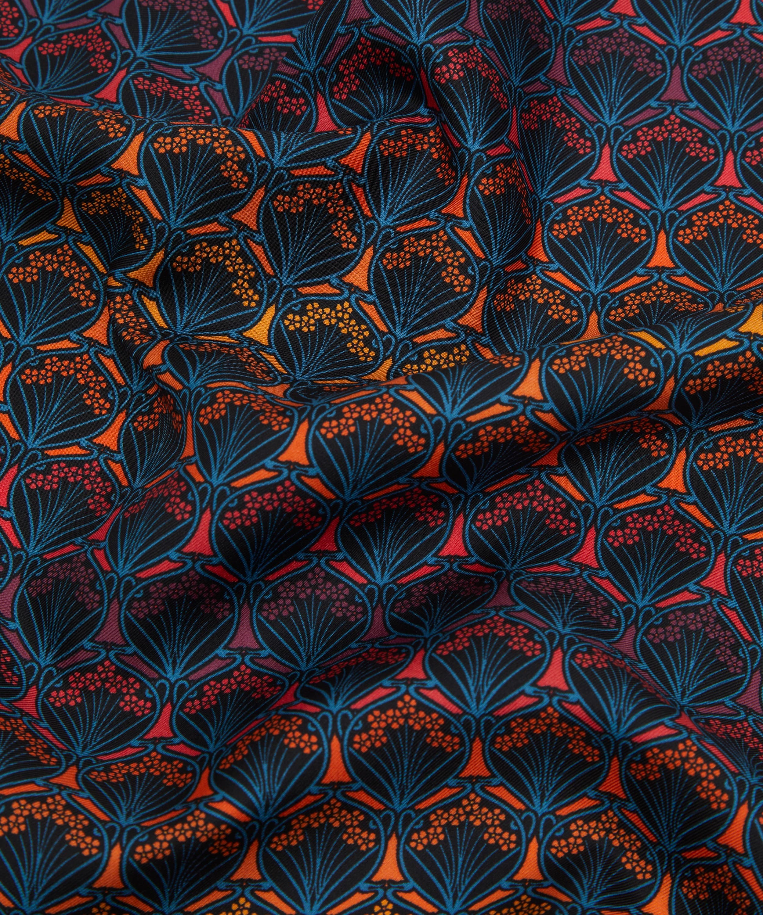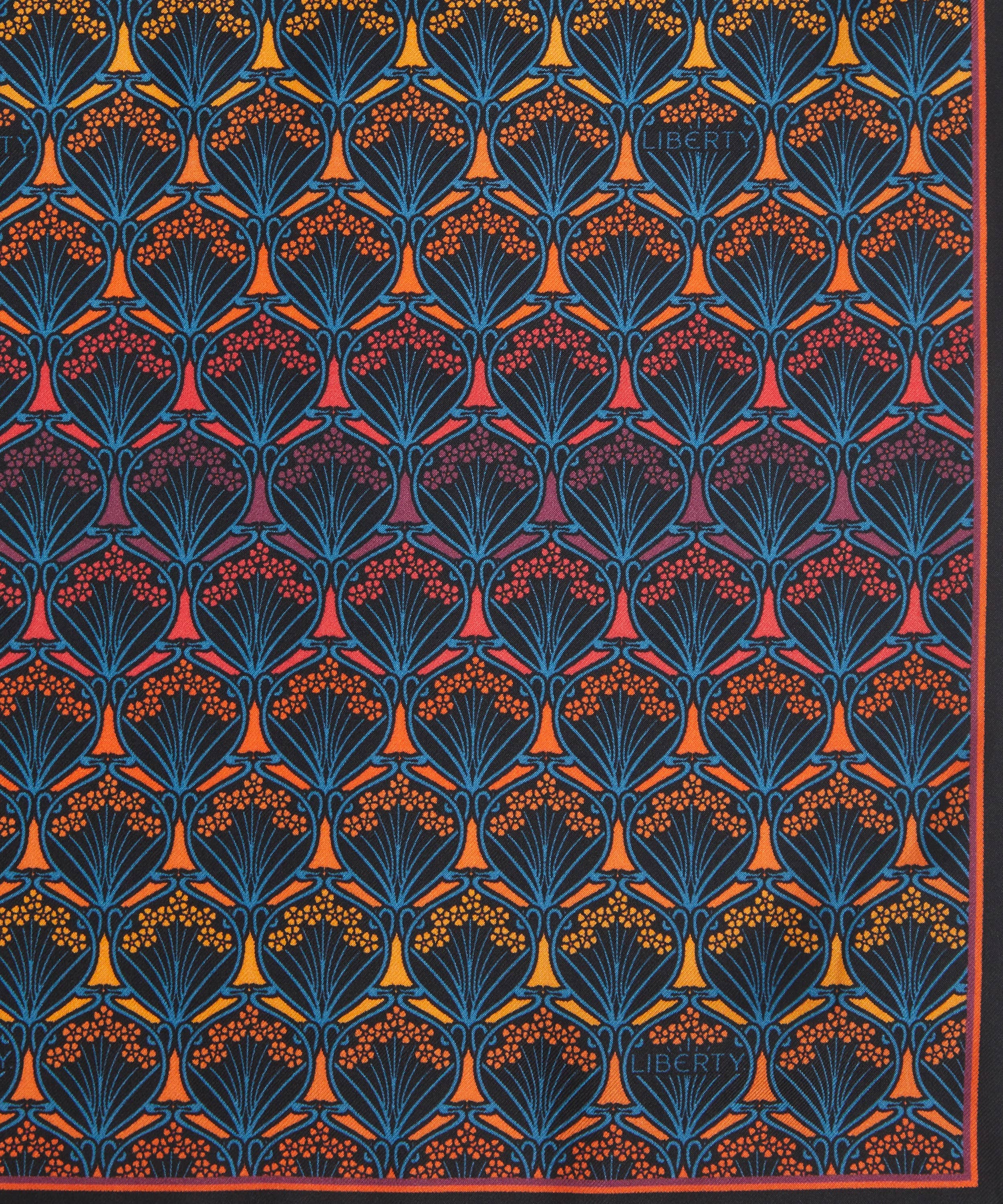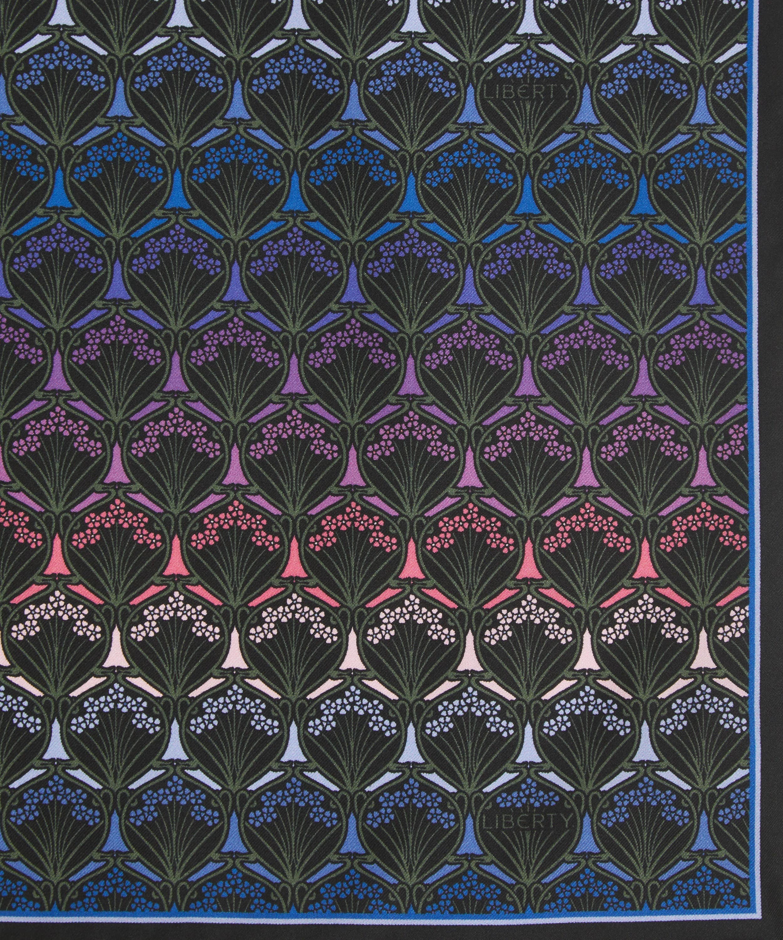 シルクツイルスカーフ / アイフィス プリント / ダスク カラーウェイ / ロール仕上げのエッジ / イタリア・コモにてプリント / コーナーにリバティロゴ / リバティのインハウスデザインスタジオにて設計