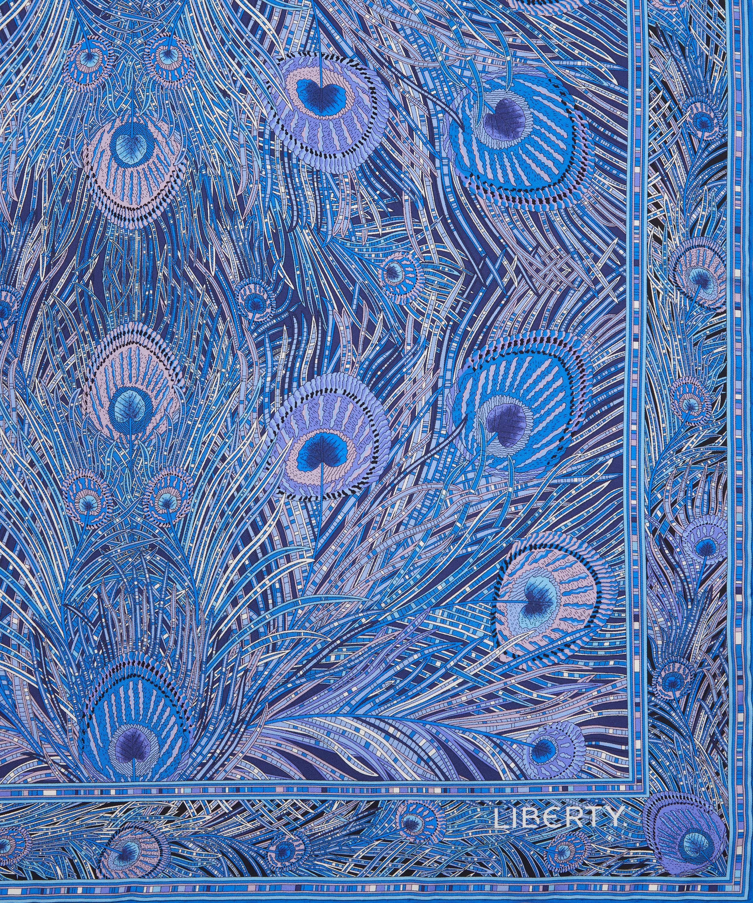 上質でなめらかなシルクツイルに、アイコニックな「ヘラ」プリントを表現。ギリシャ神話の女神ヘラにちなんで名付けられたこのデザインは、神聖な動物である孔雀をモチーフに、1890年代半ばからリバティを象徴するパターンとして受け継がれてきました。
