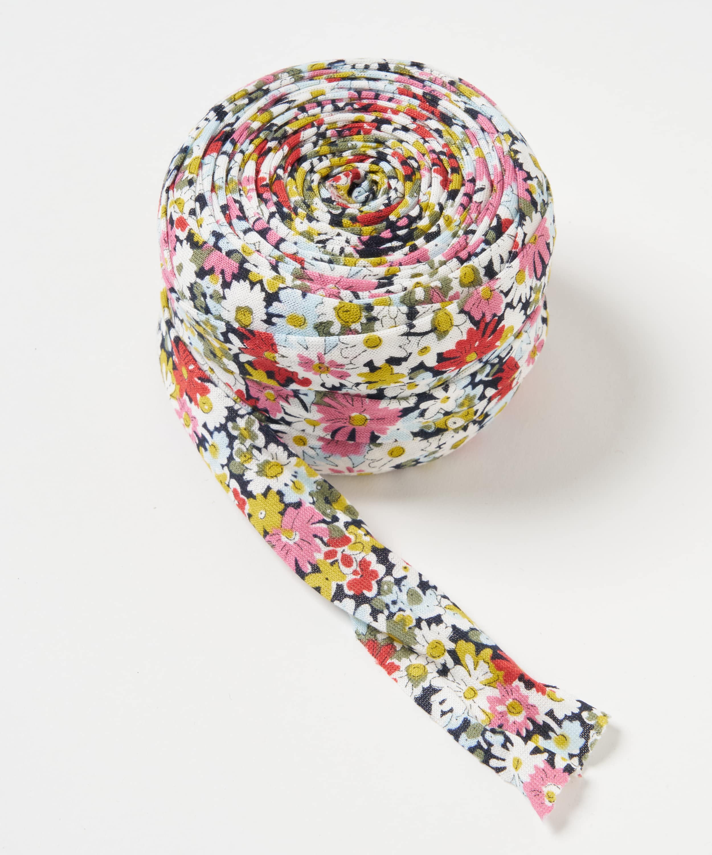 簡略化されたデイジーがびっしりと描かれた「リビー」は、1930年代に手描きされ、リバティのマートンプリント工場で印刷されていたデザインをベースにしています。とても細かい輪郭で描かれた全体にリピートされたパターンは、伝統的なリバティ・スタイルに敬意を表しています。