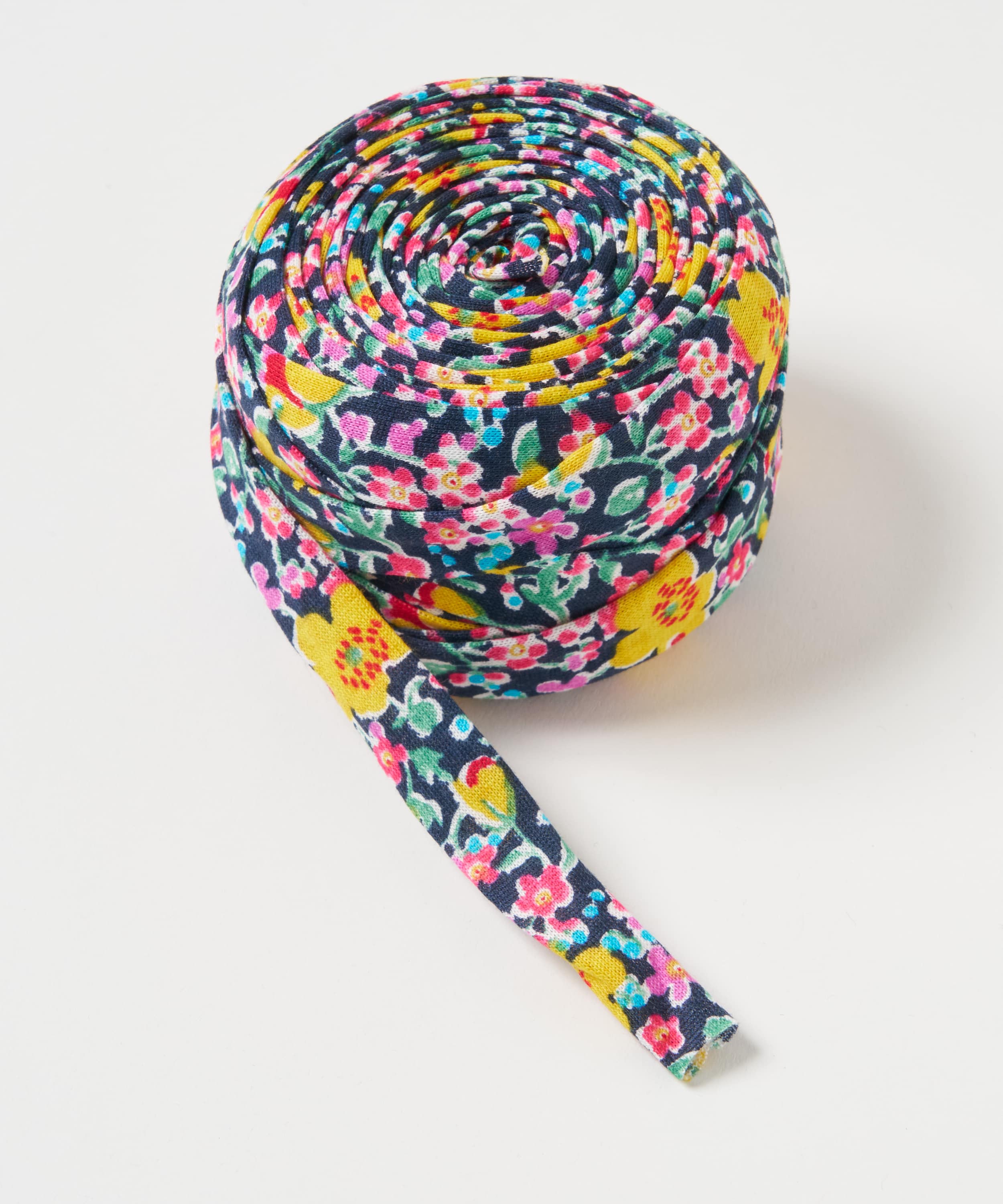 リバティが得意とする金鳳花、勿忘草の花柄をモチーフにした1933年のシルクデザインを基に作られました。