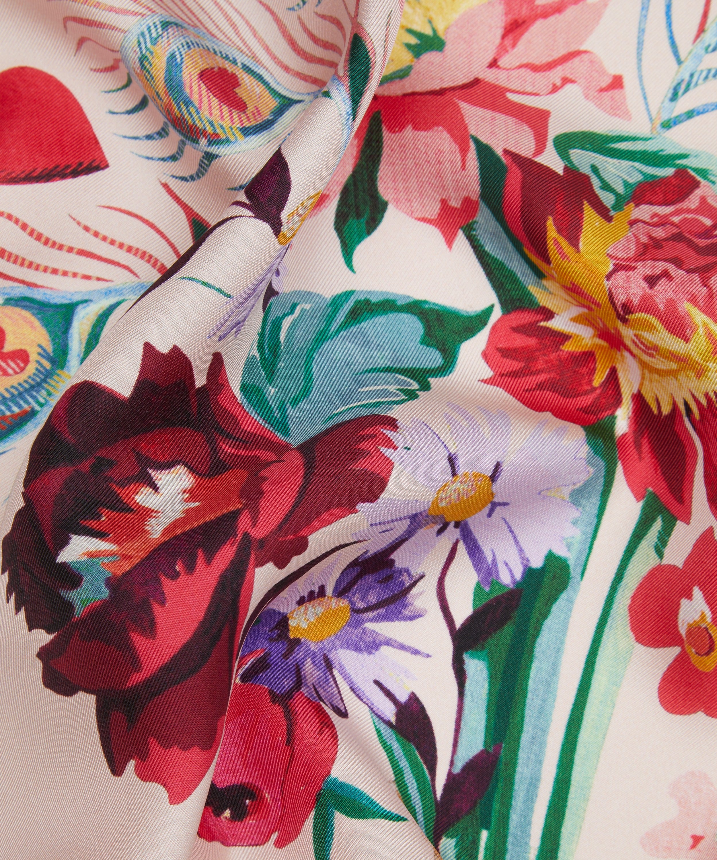 「ピース ラブ アンド リバティ シルクスカーフ」は、リバティのクラフツマンシップと豊かなデザインの伝統を体現する一枚です。