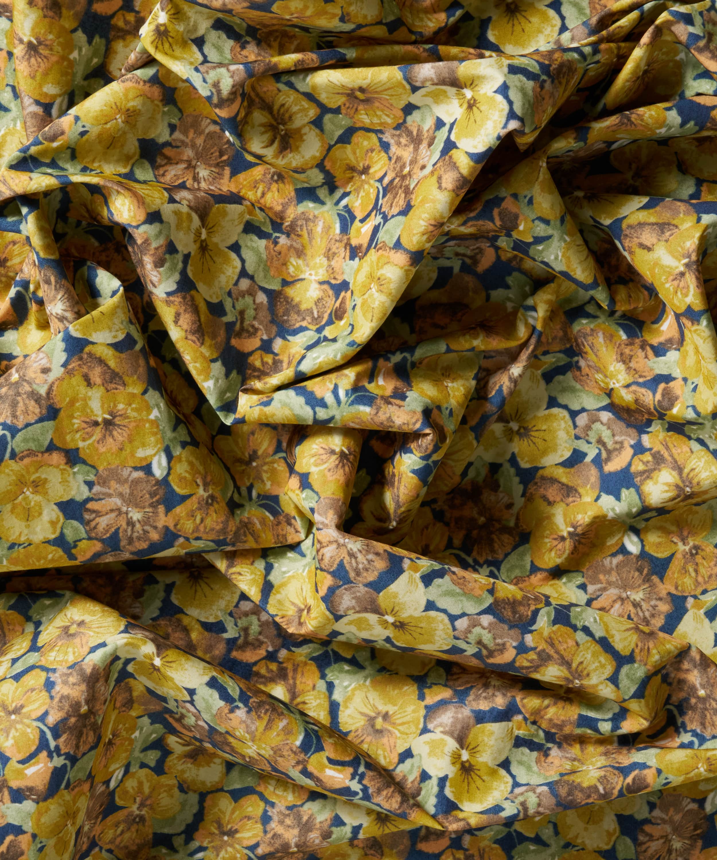 2009年秋冬コレクションの柄で、多彩な色彩を持つパンジーが咲き誇る様子が描かれたデザインです。秋に咲くパンジーをモチーフに、落ち着いた配色で上品なデザインに仕上がりました。