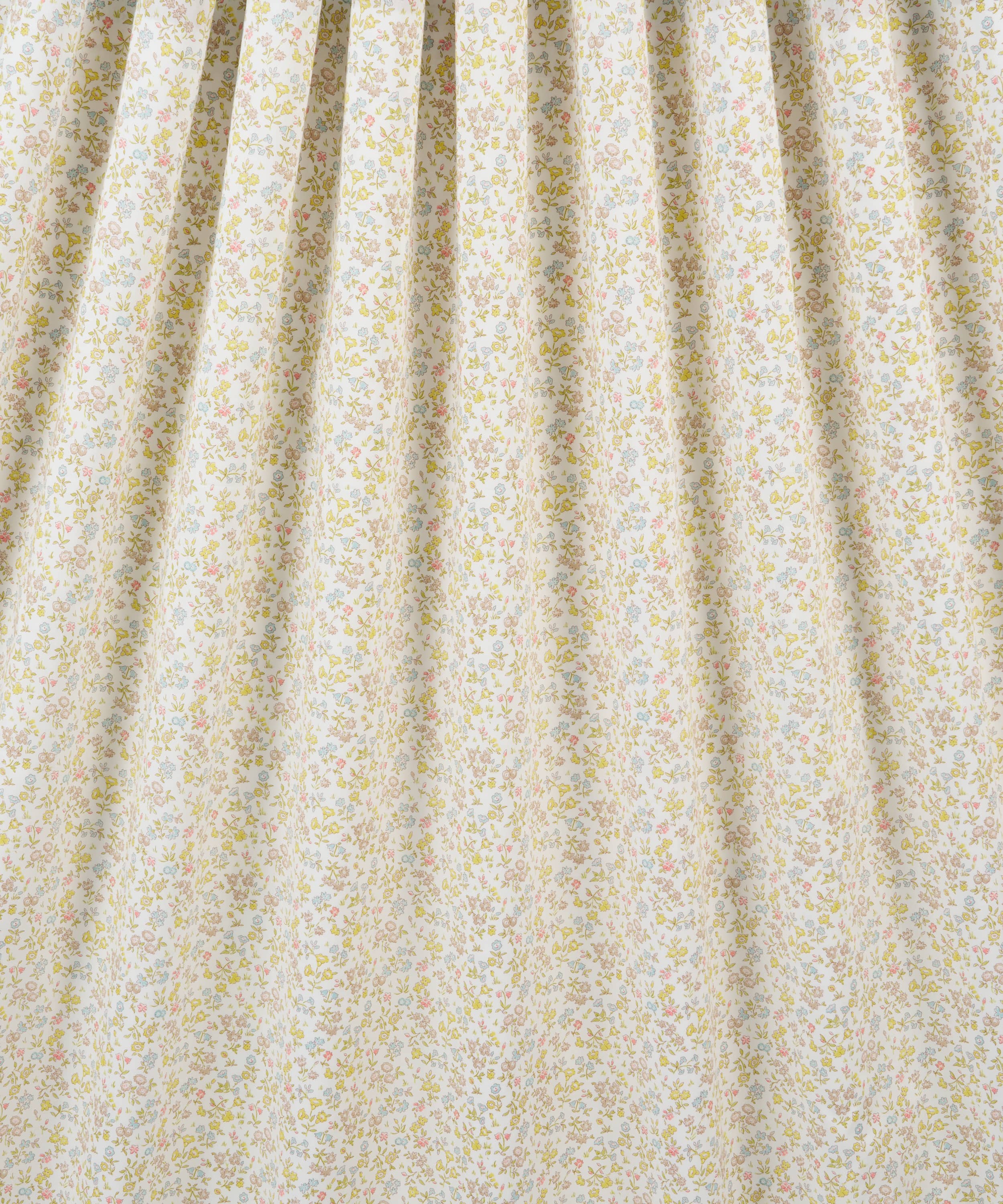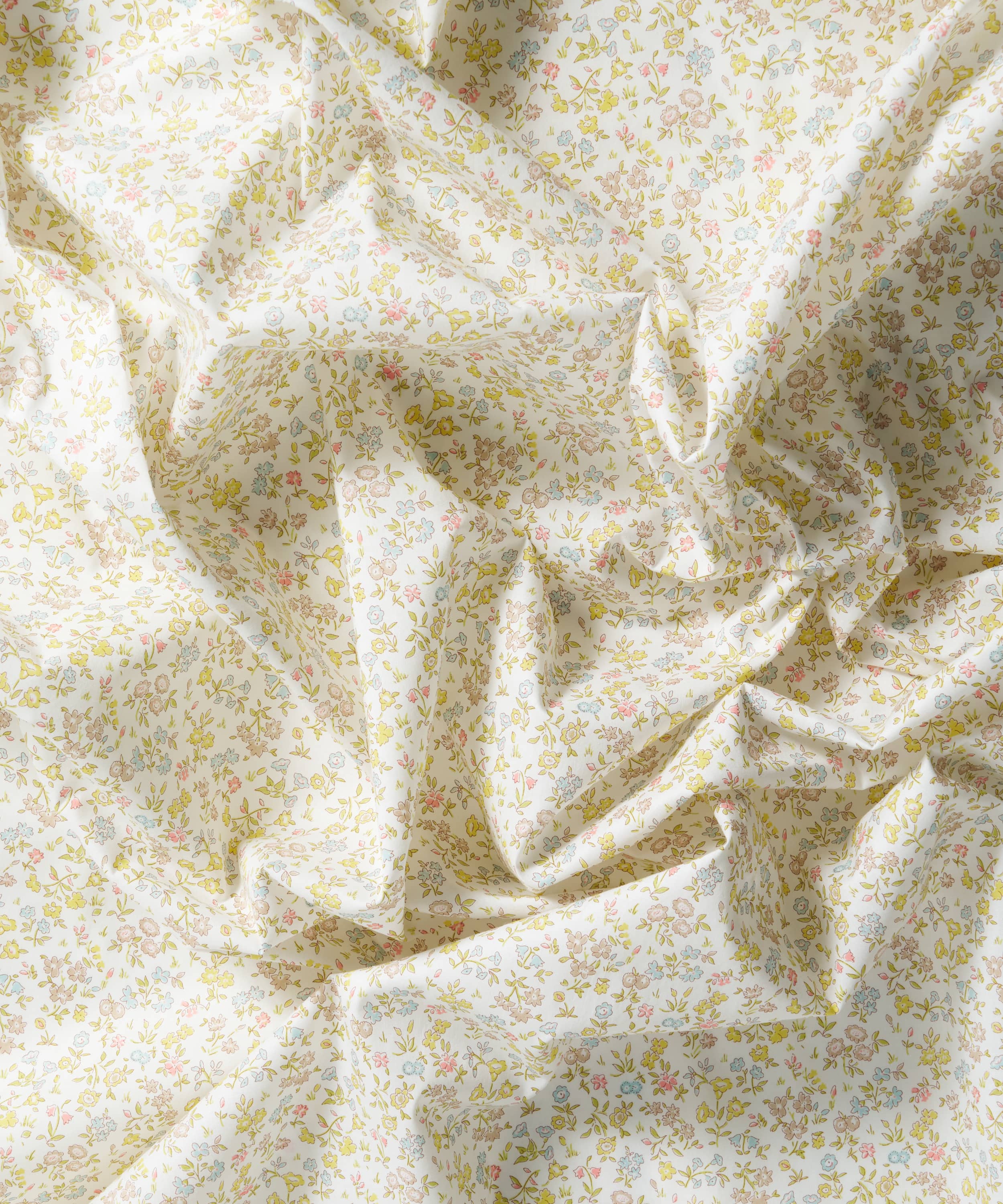 1936年に遡るリバティのアーカイブブックの中で見出された「メドゥ・スウィート」は、ブランドの本質ともいえるスタイルを体現した、魅力あふれるフローラルプリントです。春の小さな花々が一面に散りばめられ、デイジーやブルーベル、ほころび始めた蕾が、繊細な草の房に寄り添うように描かれています。どこか懐かしさを感じさせる情景が、穏やかで詩的なタペストリーのように広がります。