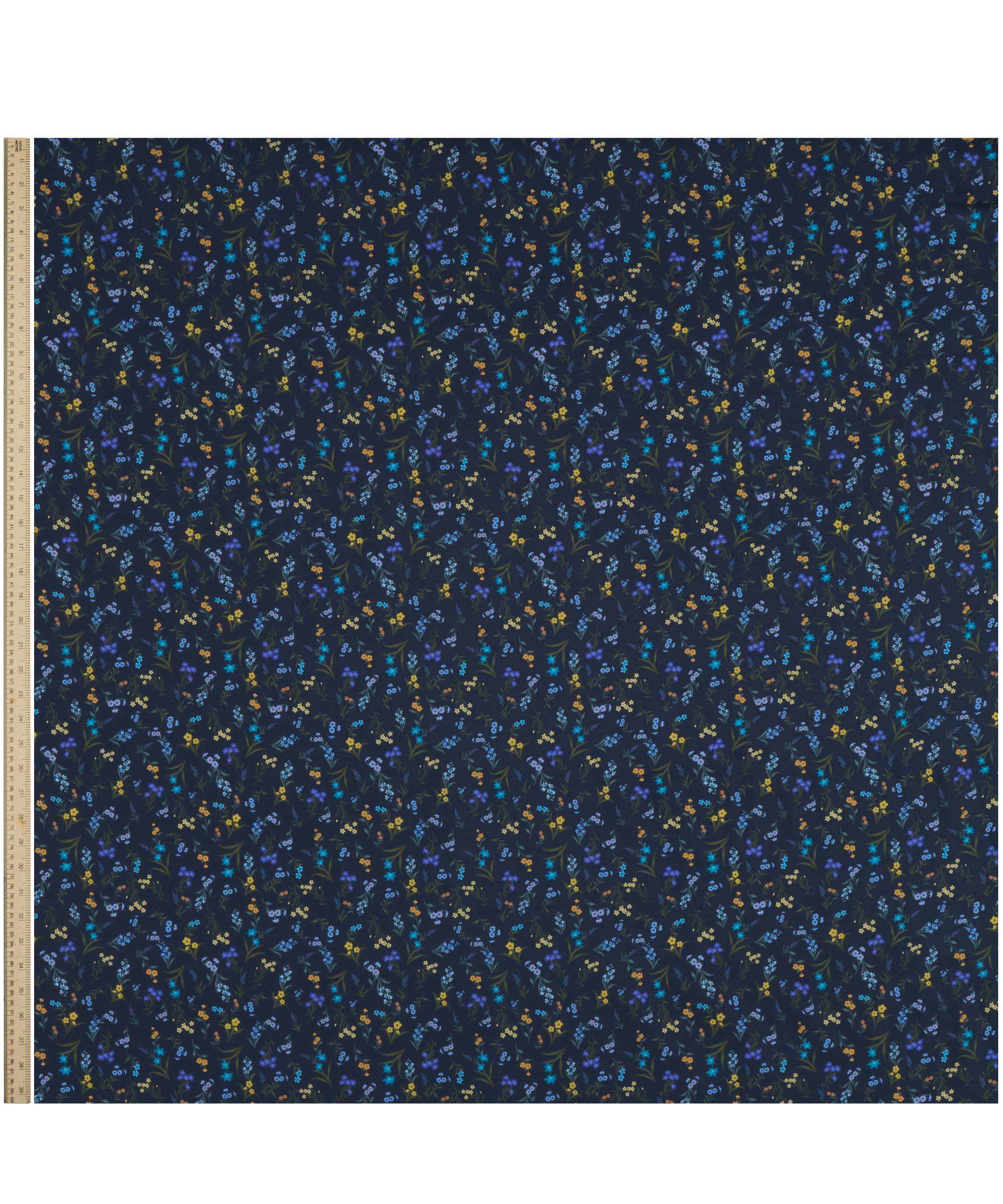 水彩絵の具で描かれた小さな花々を、繊細に配置した多方向のボタニカルなデザインです。イトシャジン、亜麻、ハナタネツケバナ、マンテマ、ツルニチニチソウ、ハコベ、クレイトニア・シビリカなどが描かれています。