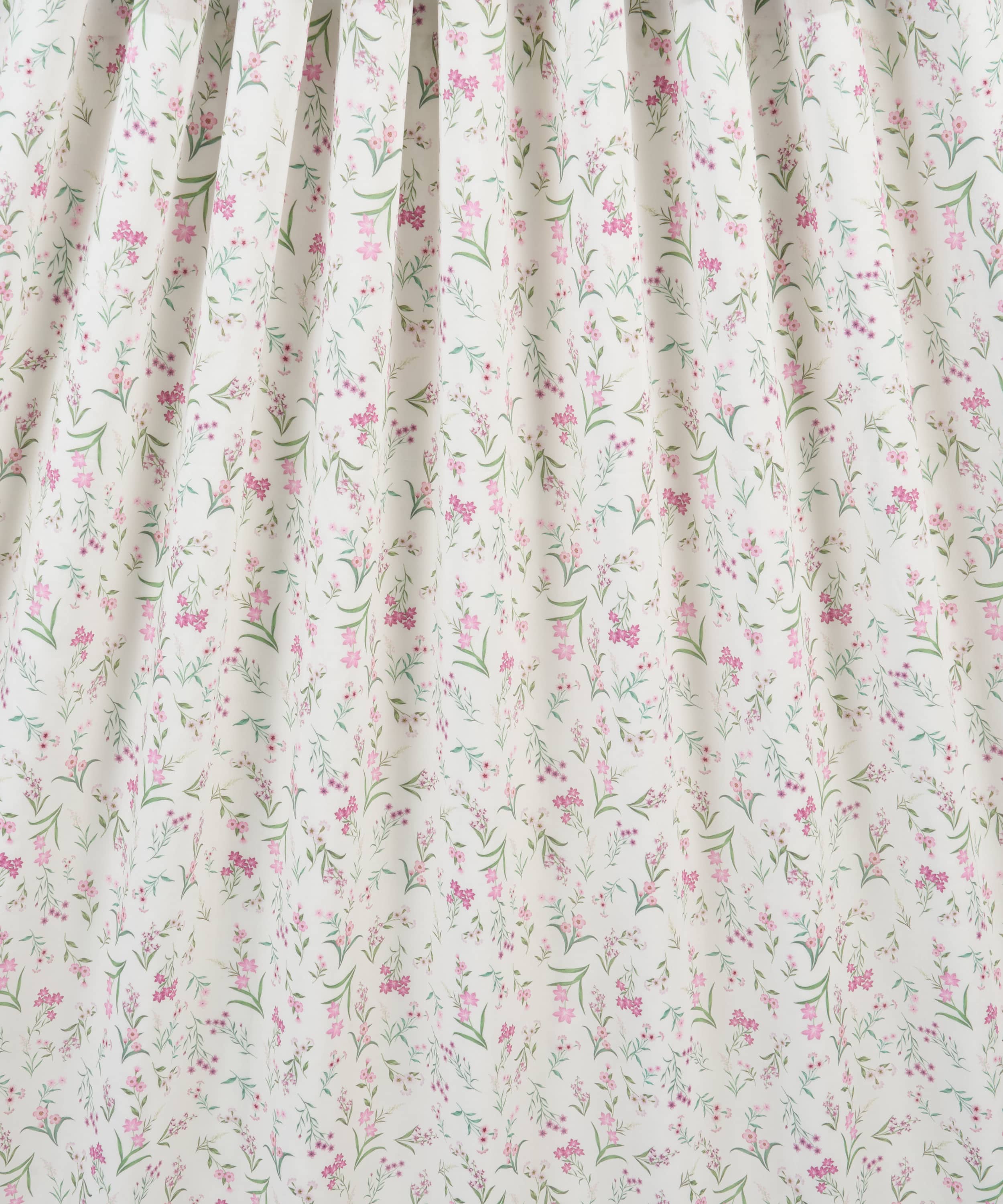 水彩絵の具で描かれた小さな花々を、繊細に配置した多方向のボタニカルなデザインです。イトシャジン、亜麻、ハナタネツケバナ、マンテマ、ツルニチニチソウ、ハコベ、クレイトニア・シビリカなどが描かれています。