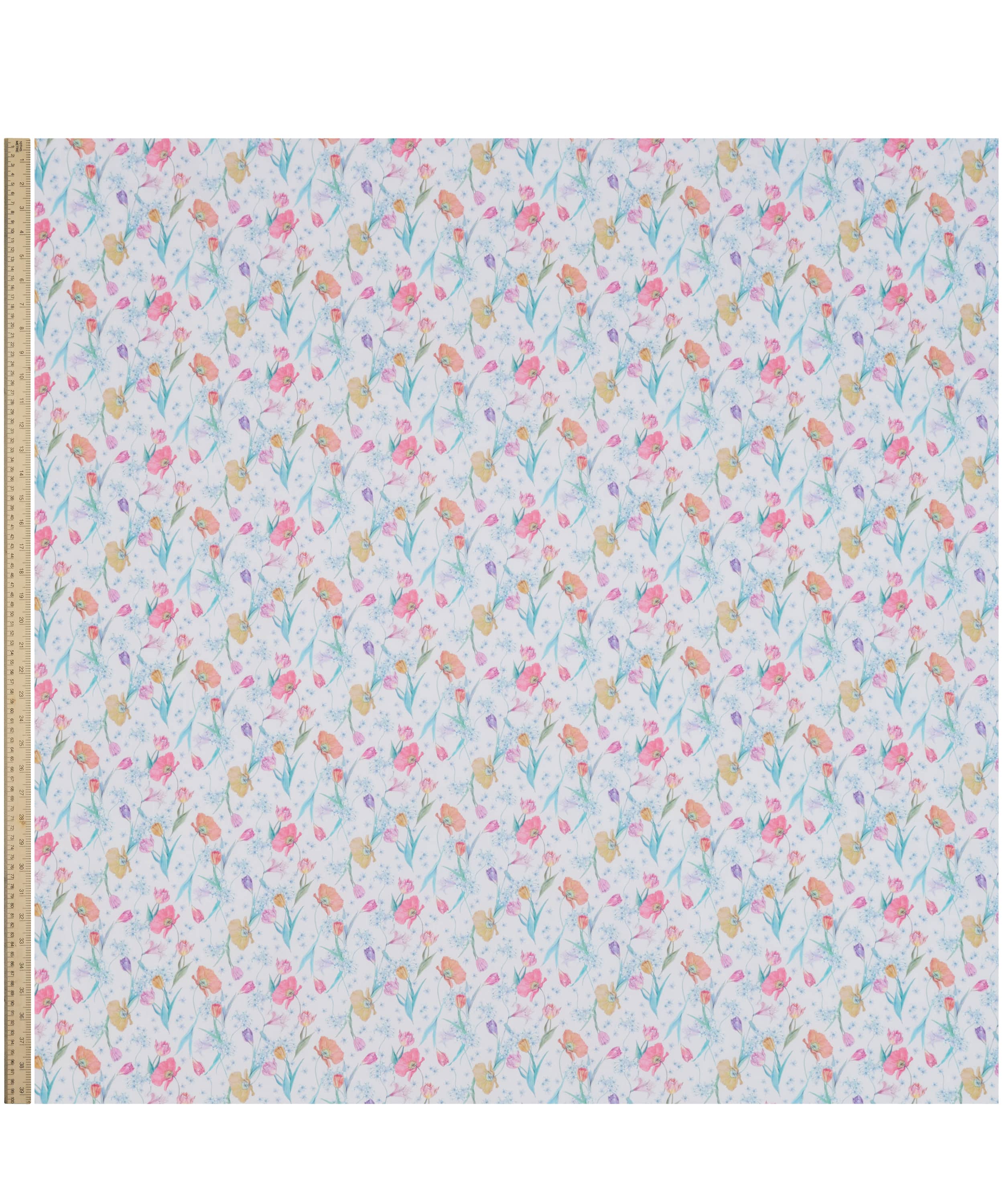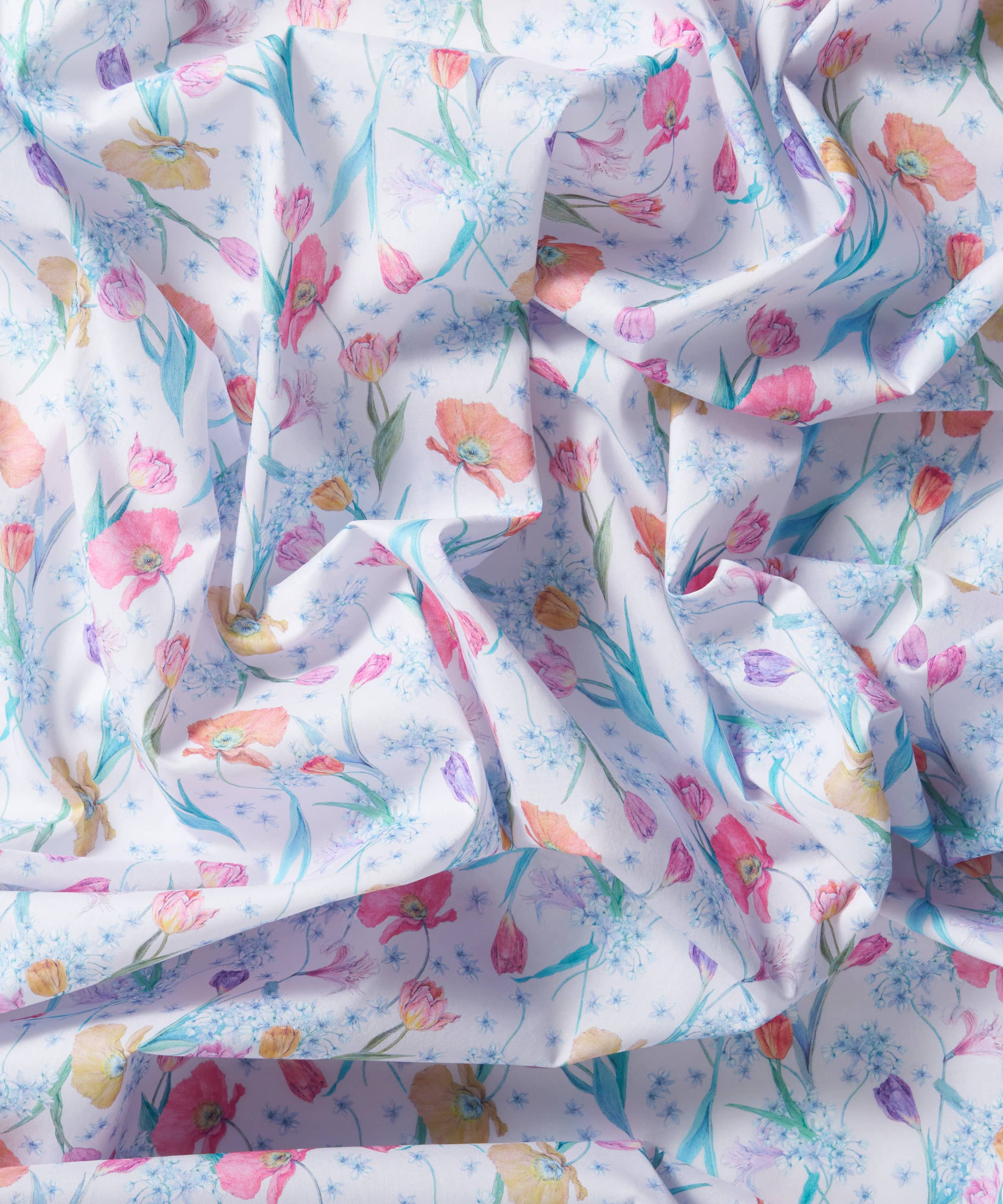 水彩絵の具と鉛筆を使って花々をリアルに細部まで描き込んだデザインです。ポピー、チューリップ、オニユリ、野ニラなどの花々が、春の到来を告げ、祝福しています。