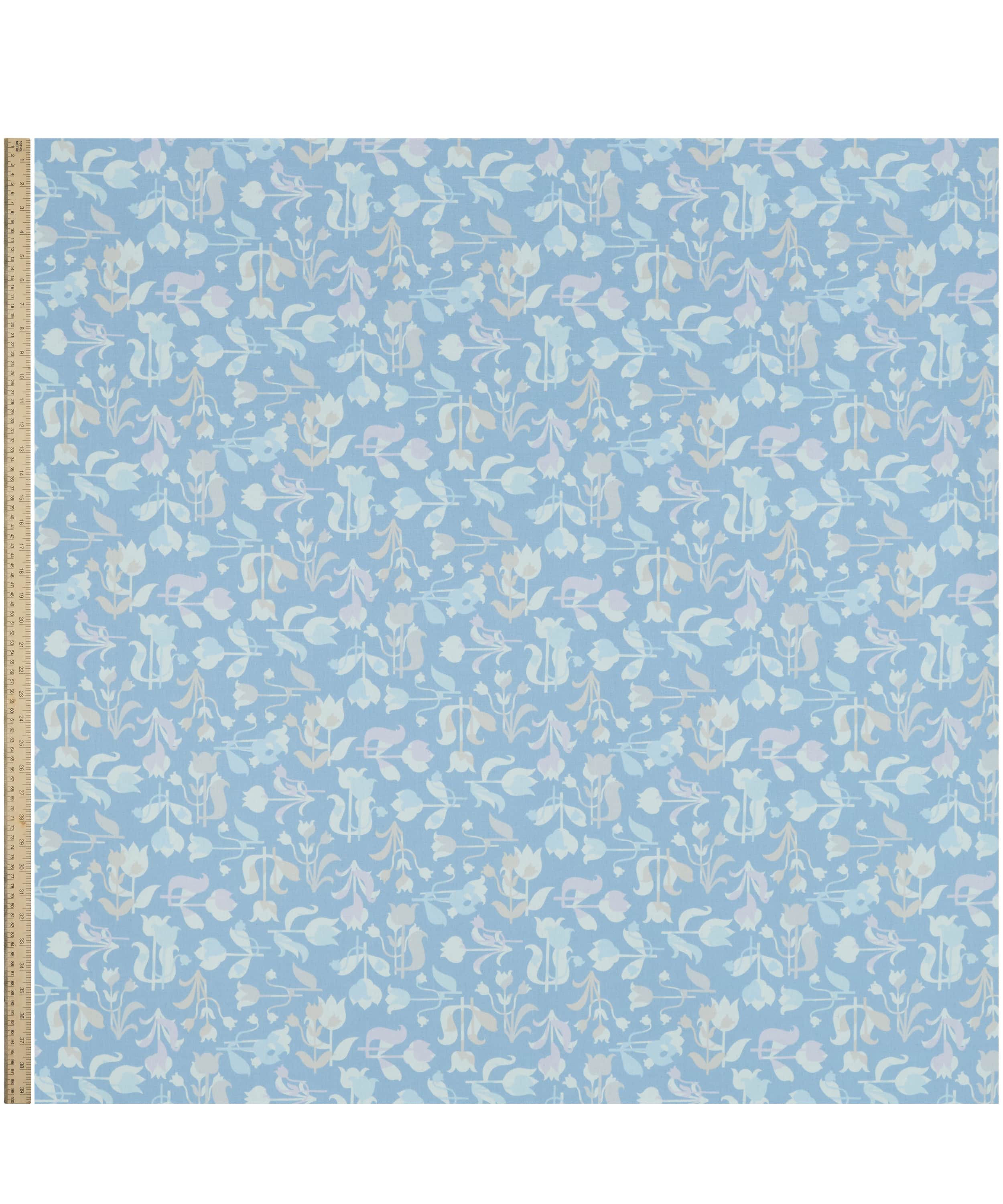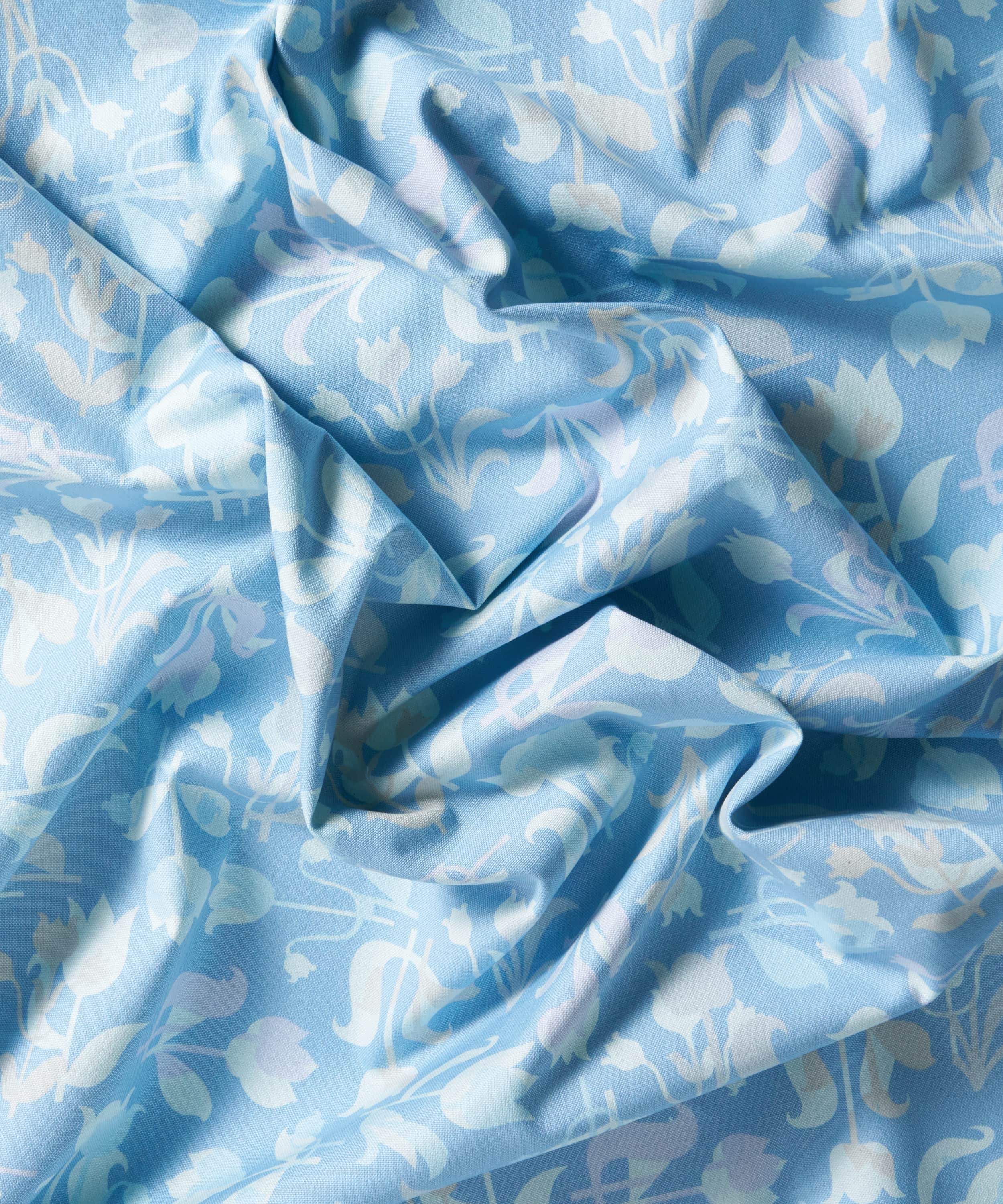 新旧の交差点に位置する「フローラル・フリーズ」は、1900年代初頭にリバティが販売していたアーツ&クラフツの家具に敬意を表しています。伝統的な木工技法である寄木細工をインスピレーションに、デザインスタジオは象嵌細工の洗練されたモチーフと呼応させながら、この大胆で大きな花柄を作り上げました。カットされたチューリップとコラージュされたチューリップの形のシルエットが交差し、平面なのに立体感のある不思議な錯覚をもたらします。