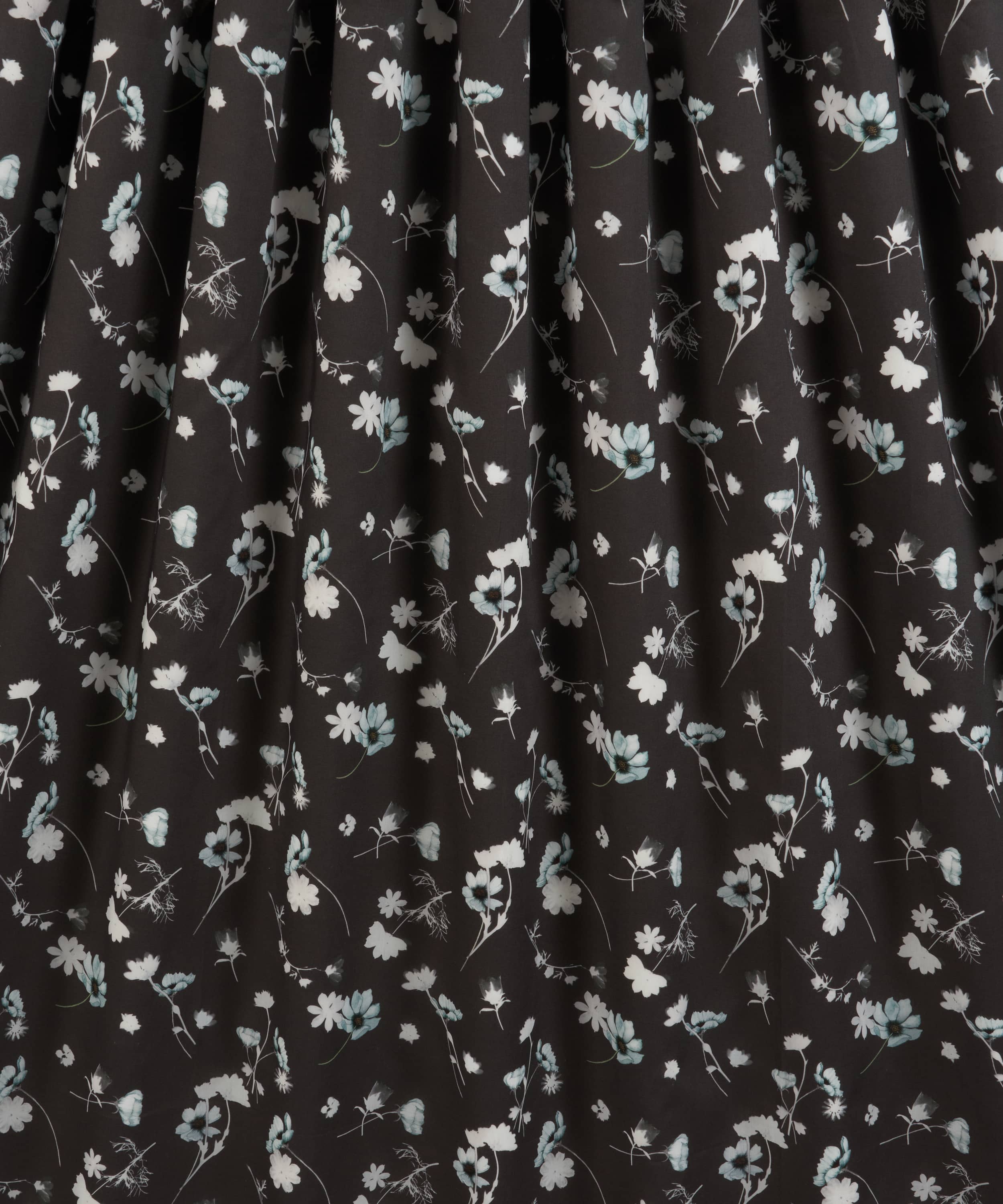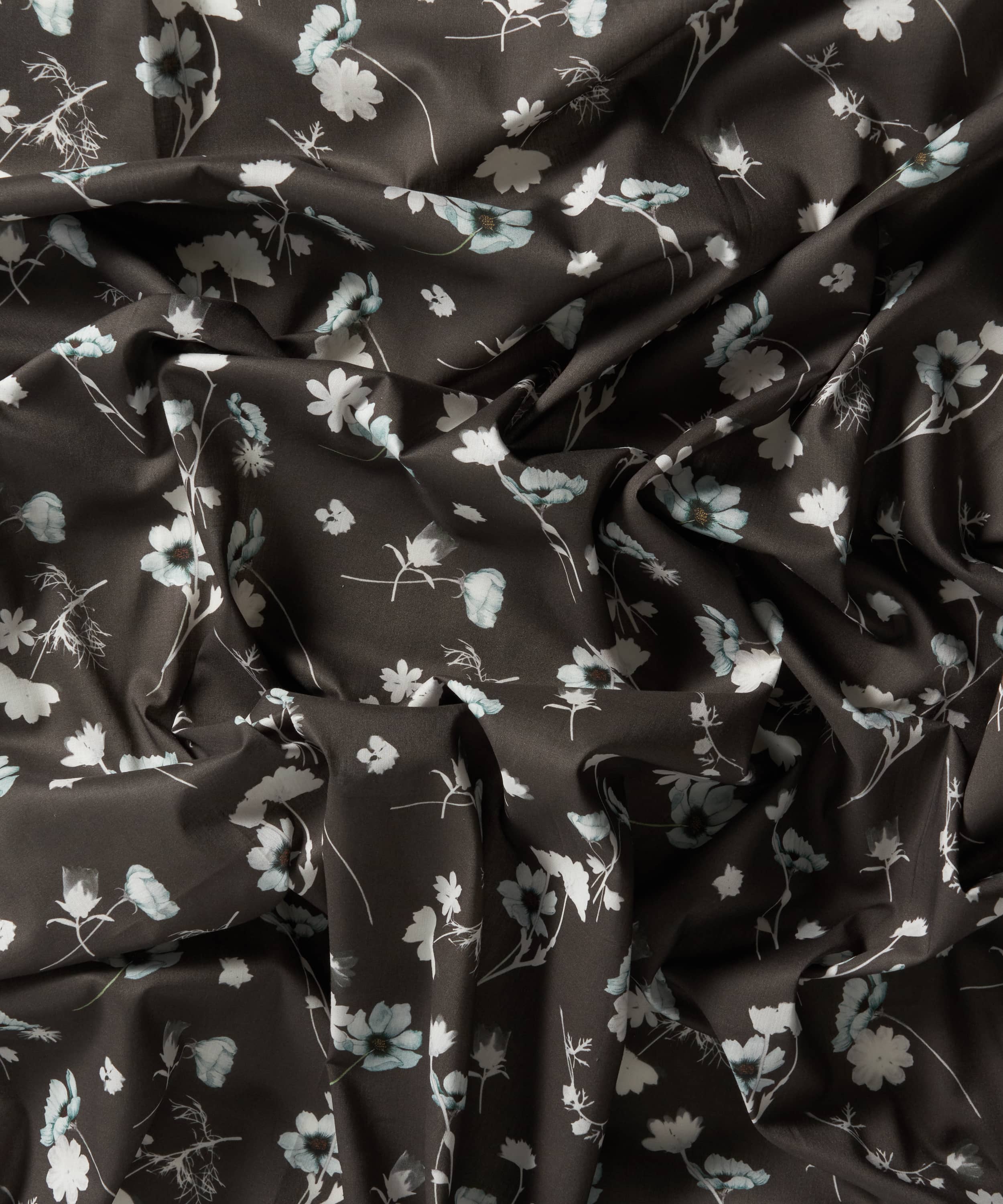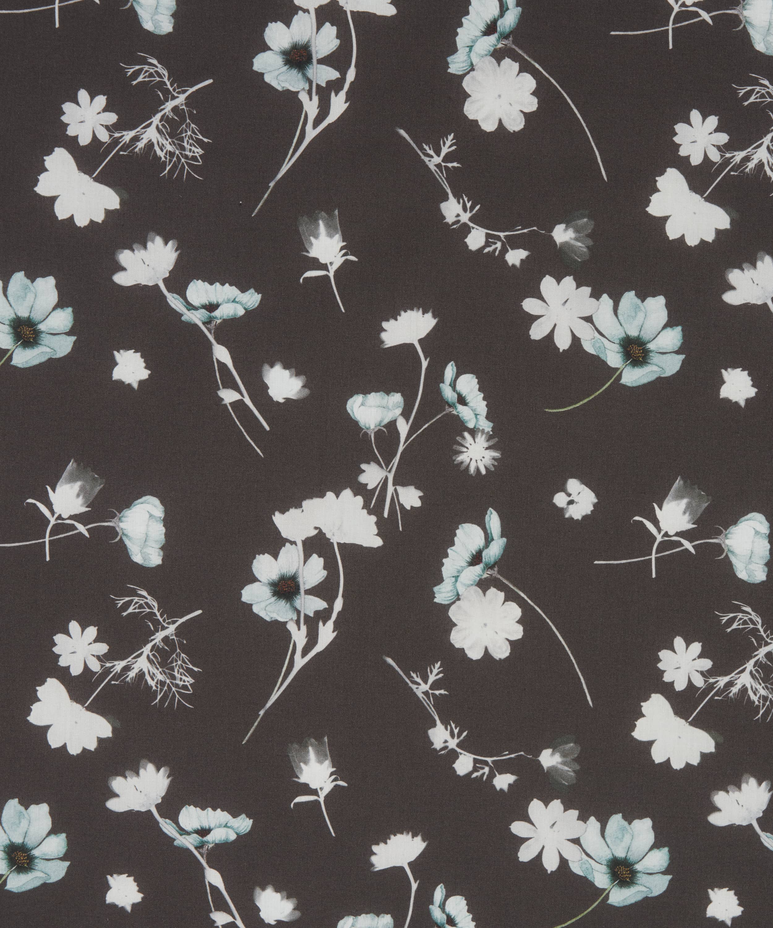 夏の日差しの温もりが感じられる「ノクターン」は、リバティのアーカイブに眠る1950年代のシルエットフラワーから着想を得たデザインです。シアノタイプ(青写真)技法を用い、30種類以上の実験的プリントから厳選した美しいモチーフが描かれています。透き通るようなブルーベル、ガーベラ、イングリッシュ・ワイルドフラワーが、ゆるやかに散りばめられた配置で布地の上を舞い、手描きの花々がさらに深みを添えています。