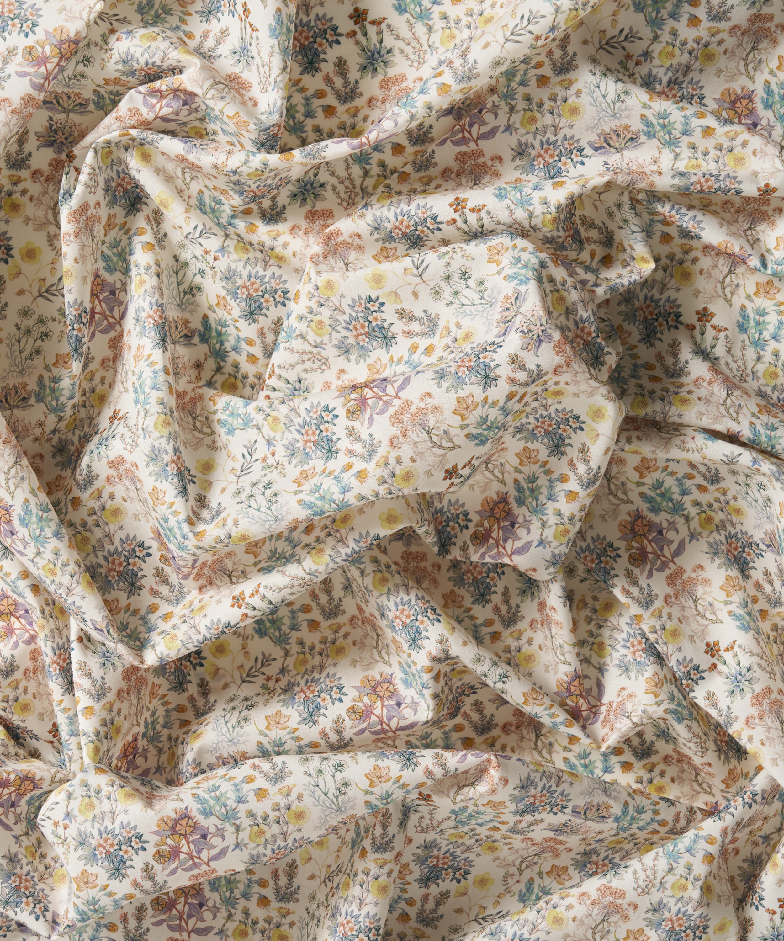 ケニルワース城の魅惑的な庭園に着想を得た、緻密なボタニカルデザインです。1959年から1963年にかけて制作された、リバティのアーカイブに所蔵される植物画のシリーズをもとにしています。プリムラやアネモネ、ユキノシタ、リンドウ、シンクフォイル、フロックス、ナデシコといった多彩な草花が、植物学的な正確さをもって精緻に描かれ、それぞれの植物が持つ構造や個性を際立たせています。