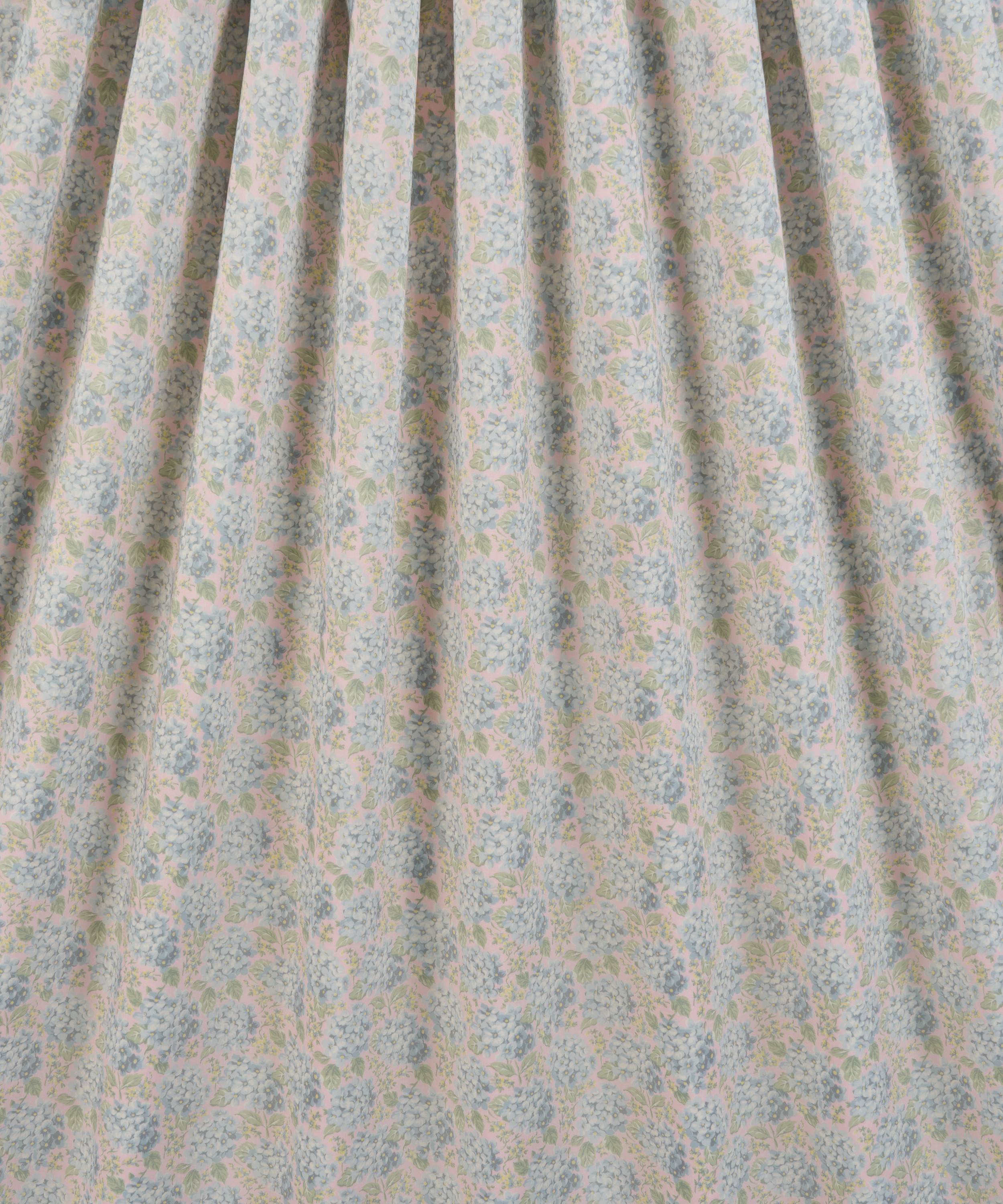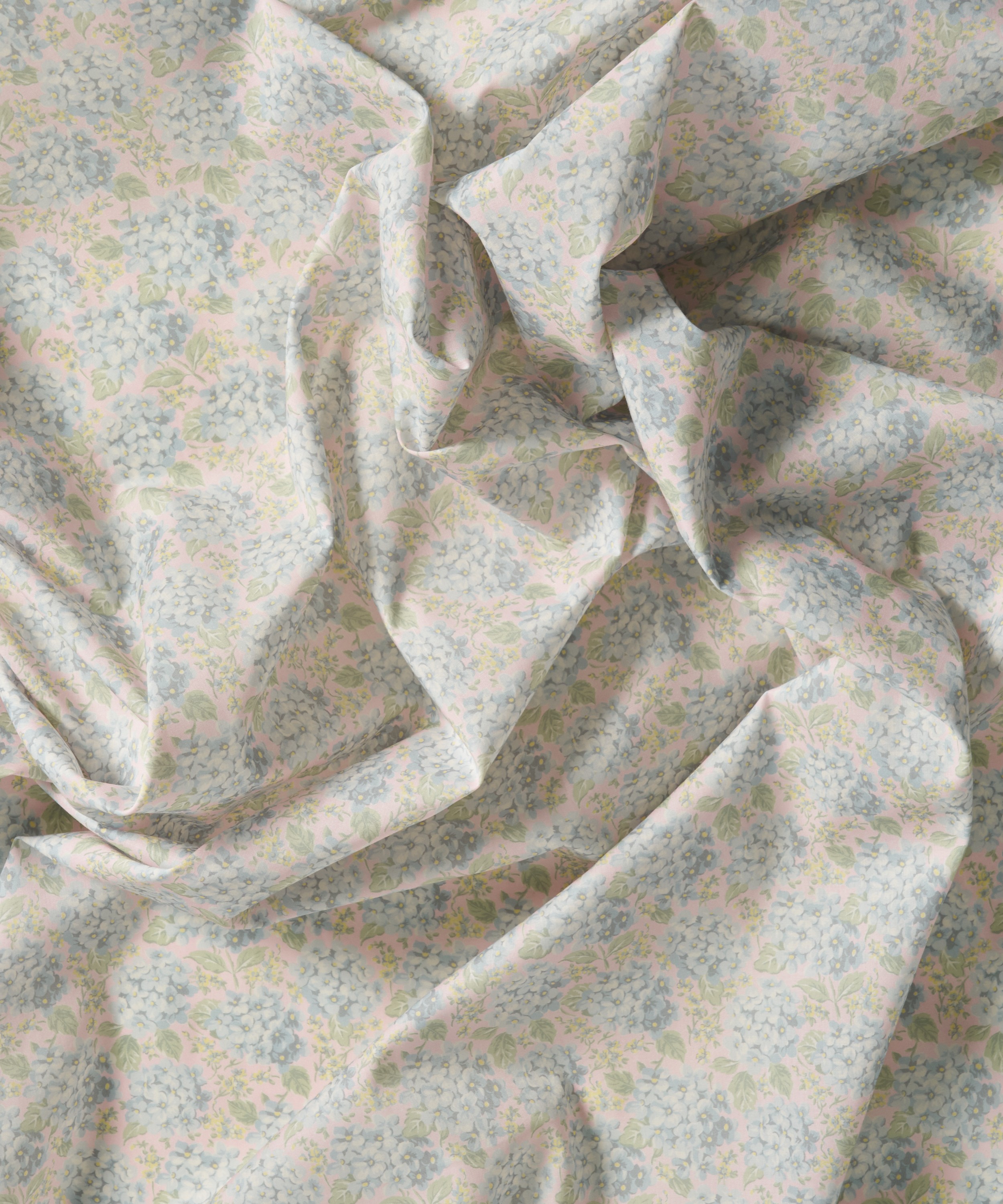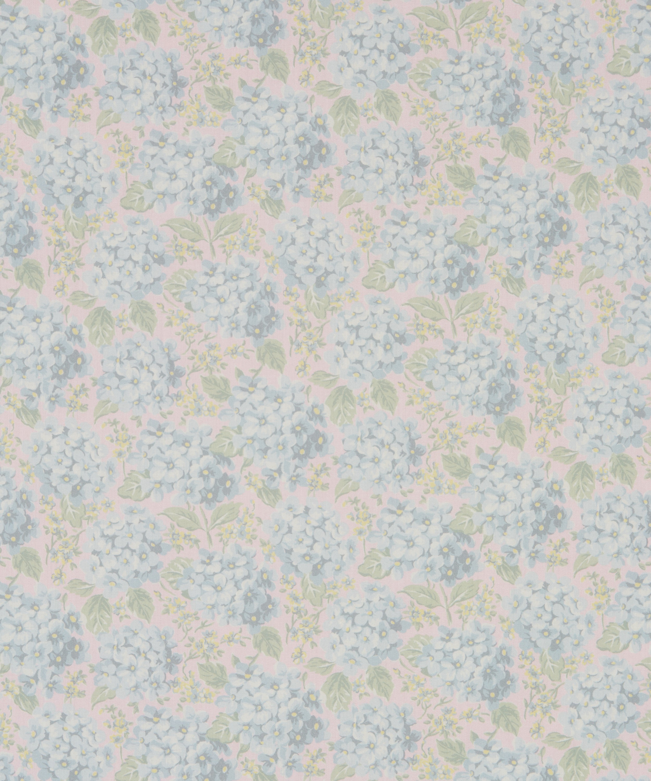 1990年にリバティのために手描きされたアートワークをもとにした、ロマンティックなボタニカルデザインです。アジサイの花房が一面に咲き広がる、豊かで広がりのある構成で、やわらかな色調の変化と陰影が、繊細な花びらに奥行きをもたらしています。