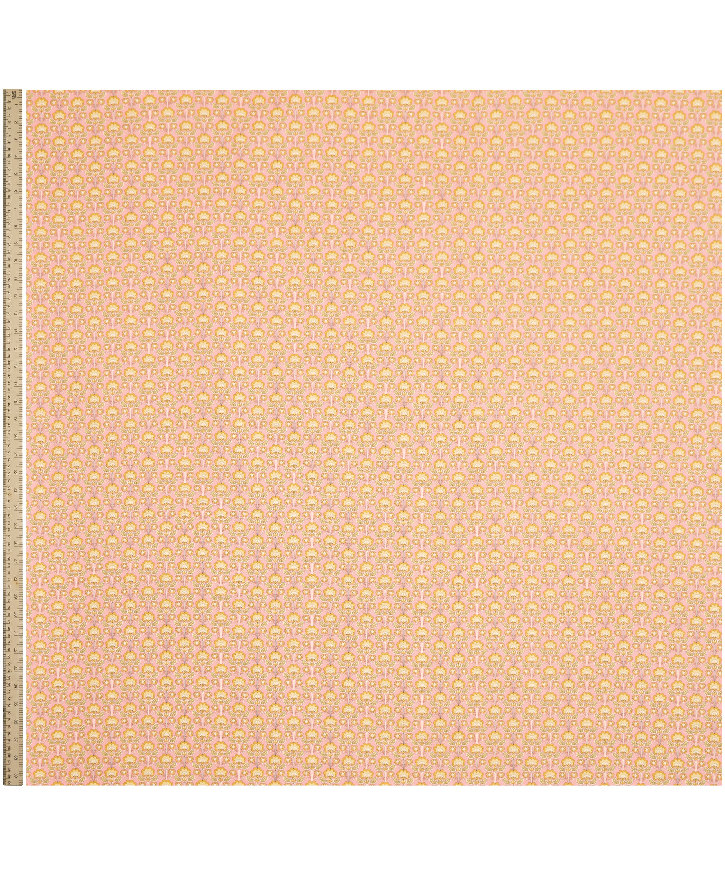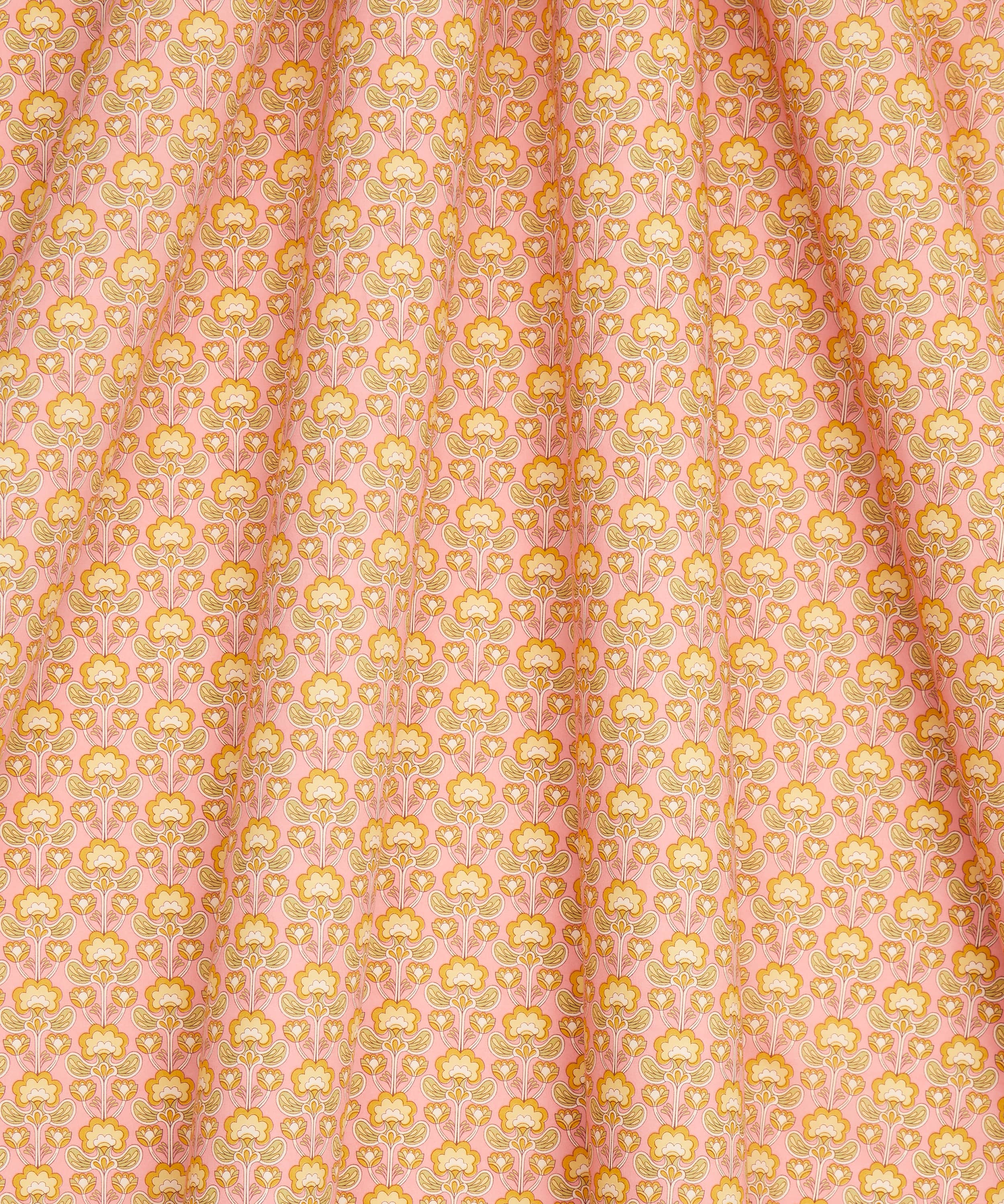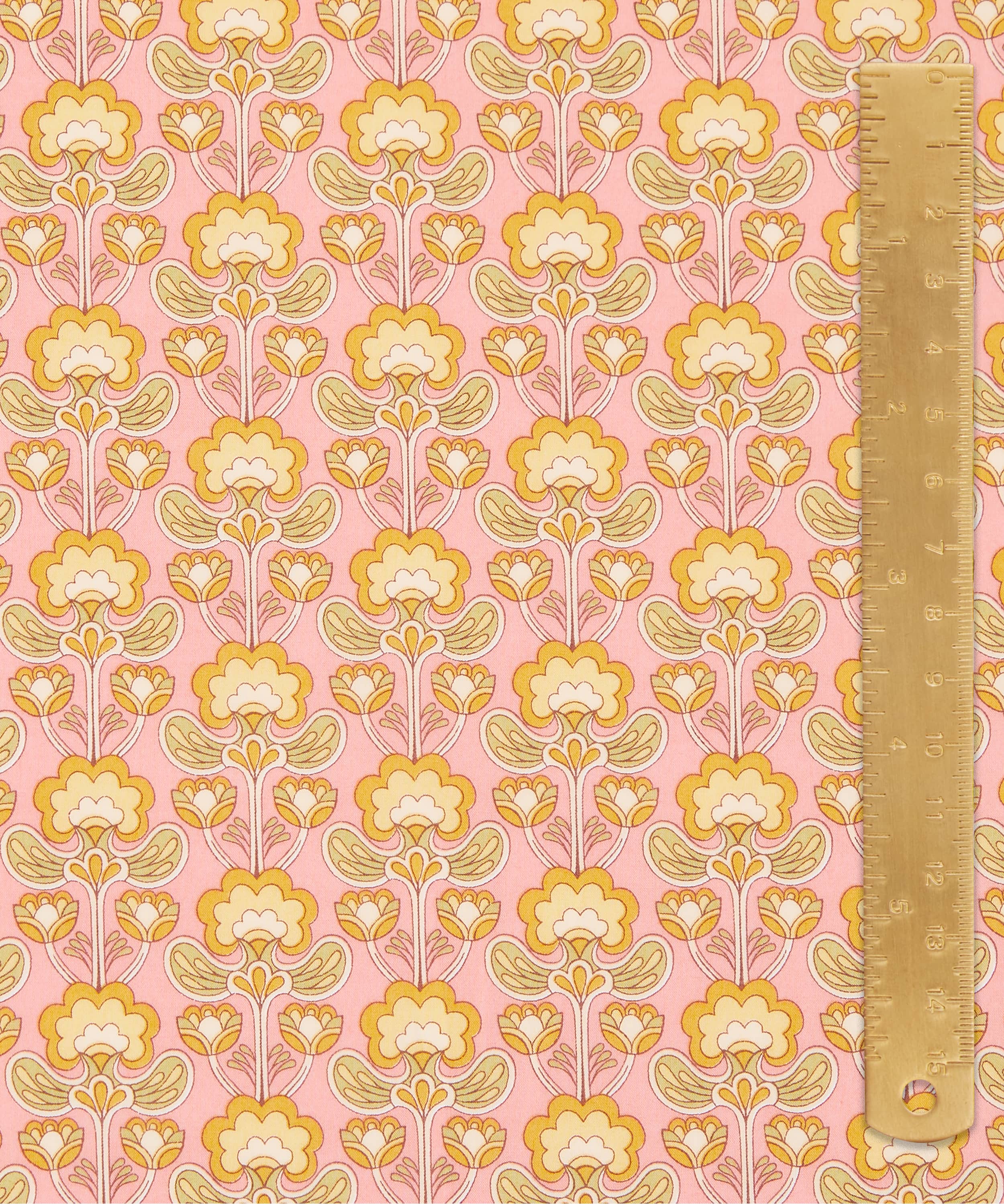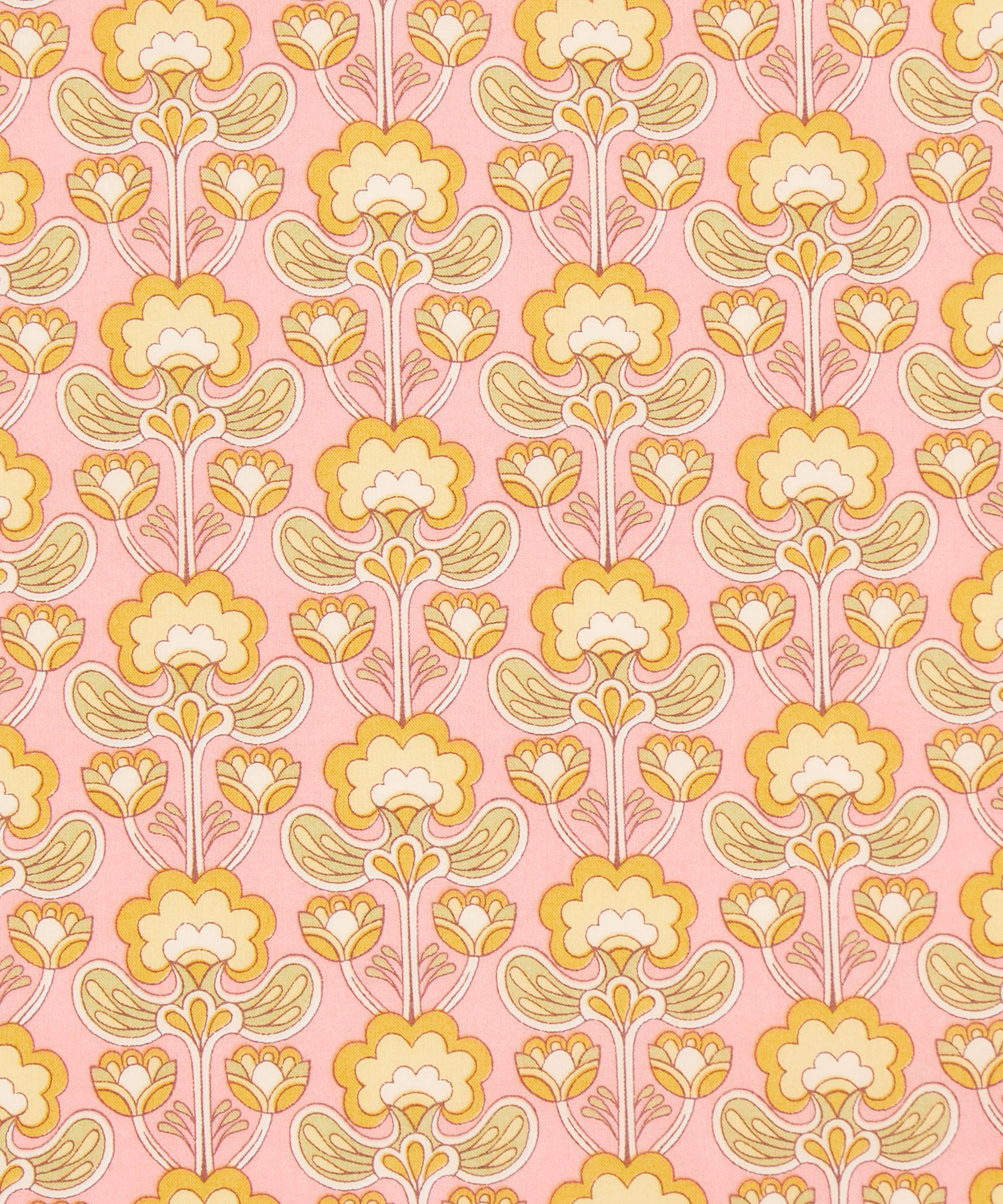 1960年代の華やかな「ピーコック革命」のファッションを彷彿とさせるデザインです。この小さなスケールのボヘミアン風花柄は、伝統的な仕立てからより表現豊かで実験的なスタイルへの転換を捉えています。1965年、アール・ヌーヴォー復興期にリバティによってデザインされた「ピーコック・ポゥジー」は、鮮やかな花のモチーフが目を引くグラフィックで繰り返しのパターンとして表現されています。