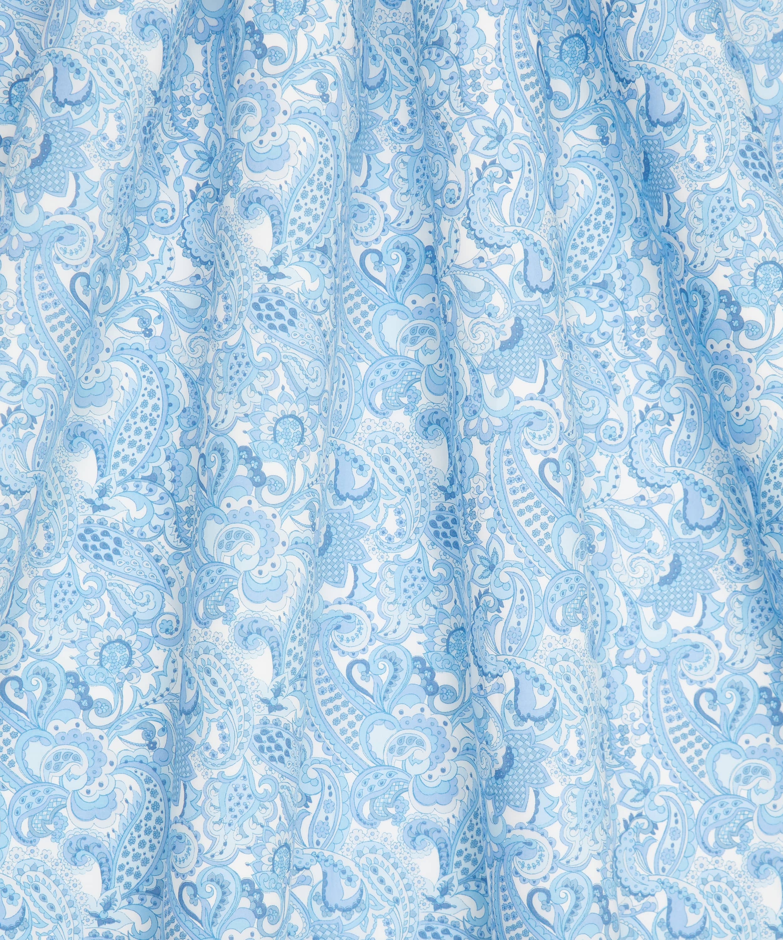 1960年代と1970年代の様式化されたペイズリーからインスピレーションを受けたこのプリントは、もともと1966年にデザインされ、リバティのデザインスタジオで慎重に再描画・再配色されました。当時の華やかなミュージシャンたちが着用していたプリントは、表現豊かなスタイルでこの時代の型破りな理想を反映しています。