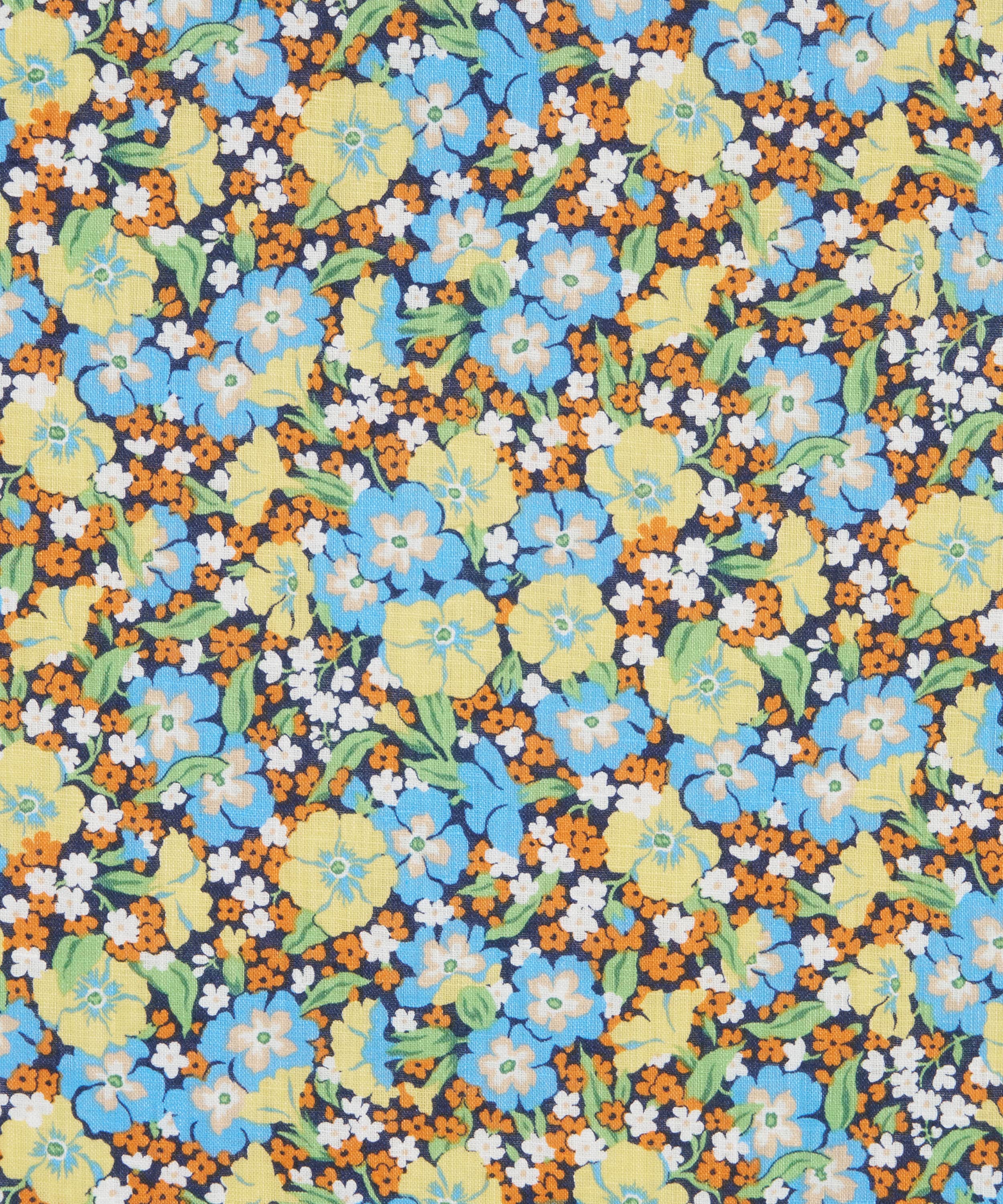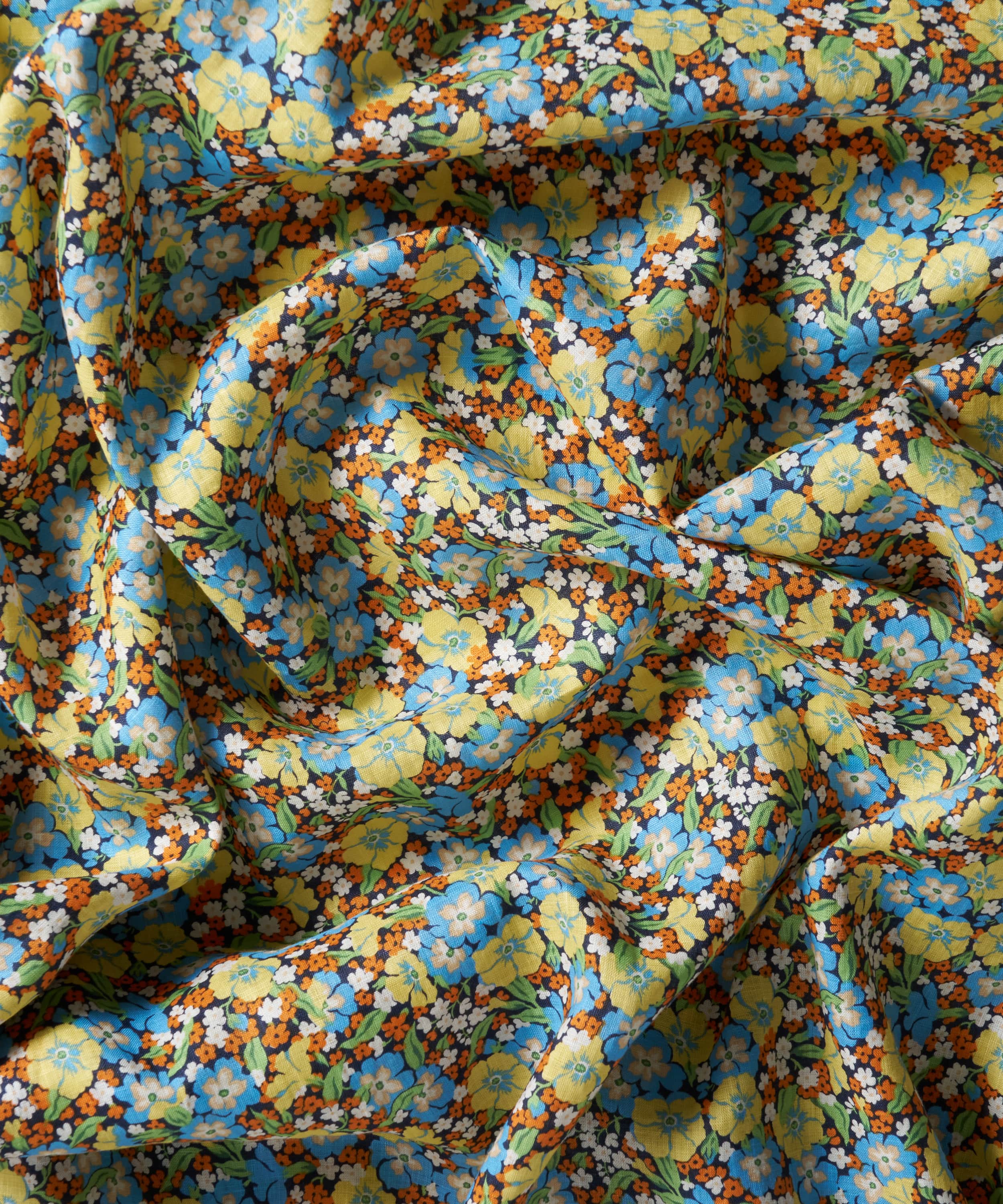 1969年にリバティのデザインスタジオでガッシュ絵具を使って手描きされた作品を現代的なスタイルに合わせて巧妙に再構築した「ガブリエラ・ジスー」。繊細な花々や鮮やかなペチュニアを含む様式化された草原の花々が特徴のこの中型のボタニカルプリントは、1970年代の遊び心あふれる花柄にインスパイアされています。