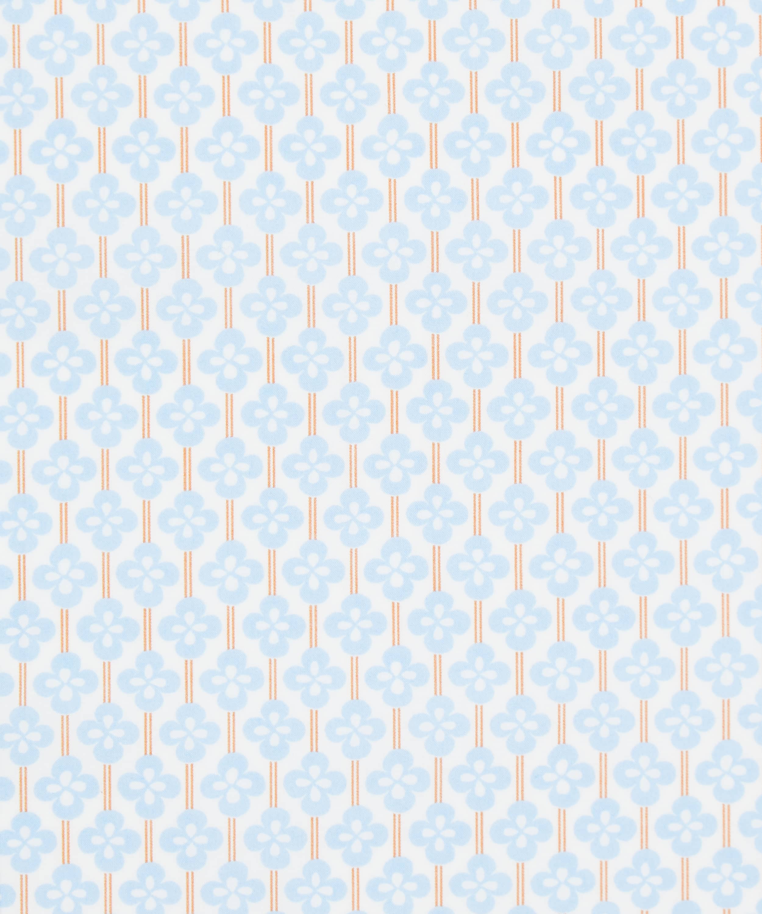 著名な摂政時代のダンディ、ボウ・ブラムルを讃えてデザインされた「クローバー・フィールズ」は、摂政時代のサテン・ダマスク模様を彷彿とさせる精緻な幾何学的な花柄です。シンプルでありながら洗練されたこのデザインは、ストライプの背景に交互に並ぶ小さな様式化された花びらが特徴です。