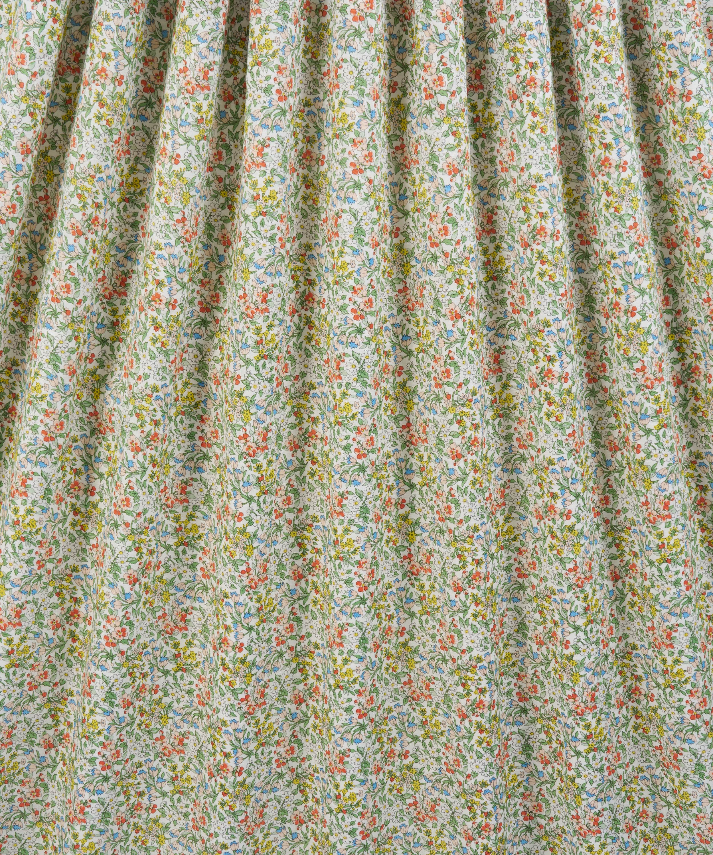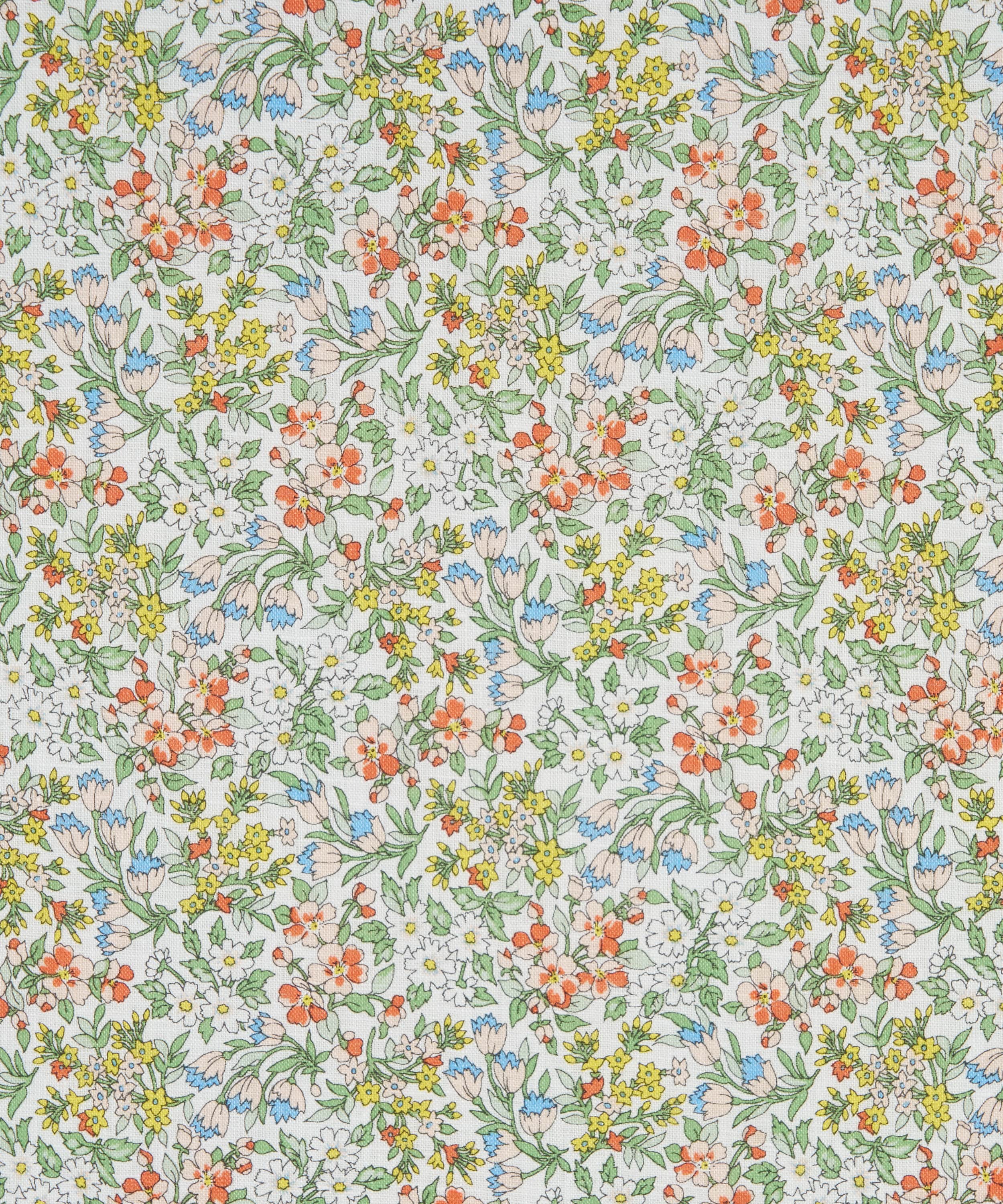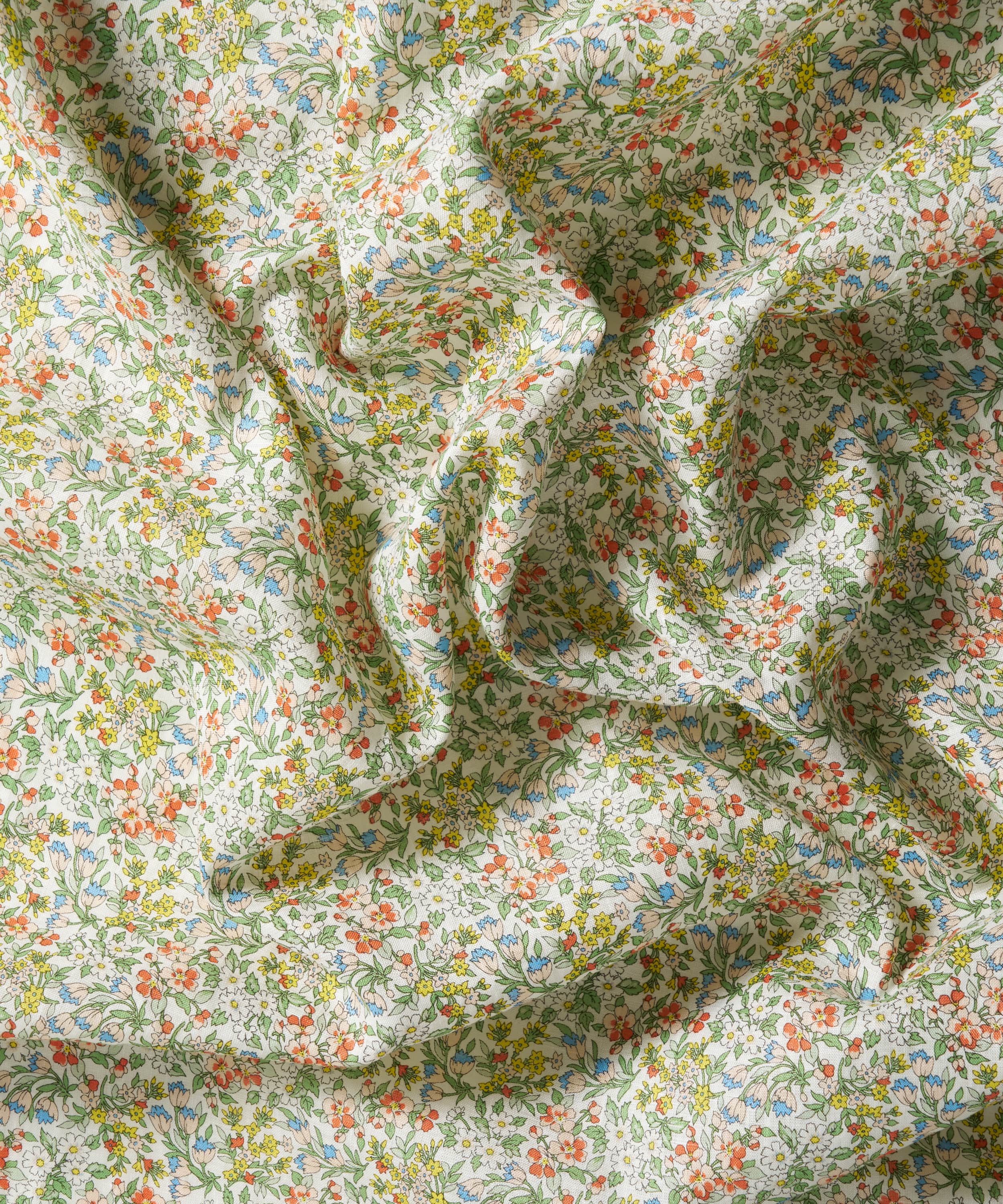 1989年に手描きされたリバティのアーカイブ作品からインスパイアされた「ナザニン」は、繊細な花束が特徴です。デイジー、バラ、スズランなどの草原の花々が織りなすタペストリーを形成し、ロマンティックでリージェンシー風の植物たちが楽しく舞い踊る様子を表現しています。