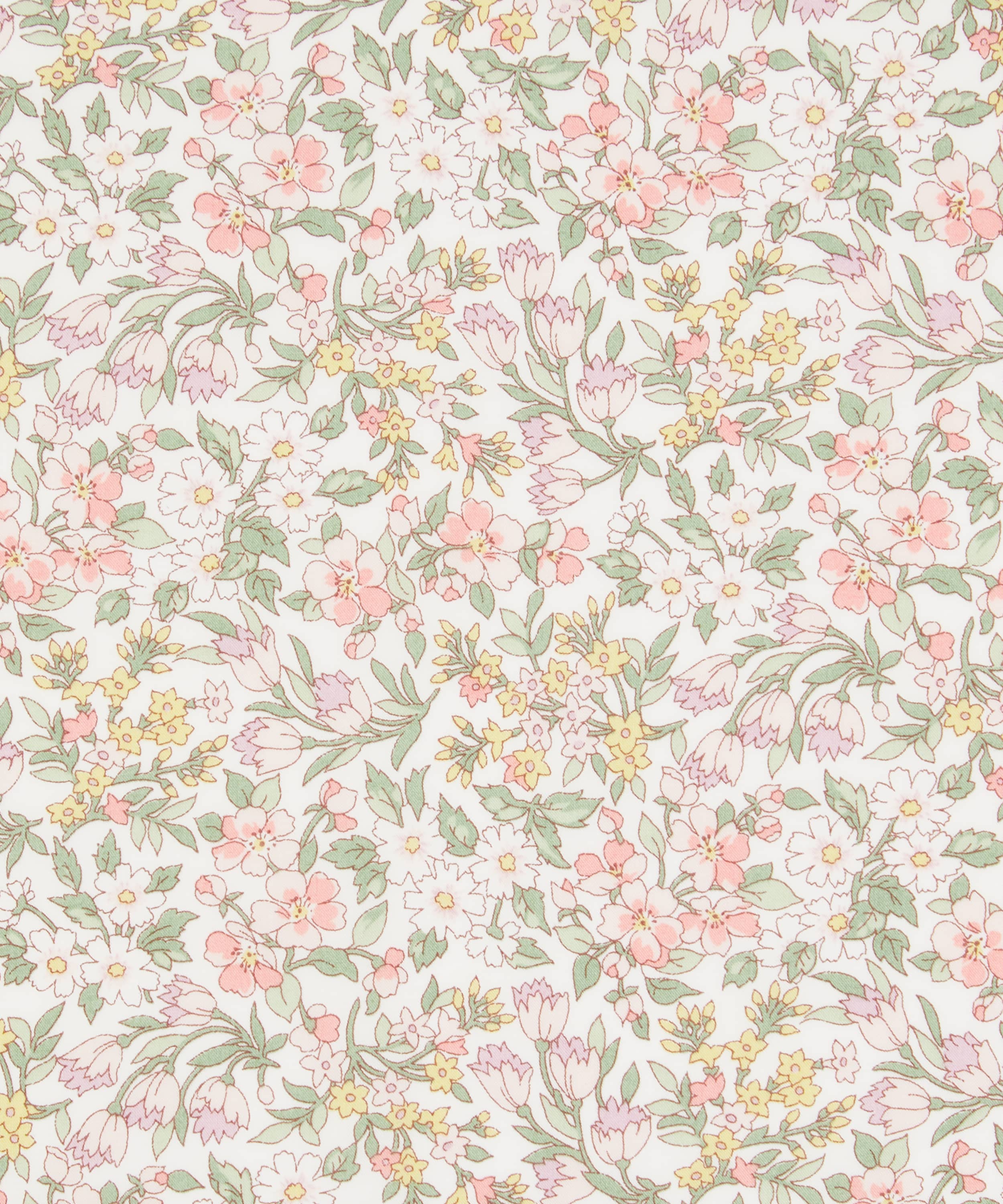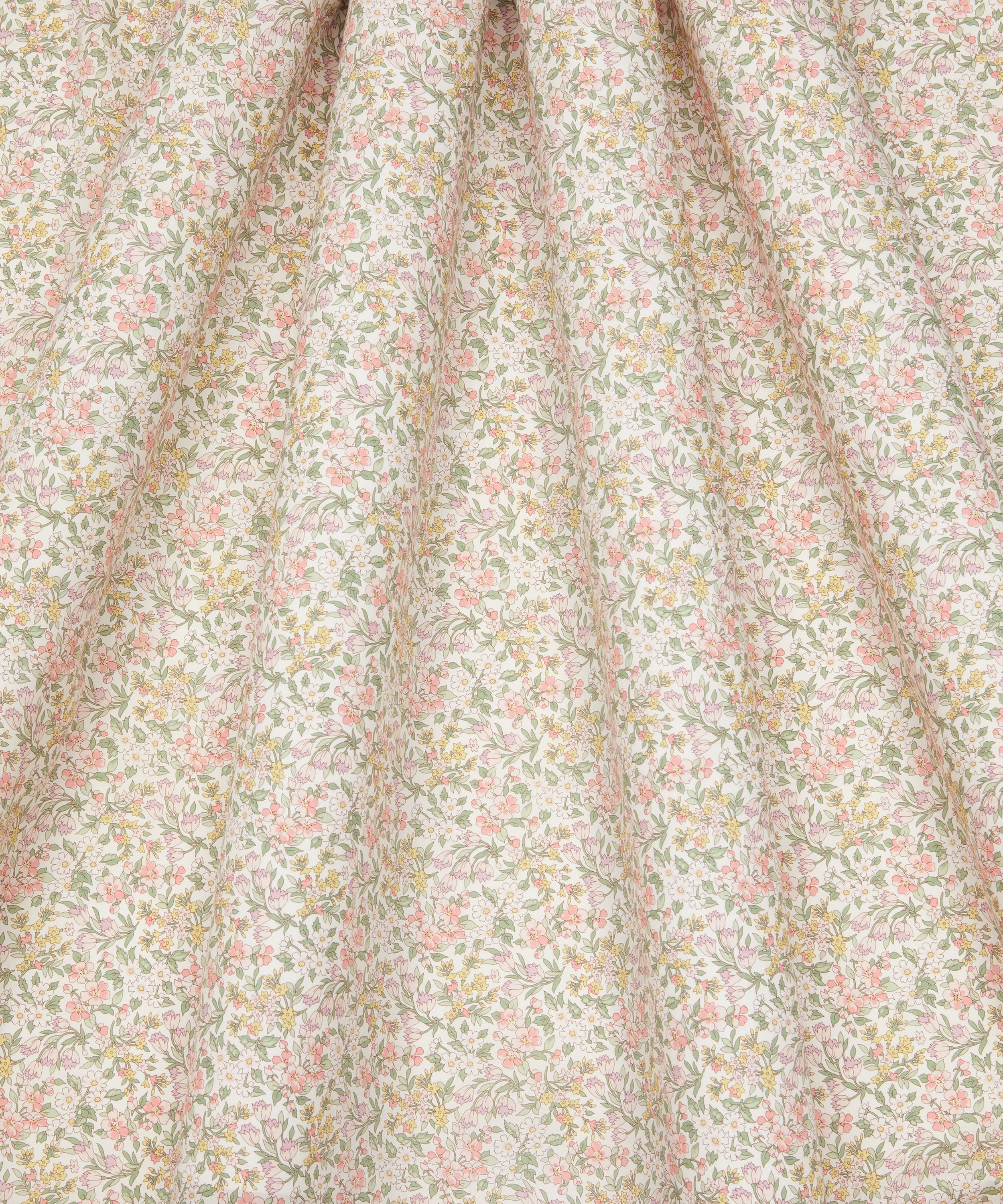 1989年に手描きされたリバティのアーカイブ作品からインスパイアされた「ナザニン」は、繊細な花束が特徴です。デイジー、バラ、スズランなどの草原の花々が織りなすタペストリーを形成し、ロマンティックでリージェンシー風の植物たちが楽しく舞い踊る様子を表現しています。